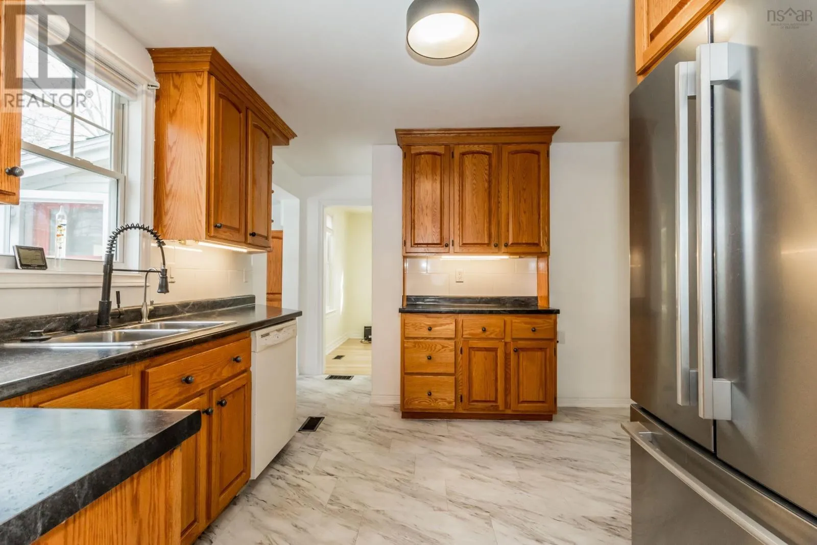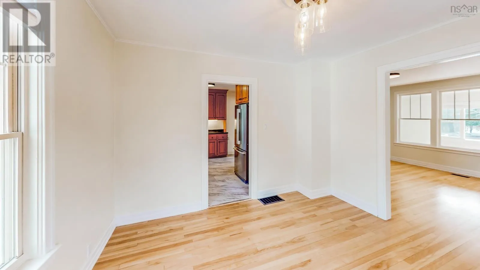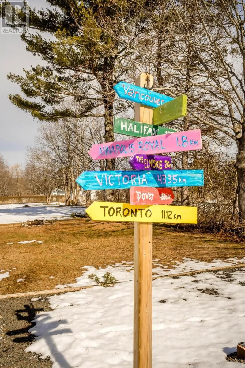From Annapolis Royal, turn left at the flashing light onto Highway 201. Property on the left side. Charming 1.5 storey located within walking distance to the vibrant town of Annapolis Royal. This lovely renovated home is situated on a beautifully landscaped lot with mature trees and is elevated nicely from the road offering an abundance of parking space. Situated on just over half an acre this expansive backyard is perfect for your family to enjoy. Inside you will find a lovely modern kitchen with high end oak cabinets, a newly tiled backsplash, new flooring and ample cooking space with high end appliances included. Right off the kitchen is a convenient back porch with same style cabinetry and access to the new back deck and patio, the perfect place to host your family & friends. A bright and inviting dining room which flows nicely to the spacious living room which offers excellent natural light, a cozy and efficient wood insert and stunning re-finished hardwood flooring throughout. A cheerful sunroom which offers a secondary living space or play room. The primary bedroom is located on the main floor offering a generous size and lovely sunlight. Main floor 4pc bath and a den/office to complete the main floor. Upstairs you will find two more bedrooms with one including a 2pc ensuite bath and good storage. The basement has been well maintained and offers an additional space for a tool room or gym and has a separate laundry room. This home has had every attention to detail taken care of and is ready for new owners to enjoy the peaceful bliss this property has to offer. Vacant and ready for immediate occupancy. Line up your agent of choice for your very own private viewing. (id:27476)