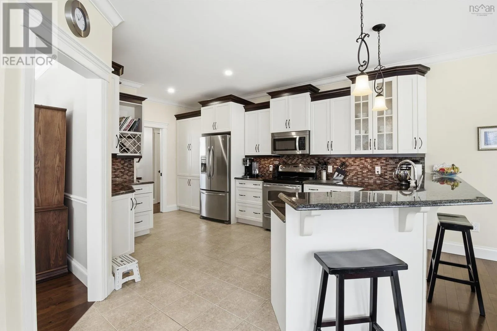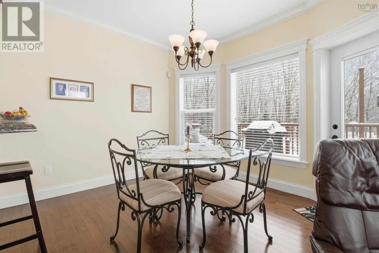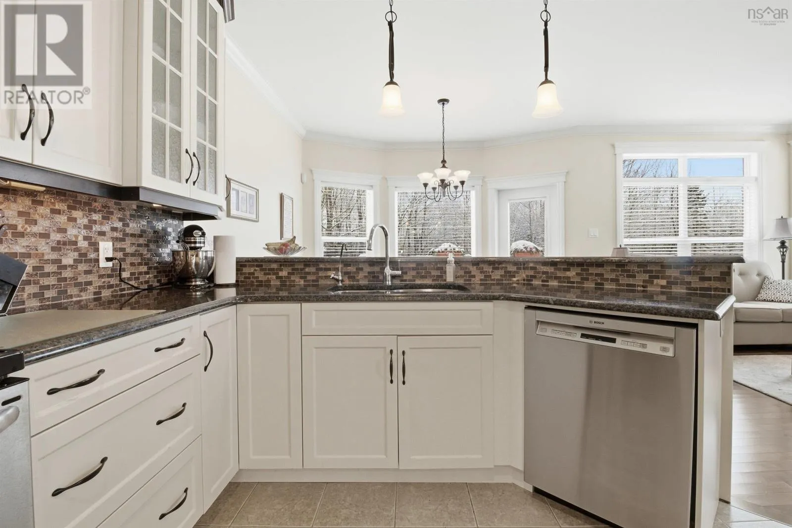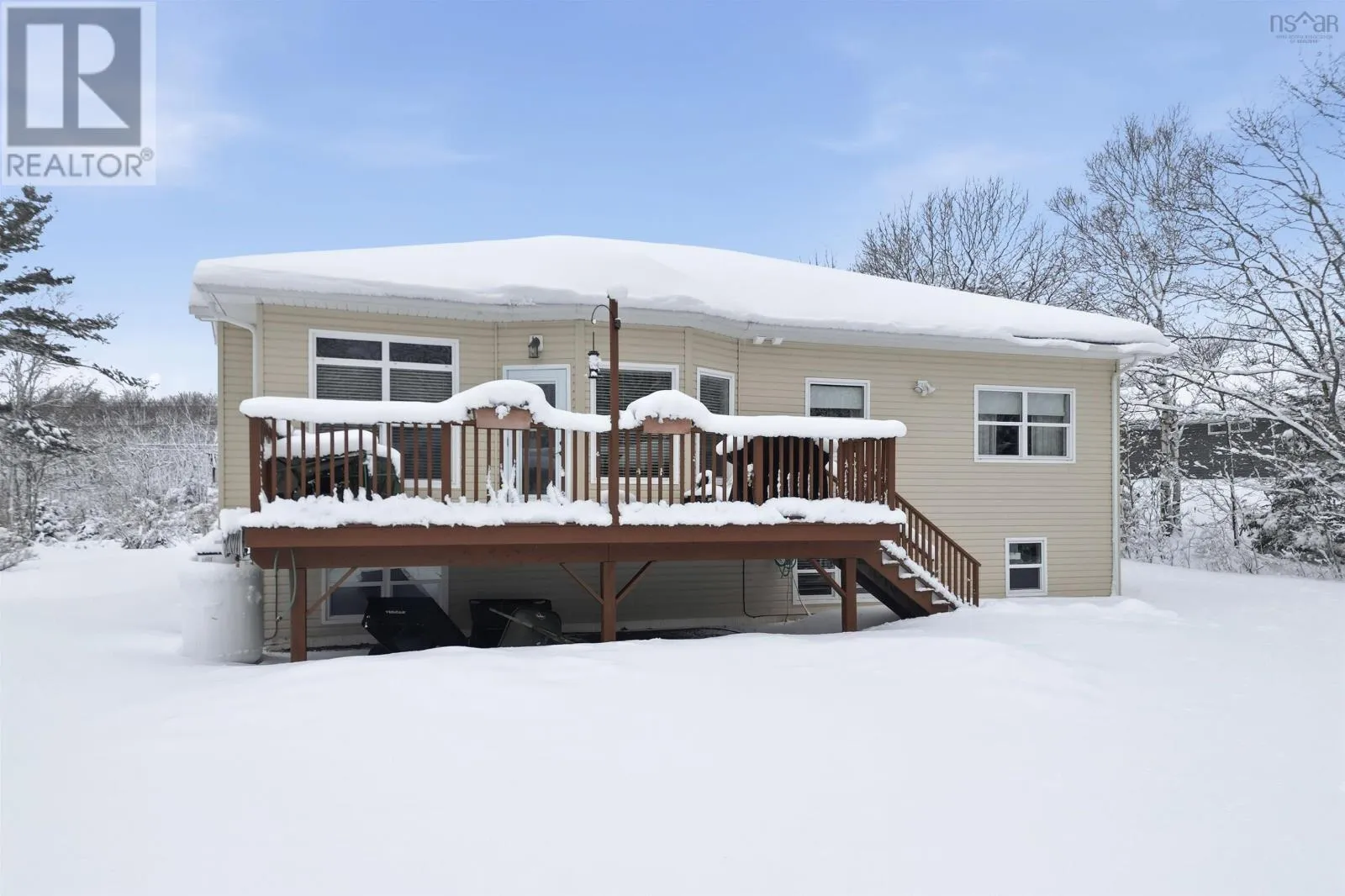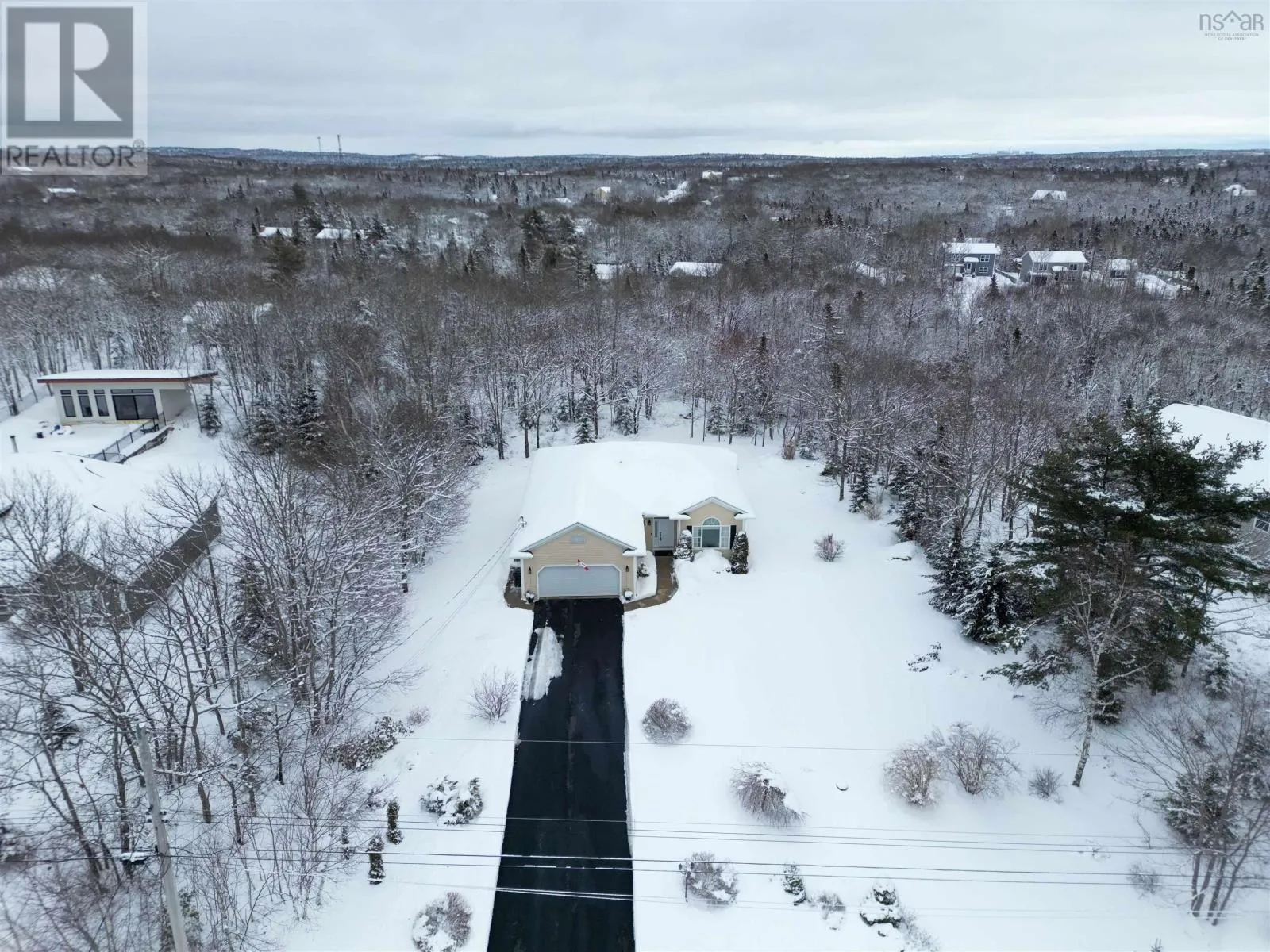 From Halifax, West on Hwy 103 to exit 4 turn left onto Hwy 3 turn left onto Birch Bear Run and then left onto BlackBear Circle This exquisite home, designed by the current owners, offers one level living at its finest. From the spacious foyer proceed into the living room or straight ahead into the well appointed kitchen with granite countertops and an abundance of cabinets with a breakfast area. To the right there is a sitting area with a propane fireplace. The entire area is bathed in natural sunlight from the rising sun coming through the large windows with overhead transoms which are accentuated by 9' ceilings. There also is a door from the kitchen which leads to the large private deck. The main level has hardwood and tiled floors in the kitchen and bathrooms. From the foyer again on the left there is the spacious laundry room which has a door leading to the 2 car garage. Further along the hallway there is the first bedroom which is currently used as an office, another bedroom and full bathroom. Next there is the primary suite with a walk-in closet and ensuite bathroom. The lower level is accessed from the hallway down the stairs into a large comfortable carpeted rec-room, another bedroom and full bathroom. The remainder of the area is unfinished storage, utility and a workshop. This home is a quick 6 minutes to amenities in Tantallon and only a 15 minute drive by highway to Halifax. (id:27476)