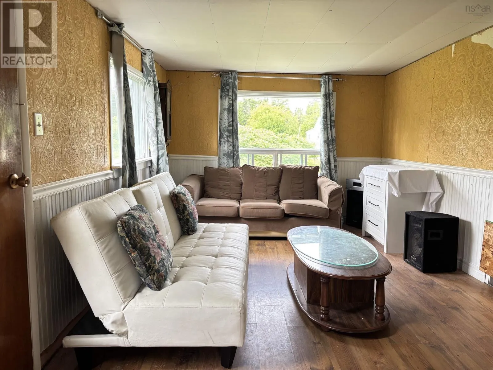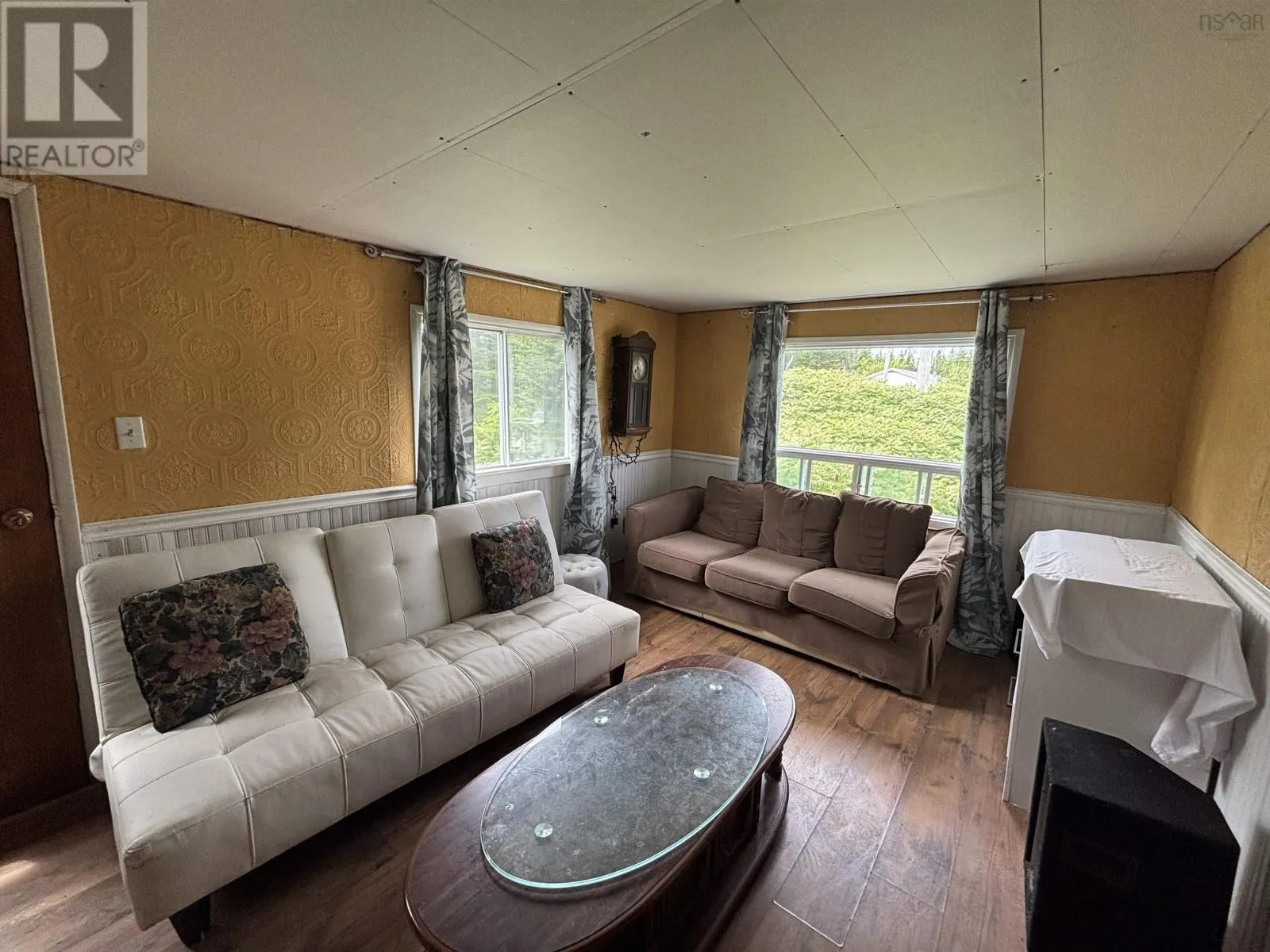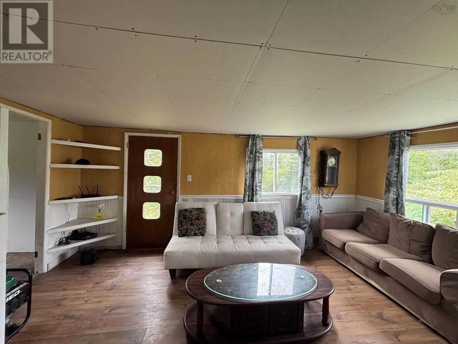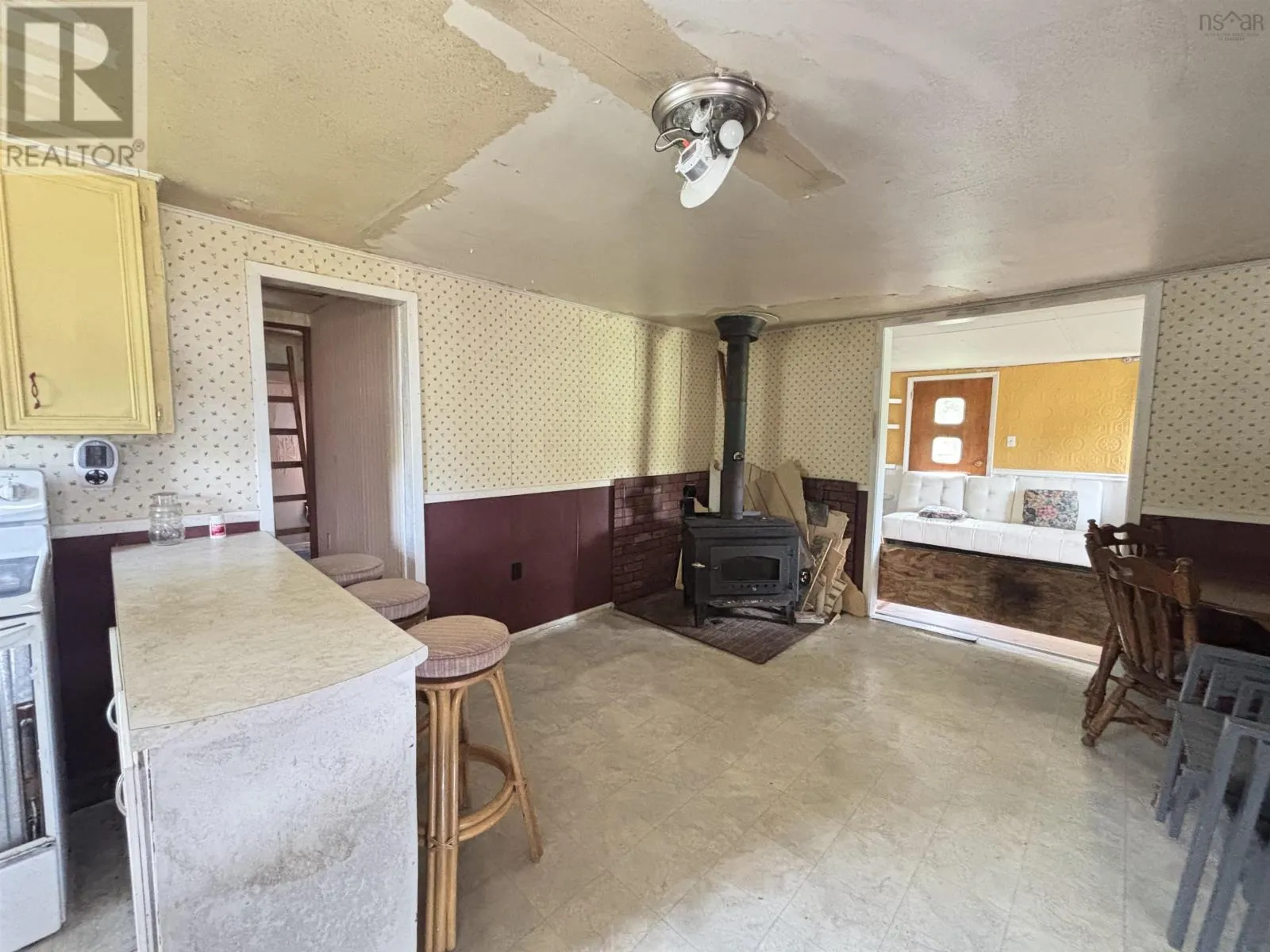 From Antigonish to Highway 7, follow through to Liscomb This charming countryside home offers peaceful rural living surrounded by nature. Sitting on a spacious, partially treed lot with a private setting and plenty of room for outdoor activities, the property features a red metal roof, white vinyl siding, and a gravel driveway with ample parking. Inside, youll find 2 bedrooms, a full bathroom, a large living room with bright windows, and a functional kitchen with lots of cabinetry and breakfast bar seating. Additional highlights include built-in shelving, in-unit laundry, and a wood stove connection for cozy winters. Some areas of the home require renovations, including ceiling repairs, drywall finishing, and general updatesmaking it a perfect project for a handy buyer or investor. The partial walkout basement offers extra storage space, and the location provides easy access to nearby amenities, scenic coastal areas, and outdoor recreation. This is a great opportunity to own an affordable home with lots of potential in a peaceful, natural setting. (id:27476)