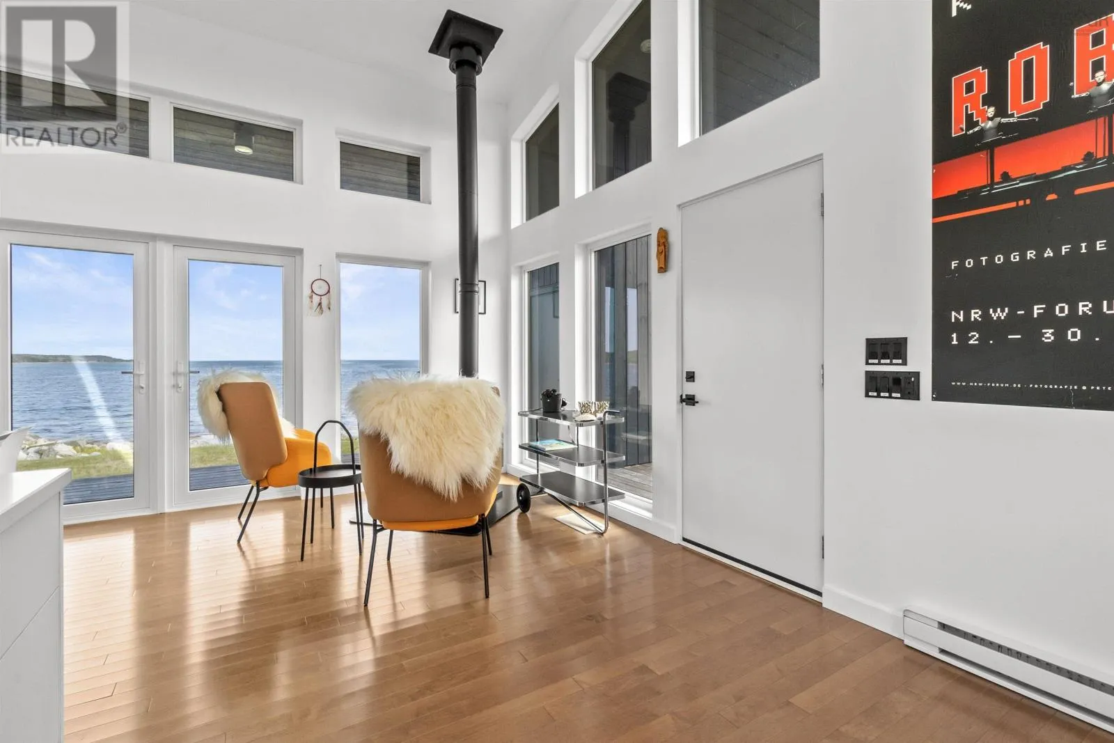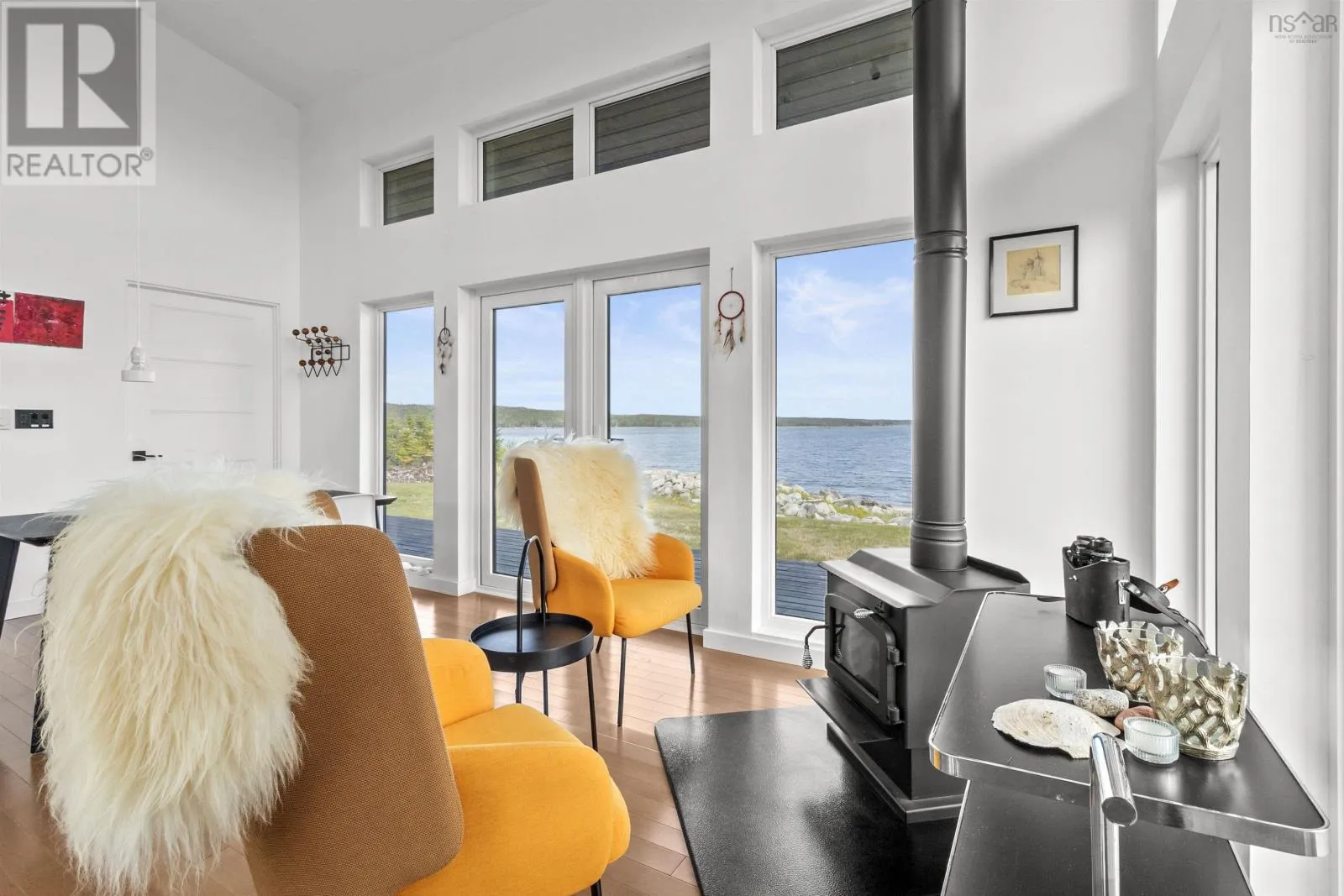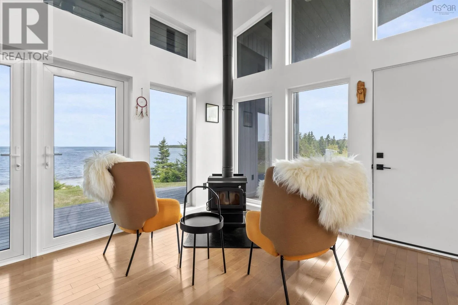From highway 104: Take exit 25 onto highway 348, then right onto highway 7, or exit 26 onto highway 347, then right onto highway 7, or exit 32 onto highway 7. Left onto Little Liscomb Road, straight onto Mailman Branch Road, stay straight on Mailman Branch Road until civic. Property is on the right. Down a quiet lane where native plants sway and the sea sparkles just beyond the trees, Seal Rock House beckons those seeking the ultimate oceanfront escape. This stunning architect-designed retreat sits majestically on 25 pristine acres with your own private sandy beach along secluded Gegogan Harbour. Built in 2021, every window frames postcard-perfect Atlantic views. The thoughtfully designed open-concept layout seamlessly connects living, dining, and kitchen areas anchored by a wood-burning fireplace, flowing to expansive covered decks perfect for entertaining. The main-floor primary bedroom has direct access to the covered terrace and features a convenient cheater ensuite with tiled shower. A versatile study provides a handy workspace or could easily be converted to a second bedroom, while the bright upper loft accommodates additional guests. Launch kayaks directly from your beach for seal-spotting adventures around the harbour. Little ones can splash safely in the gentle, sloping sandy bay. After beach days, rinse off in the outdoor shower before tossing sandy clothes into the convenient exterior laundry room. The detached garage with solar array combines practicality with energy efficiency. Just two hours from Halifax Seal Rock House feels truly a world away. (id:27476)