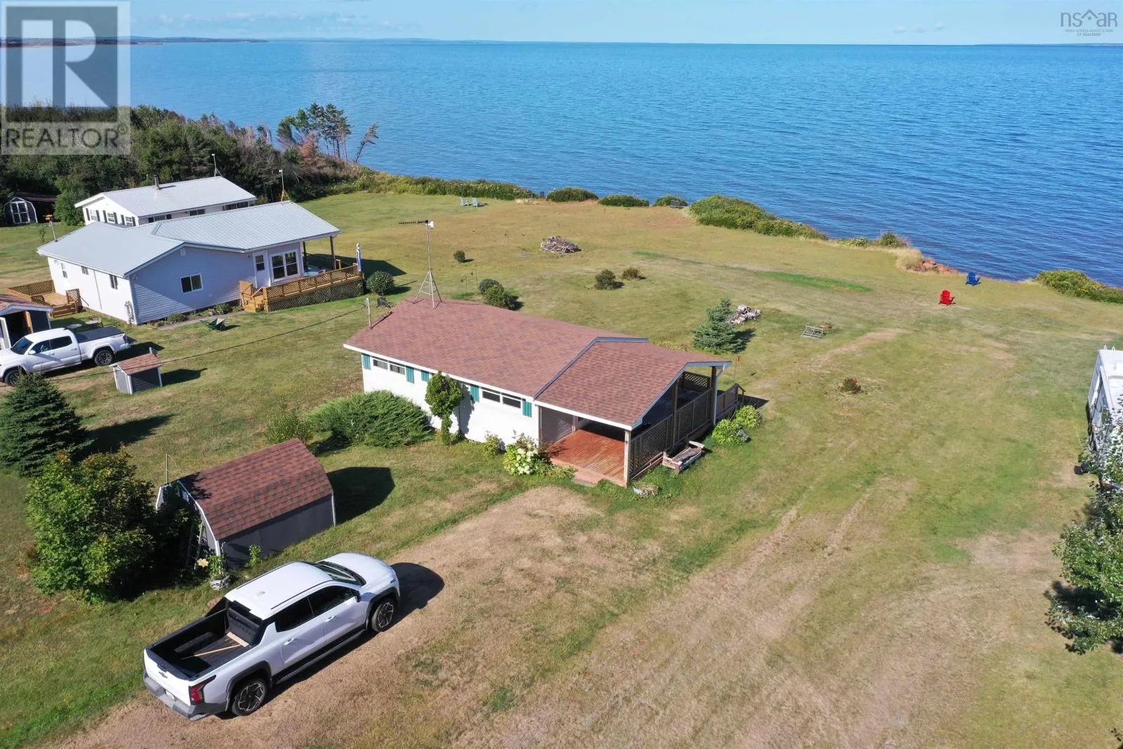 Lismore to Ceilidh Lane, follow end veer right, property has a sign Oceanfront Cottage in Lismore! Escape to this charming oceanfront cottage offering over a half acre of land and 85 feet of shoreline with picturesque oceanfront view. Imagine trekking down the community steps down to the sandy beach! Immerse yourself in the tranquil beauty of the ocean with breathtaking views from every angle. This cozy cottage has been meticulously updated over the years, ensuring it has been well maintained with a blend of modern comfort and coastal charm. The newer heat pump and roof provide added convenience and peace of mind, From the windows to the doors, every major item has been upgraded over the years from the original build. Step outside to a large lawn, perfect for outdoor games or gathering around a fire pit under the starry sky. Enjoy the fresh ocean breeze on the huge covered deck, ideal simply unwinding with a good book. Located just a short distance from the Lismore wharf, indulge in the freshest seafood offerings during the summertime. ensuring a comfortable stay. Experience the beauty and tranquility of coastal living in this absolutely stunning spot in Lismore. A Truly Beautiful Spot! (id:27476)