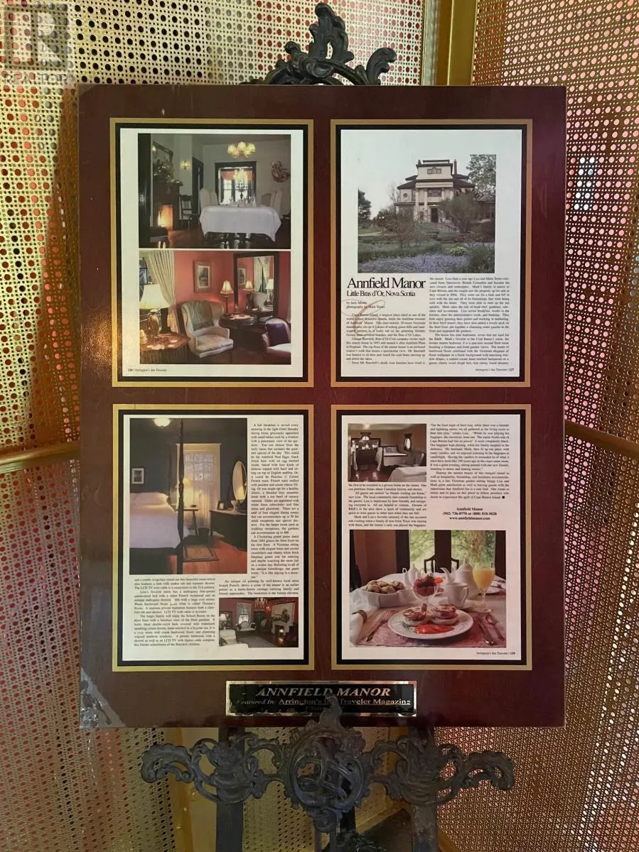 TCH 105 to Johnson Road at exit 2 then turn left onto Church Road Step into a piece of Nova Scotian history with Annfield Manor, an extraordinary 8-bedroom, 7-bathroom estate spanning 5,000 square feet over 4 stories and 28 rooms. Built by George Burchell, owner of the Bras dOr Coal Company, this grand manor is set on beautifully manicured grounds just a stones throw from the world-renowned Bras dOr Lakes Canadas Inland Sea on Cape Breton Island, named one of the worlds most beautiful islands. The home features four working fireplaces, a generous eat in chefs kitchen with a propane double oven and 6 burner stove, laundry off the kitchen, and seamless flow to a large covered deck perfect for outdoor dining or entertaining. Enjoy resort-style amenities including a hot tub, heated in-ground pool with two new propane tanks, putting green, and bocce ball court. A 70x80 barn currently functions as a spacious garage or workshop, while the mature gardens and charming widows walk add elegance and character to the estate. Ideal as a private residence, luxury B&B, event venue, or corporate retreat, Annfield Manor offers incredible income potential. Currently operating as a very successful B&B, it has previously also served as a wedding venue, photography set, and restaurant. With its rich history, premium features, and breathtaking location, this property is only limited by your imagination. (id:27476)