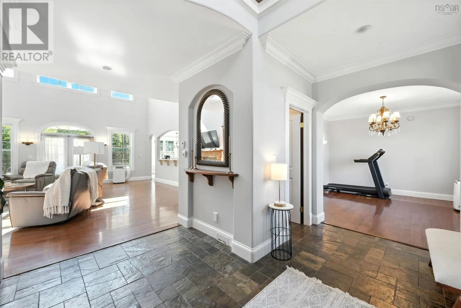 From Pictou Landing Rd to Egypt Rd Custom-built and set on 10 acres in peaceful Little Harbour, this executive home blends timeless design with modern comfortjust minutes from Trenton and New Glasgow. From the moment you step inside, the soaring 22 great room makes a statement with its double-sided fireplace and wall of windows filling the space with natural light. The kitchen is a chefs dream with double ovens, cooktop, pantry, and plenty of storage, while the adjoining sunken flex room with wet bar and walk-out patio is perfect for entertaining. The seller also installed a Heat Master system, making the in-floor heating highly efficient and cost-effective during the winter months. Guests will enjoy the convenience of a main floor suite with private bath, while the striking spiral staircase leads to a bright second level featuring three spacious bedrooms plus a luxurious primary suite with his-and-hers walk-in closets and spa-style ensuite. Downstairs, the fun continues with a games room, exercise/home theater area, craft room, and over 600 sq. ft. of storage. With commercial zoning at the driveway, the property offers extra opportunity for future use. For those seeking even more land and privacy, an adjoining 115± acre parcel of hardwood and softwood forest is also available for purchase. (id:27476)
