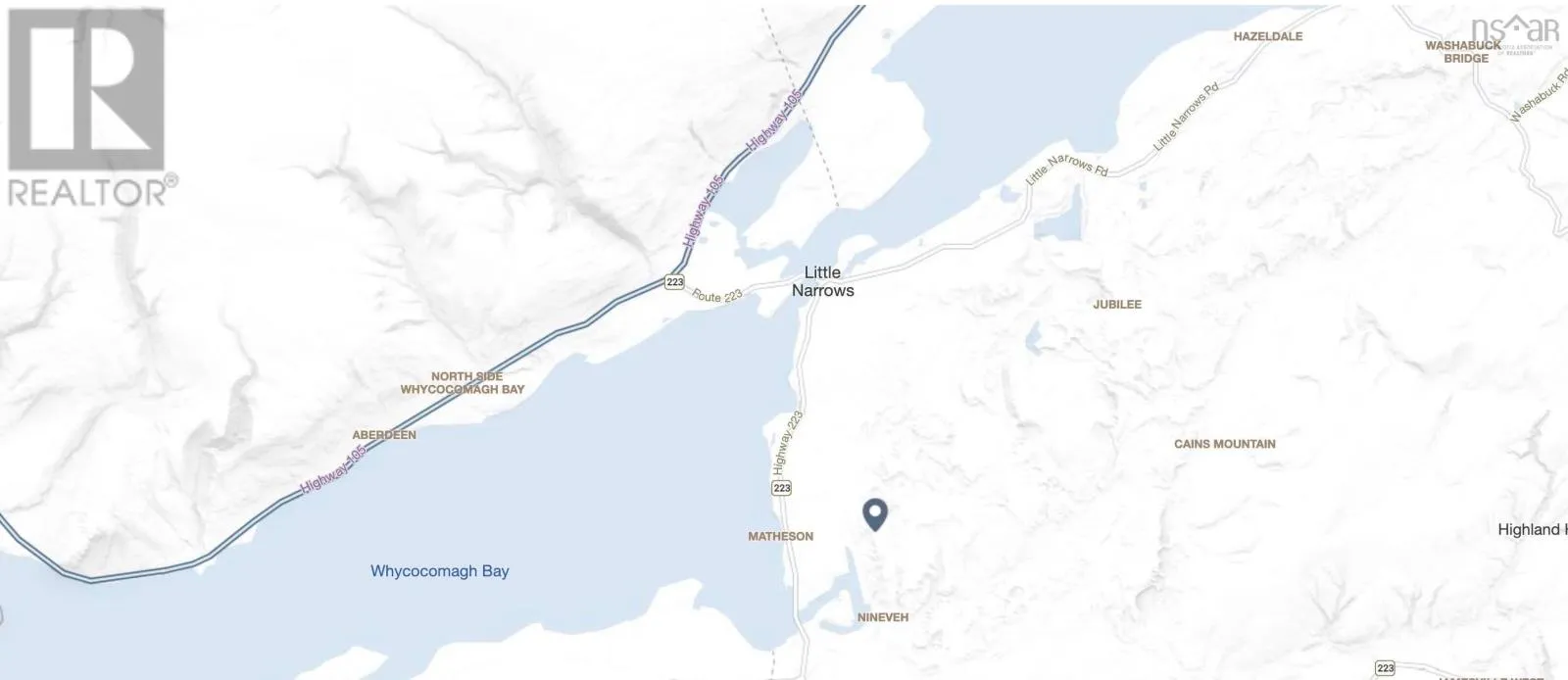 From the TransCanada Hwy take NS-223 and approach Little Narrows ferry. Turn right after ferry and drive 3.4 kms. Vacant land located across the road from 642 Hwy 223, Little Narrows. Look for real estate sign. This woodland property features a pond at its center, attracting local wildlife and creating a peaceful, natural setting. Just a short walk to the Bras D'Or Lake, it's ideal for nature lovers and outdoor enthusiasts. With easy access to amenities in both Whycocomagh and Baddeck, the location is both practical and scenic. Whether you're considering a year - round residence or a unique development project, this property offers endless possibilities. (id:27476)