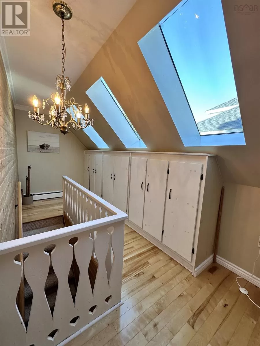 From Main Street turn right onto Court St, then right onto Church. House on left. Welcome to this beautifully maintained 3-bedroom, 2-bathroom tumbled brick home, perfectly situated in the heart of Liverpool. Just a short stroll from local shops, the historic Astor Theatre, the Liverpool Curling Club, tennis and pickleball courts, and a wide variety of restaurants and amenities, this property offers both charm and convenience. Step inside and be greeted by pristine hardwood floors and abundant natural light pouring in through newer style vinyl windows and eight stunning skylights. The home features a striking interlock aluminium roof designed to replicate the classic look of real copper, combining beauty with low-maintenance durability. The spacious main level includes a bright and open kitchen/dining area that seamlessly connects to a cozy living roomperfect for entertaining or relaxing with family. A dedicated den or home office space, convenient laundry area, and a full bathroom provide thoughtful functionality. Upstairs, youll find three bedrooms, two of which boast private balconiesperfect for your morning coffee or a quiet evening retreat. The large upper-level bathroom features both a luxurious soaker tub and a separate shower. Additional storage is available in the attic space, offering practical solutions without compromising living space. Out back, the fully fenced yard offers a safe and private area for gardening, entertaining, or play. A charming fully insulated single-car garage includes a loft for even more storage. This home is the perfect blend of timeless character and modern updatesall just steps from everything Liverpool has to offer. Dont miss the opportunity to own a piece of this vibrant and welcoming community! (id:27476)