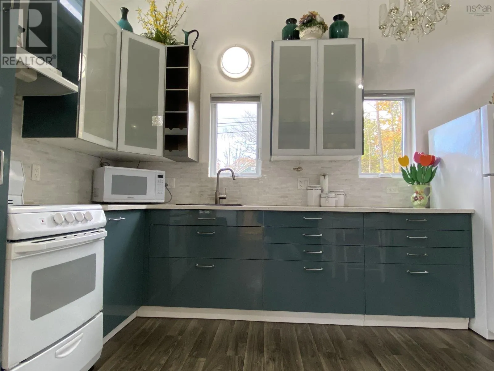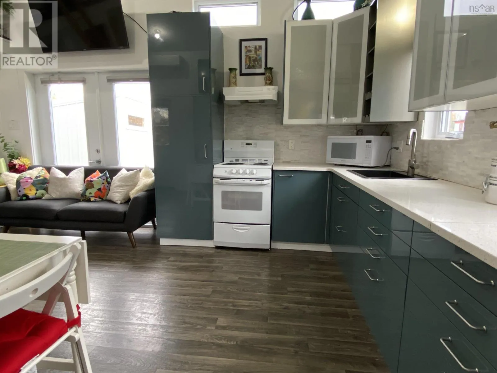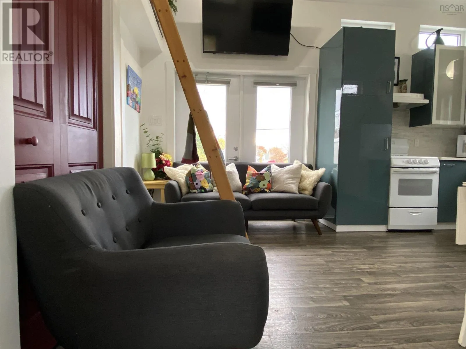 Main Street to Wolfe. Corner of Wolfe and Hillside Drive. Civic # 52. Sign posted. This 2018-build 24 x 14 tiny house on a corner lot in Liverpool shows like new and is move-in ready. Vaulted ceiling, garden door and lots of windows make for an open and airy space. IKEA kitchen with quartz counter top; 3-piece bath features walk-in shower with seat and stackable washer & dryer; main-level storage room plus extra loft storage, plus a separate utility room w/ electric water heater. Municipal water & sewer; foam insulation, built on a concrete slab with in-floor heat and a heat pump that also provides cooling. Fridge, stove and folding Murphy Wall Bed included. Recently added 12 x 8 storage shed. Lots of options for a new owner, including a great vacation getaway or instant short or long-term rental. (id:27476)