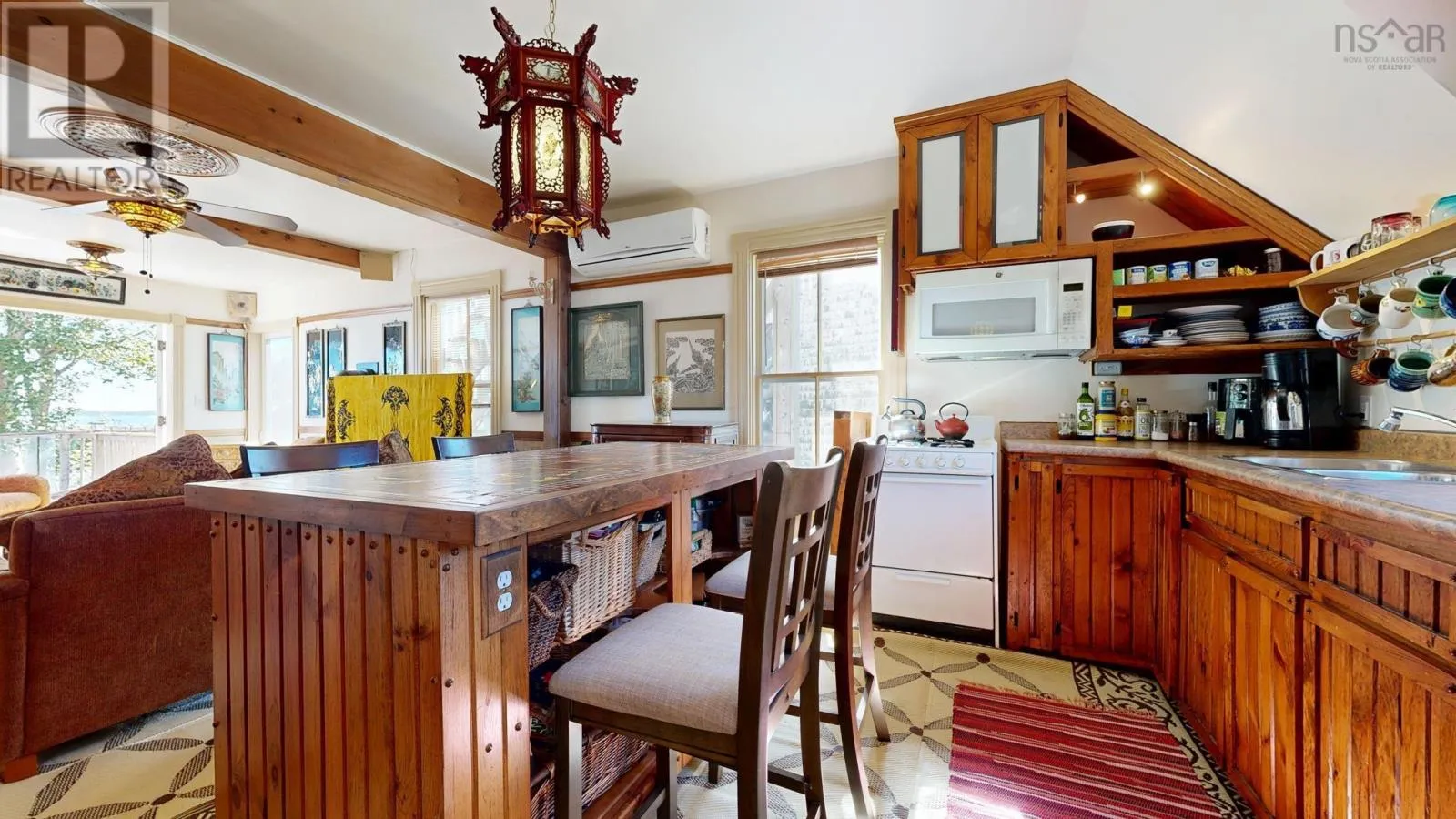 Highway 103 to exit 23 or 24, directions to Lockeport. 132 Hall Street. Meticulously Restored Character Home with Ocean Views and Income Potential. This stunning 2 ½ storey home offers exceptional flexibility, currently staged as three separate units (2 occupied with tenants); each with its own exterior entrance, while remaining fully interconnected for use as one spacious residence. Perfectly situated on a quiet corner lot with mature gardens and ocean views. Step inside through a bright, heated sunroom that welcomes you into the main level featuring a living room with propane fireplace, a cozy bedroom, intriguing bathroom/en suite, laundry, and a cedar spa room with a walk-in jet tub and office nook. The inviting dining room with double French doors houses a Murphy bed, ideal for overnight guests. The main floor also offers a beautifully crafted kitchen with hand-hewn maple cabinetry, lower pull-out shelving, granite countertops, and a propane range. The second level showcases a breathtaking open-concept kitchen, dining, and living space with propane fireplace, opening to a spacious balcony overlooking the gardens and ocean; perfect for converting into a stunning primary bedroom with balcony and an en suite bath. Two bedrooms with Murphy beds and a full bath complete this level. The third floor is staged as a charming bachelor suite with ocean views, making it convenient for guests, extended family, a rental opportunity, or an exceptional office. You wont want to leave as you are impressed with incredible features throughout the home such as intricate trim, built-in cabinetry, and timeless character details. Additional features include heat pumps on the first and second floors, a generator plug, metal roof, storage shed, a main floor patio, and a spacious basement for extra storage. Located within walking distance to beaches, trails, and all town amenities, this one of a kind historic home is a rare opportunity on the South Shore. Reach out to a REALTOR® for more info, such as a virtual tour, list of upgrades, floor plans, and mo (id:27476)