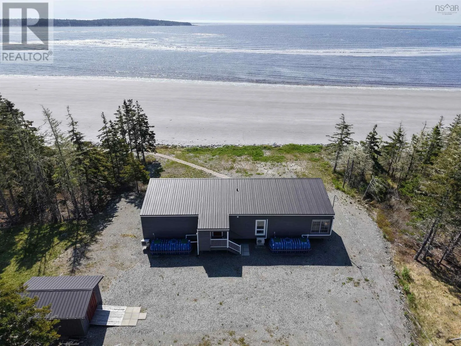 From Highway 103, Take Sable River exit. Follow highway 3 to West Sable Road and follow directions to Louis Head Beach. Seaside drive will be on the left Sunny days, sandy beaches, and timeless memoriesthats what summers at 70 Seaside Drive on Louis Head Beach are made of. Nestled on approximately 2.6 acres and offering an incredible 250 feet of pristine white sand shoreline, this coastal gem is your invitation to beachfront living at its finest. Built in 2020 with the beach lifestyle in mind, this thoughtfully designed 2-bedroom, 1-bath home combines modern comfort with natural beauty. Inside, the open-concept kitchen, living, and dining area features soaring ceilings and expansive windows that perfectly frame the breathtaking beach views. The kitchen is a true showstopper- equipped with stainless steel appliances, high-end quartz countertops, and an impressive 10-foot island with an eat-in option for more intimate meals. Just beyond, patio doors open to a spacious Trex vinyl deck and concrete patio, making indoor-outdoor dining a breeze. A cozy 3-season sunroom captures the magic of the ocean and provides the perfect nook to unwind with a good book. Down the hall you'll find your two bedrooms, including the serene primary- a true owner's paradise complete with dual closets and peaceful views, and the modern 3-piece bathroom features a beautifully tiled shower, painted tongue-and-groove paneling, ample storage cabinetry, and convenient laundry space. Throughout the home youll find elegant porcelain tile flooring, custom soft-close cabinetry and stunning beach views from almost every room. Outside, convenience and attention to detail continues with an outdoor closet, an area pre plumbed for your outdoor shower and a sizable shed, perfect to house your atv or side by side. Spend your days exploring nearly 2 km of spectacular white sand beach, kayaking along the shore, or simply soaking in the salty breeze and sunshine. 70 Seaside Drive isnt just a home-its a way of life. With its stunning Louis Head Beach frontage and thoughtful design, it offers a rare opportunity to experience the very best of coastal (id:27476)