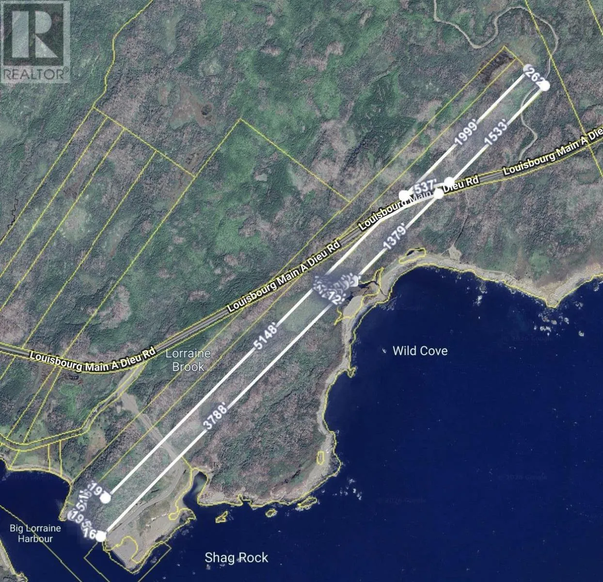 From Sydney take Hwy 22 to Louisbourg, continue onto Louisbourg Main-à -Dieu Hwy. Property located along shoreline side near Lorraine Brook/Wild Cove. Watch for sign. Rare opportunity to acquire approximately 100.6 acres of coastal Cape Breton land offered as one combined package along the scenic Louisbourg Main-à -Dieu Highway. This unique offering includes four adjoining parcels featuring expansive woodland acreage together with a separate oceanfront access parcel providing approximately 200± feet of Atlantic shoreline. The property offers exceptional flexibility for buyers seeking a private estate setting, recreational retreat, land-bank investment, or future development potential (subject to approvals). The larger parcels provide rolling natural terrain, mature forest, and privacy, while the waterfront parcel delivers direct ocean access and dramatic coastal views a rare combination at this scale. Located just minutes from the historic town of Louisbourg and approximately 35 minutes from Sydney, the property balances seclusion with year-round road access and nearby services. Large acreage opportunities with coastal access are increasingly limited in Cape Breton, making this an outstanding long-term investment or lifestyle acquisition. All parcels are being sold together as one offering. Buyers to verify development potential and property boundaries. (id:27476)