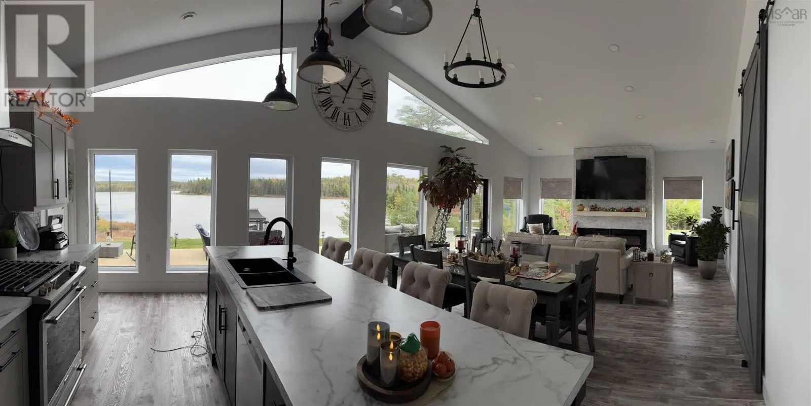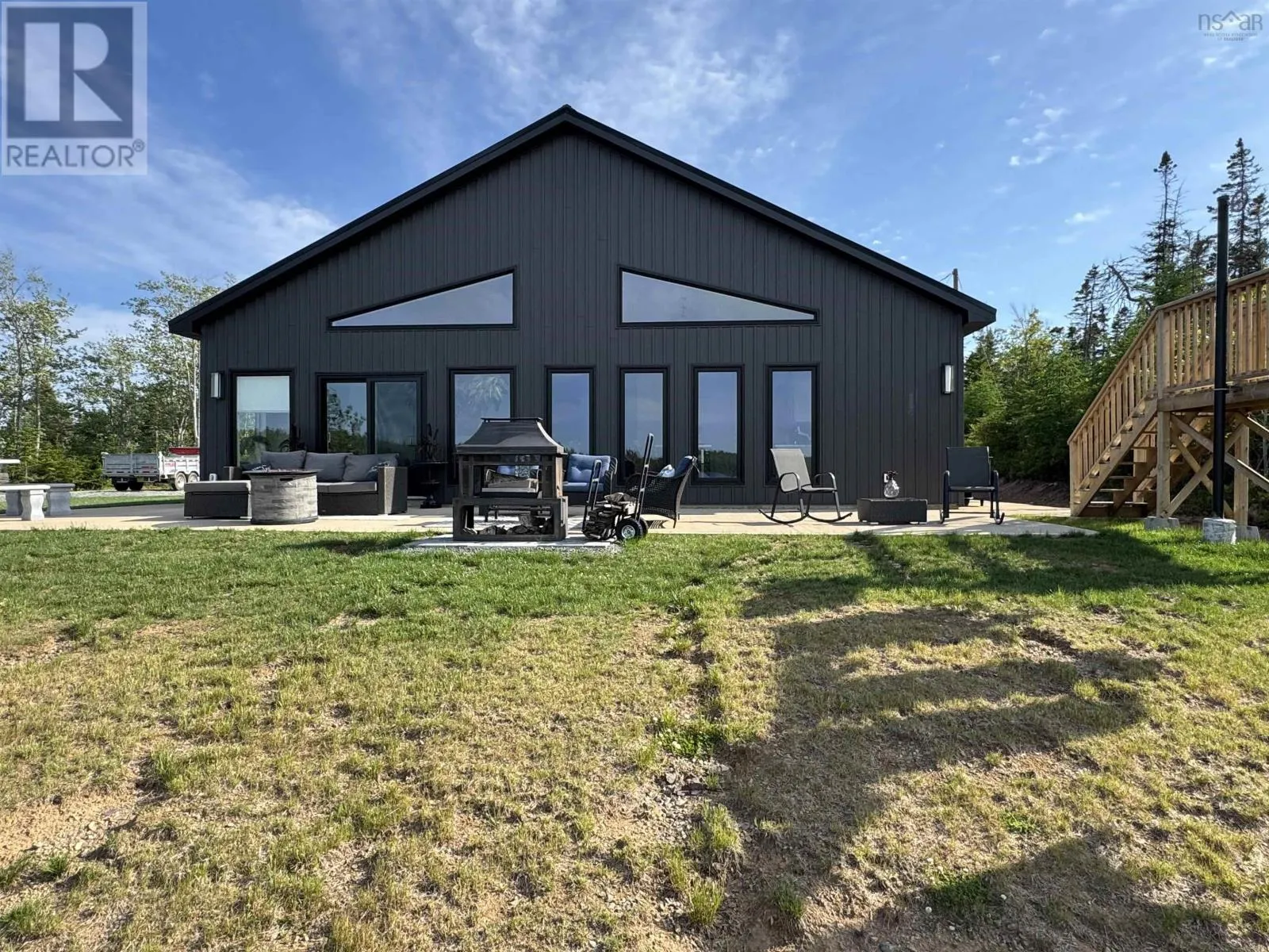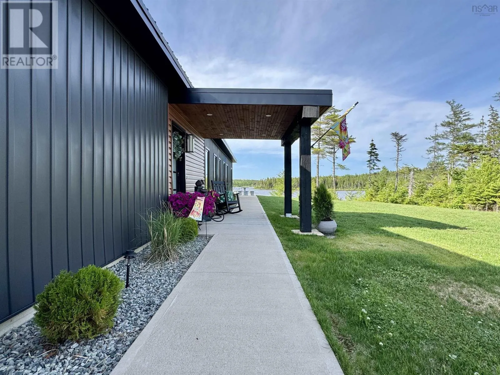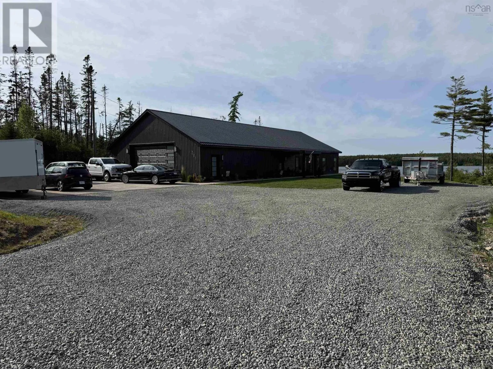From Highway 104 take exit 46. Turn left onto Highway 320, Louisdale and keep right onto Grandique Ferry Rd. Look for sign. Experience the pinnacle of modern waterfront living in this striking two year old barndominium over looking the lake. In the main living area, soaring ceilings and sleek lines draw your eye to the wall to wall picture windows, flooding the open-concept living, dining, and kitchen areas with natural light as you overlook the water. The gourmet kitchen is a chefs dream, featuring high end stainless steel appliances and a generous island perfect for casual gatherings. During warmer times, enjoy the concrete patio that invites you to entertain or unwind waterside, completely free from neighboring views. After a long day the spectacular primary suite is a sanctuary designed for both comfort and style while recharging your batteries. The spa inspired en suite bath pampers you with a deep soaking tub as well as a glass enclosed shower. Dual vanities provide ample space for morning routines, while separate his and her walk in closets keep wardrobes organized. Two additional bright bedrooms share a full-service bathroom appointed with modern fixtures. Every detail of this home has been crafted for year-round comfort and efficiency. An in-floor propane heating system delivers soothing warmth underfoot during chilly months, while central air and heat maintain the perfect temperature in summer. Even the oven and dryer run on propane, marrying eco-friendly performance with cost-effective operation. And in the expansive 40'Ã40' attached shop there are endless possibilities for hobbyists, entrepreneurs, or car enthusiasts. Above the shop is a versatile loft space that can be transformed into a home gym, game room, art studio, or extra storage; tailor it to your lifestyle needs. Despite its secluded, country like setting, this exceptional property is less than five minutes from groceries, dining, and services, delivering convenience without compromising privacy. With municipal water and sewer services there is even more convenience and peace of mind. Schedule your private tour (id:27476)