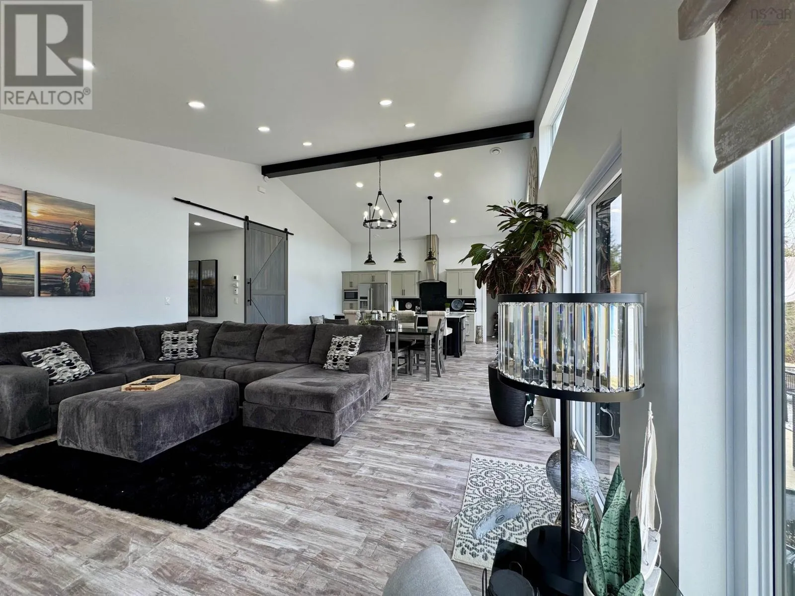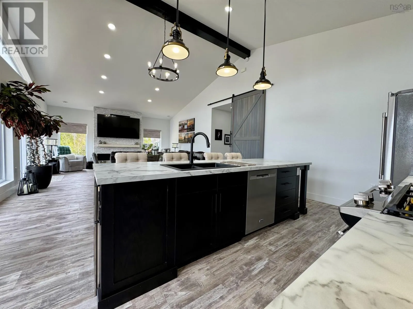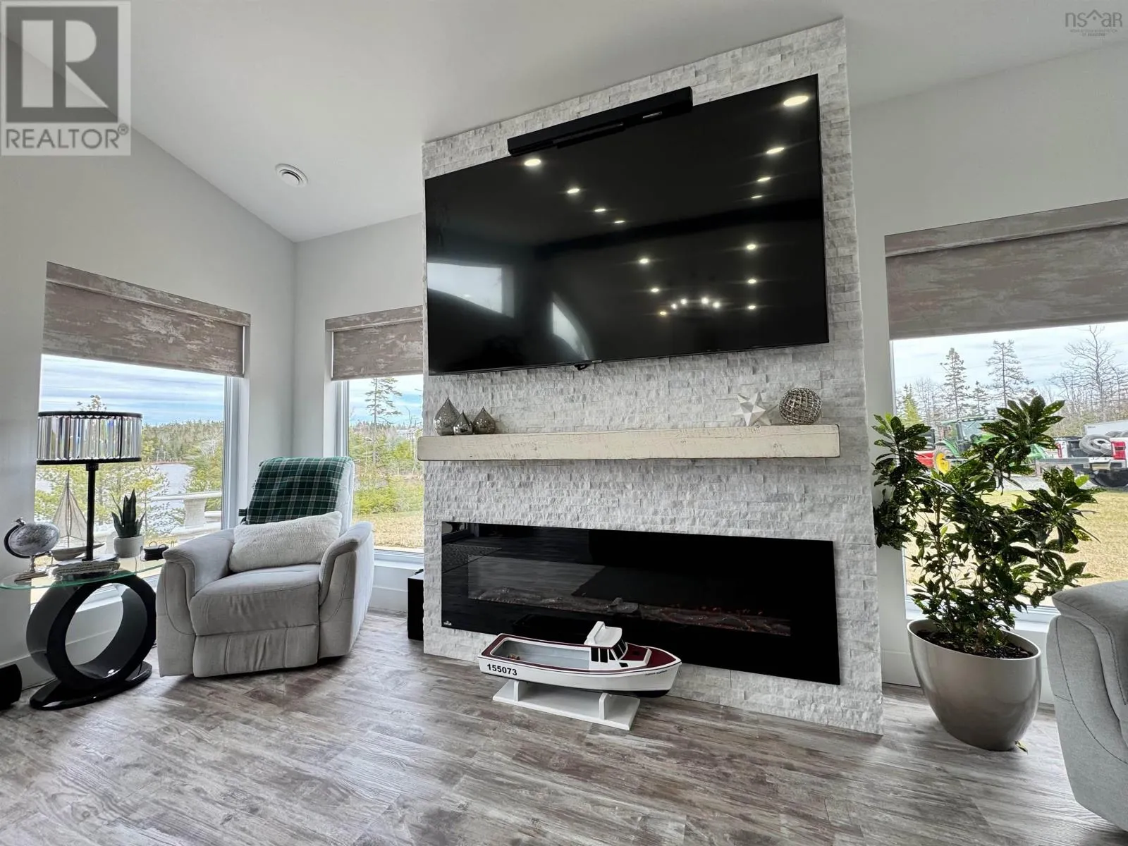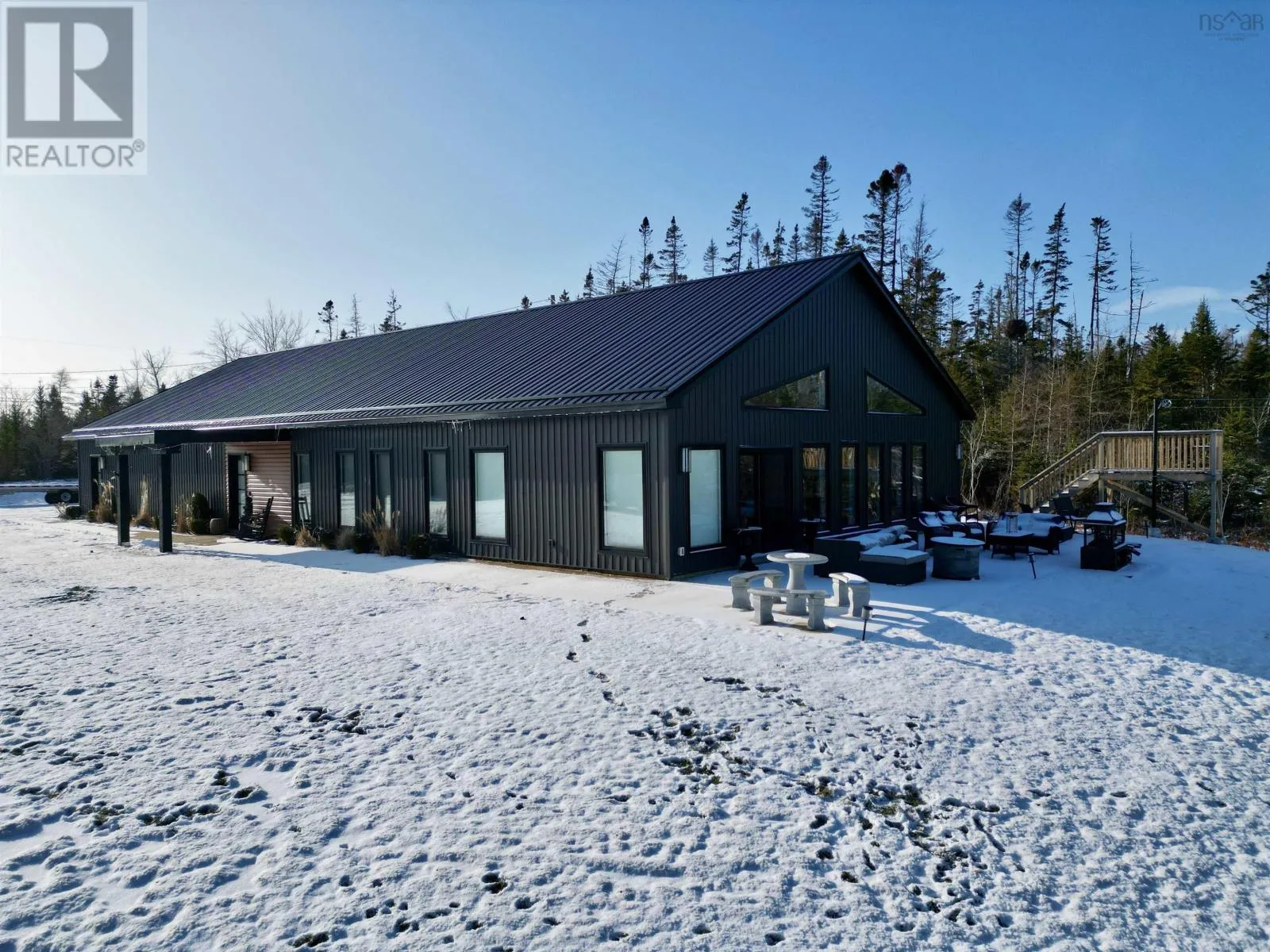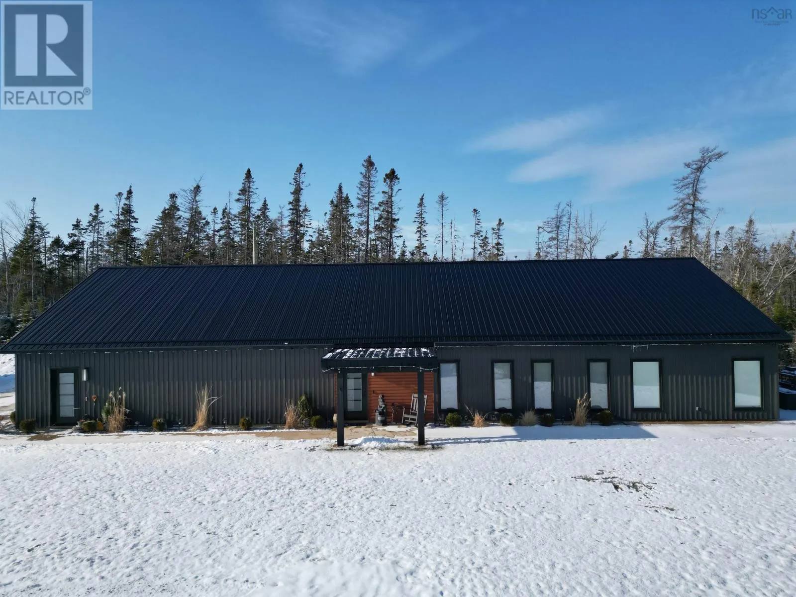 From Highway 104 take exit 46. Turn left onto Highway 320, Louisdale and keep right onto Grandique Ferry Rd. Look for sign. Experience the pinnacle of modern waterfront living in this striking two year old barndominium over looking the lake. In the main living area, soaring ceilings and sleek lines draw your eye to the wall to wall picture windows, flooding the open-concept living, dining, and kitchen areas with natural light as you overlook the water. The gourmet kitchen is a chefs dream, featuring high end stainless steel appliances and a generous island perfect for casual gatherings. During warmer times, enjoy the concrete patio that invites you to entertain or unwind waterside, completely free from neighboring views. After a long day the spectacular primary suite is a sanctuary designed for both comfort and style while recharging your batteries. The spa inspired en suite bath pampers you with a deep soaking tub as well as a glass enclosed shower. Dual vanities provide ample space for morning routines, while separate his and her walk in closets keep wardrobes organized. Two additional bright bedrooms share a full-service bathroom appointed with modern fixtures. Every detail of this home has been crafted for year-round comfort and efficiency. An in-floor propane heating system delivers soothing warmth underfoot during chilly months, while central air and heat maintain the perfect temperature in summer. Even the oven and dryer run on propane, marrying eco-friendly performance with cost-effective operation. And in the expansive 40'Ã40' attached shop there are endless possibilities for hobbyists, entrepreneurs, or car enthusiasts. Above the shop is a versatile loft space that can be transformed into a home gym, game room, art studio, or extra storage; tailor it to your lifestyle needs. Despite its secluded, country like setting, this exceptional property is less than five minutes from groceries, dining, and services, delivering convenience without compromising privacy. With municipal water and sewer services there is even more convenience and peace of mind. Schedule your private tour (id:27476)