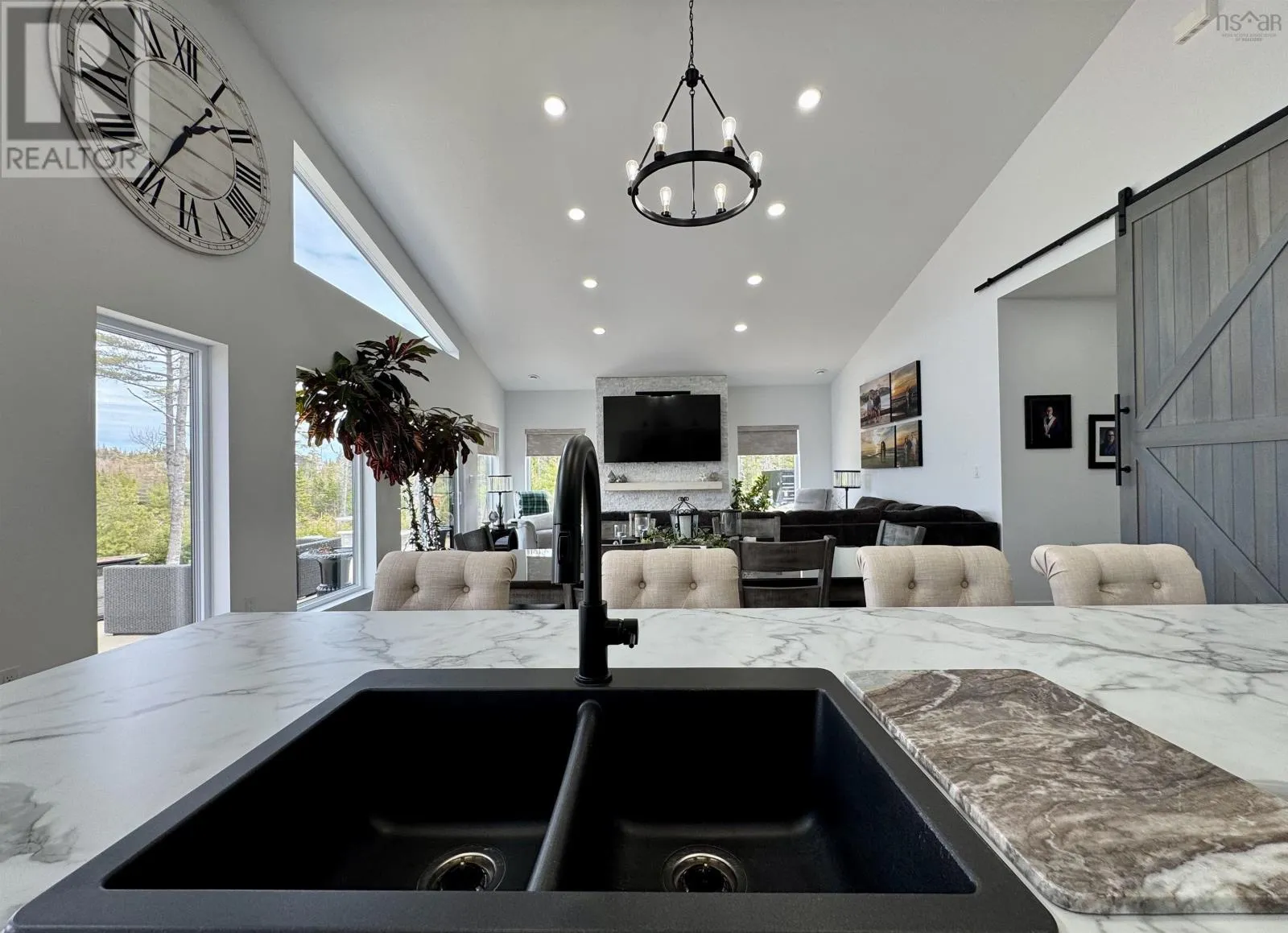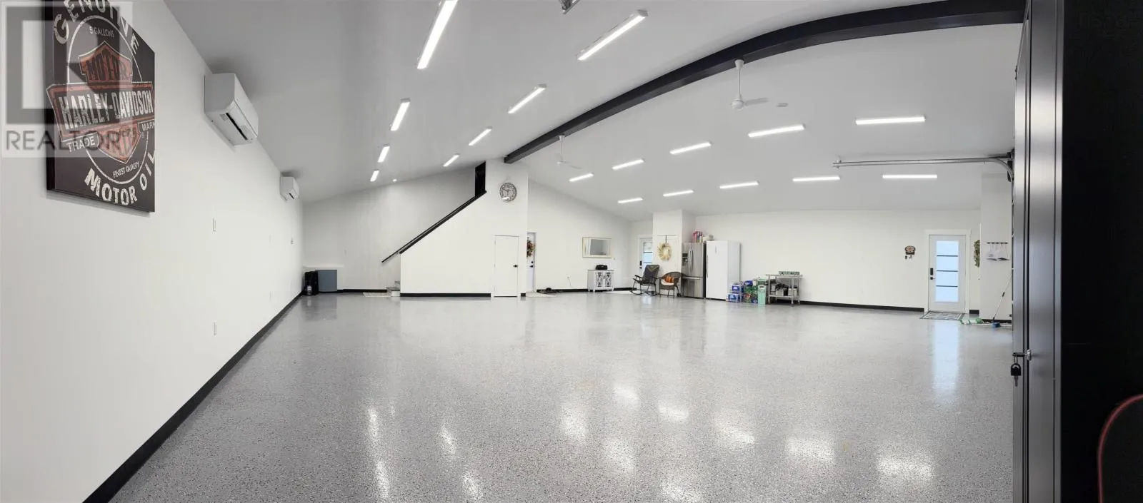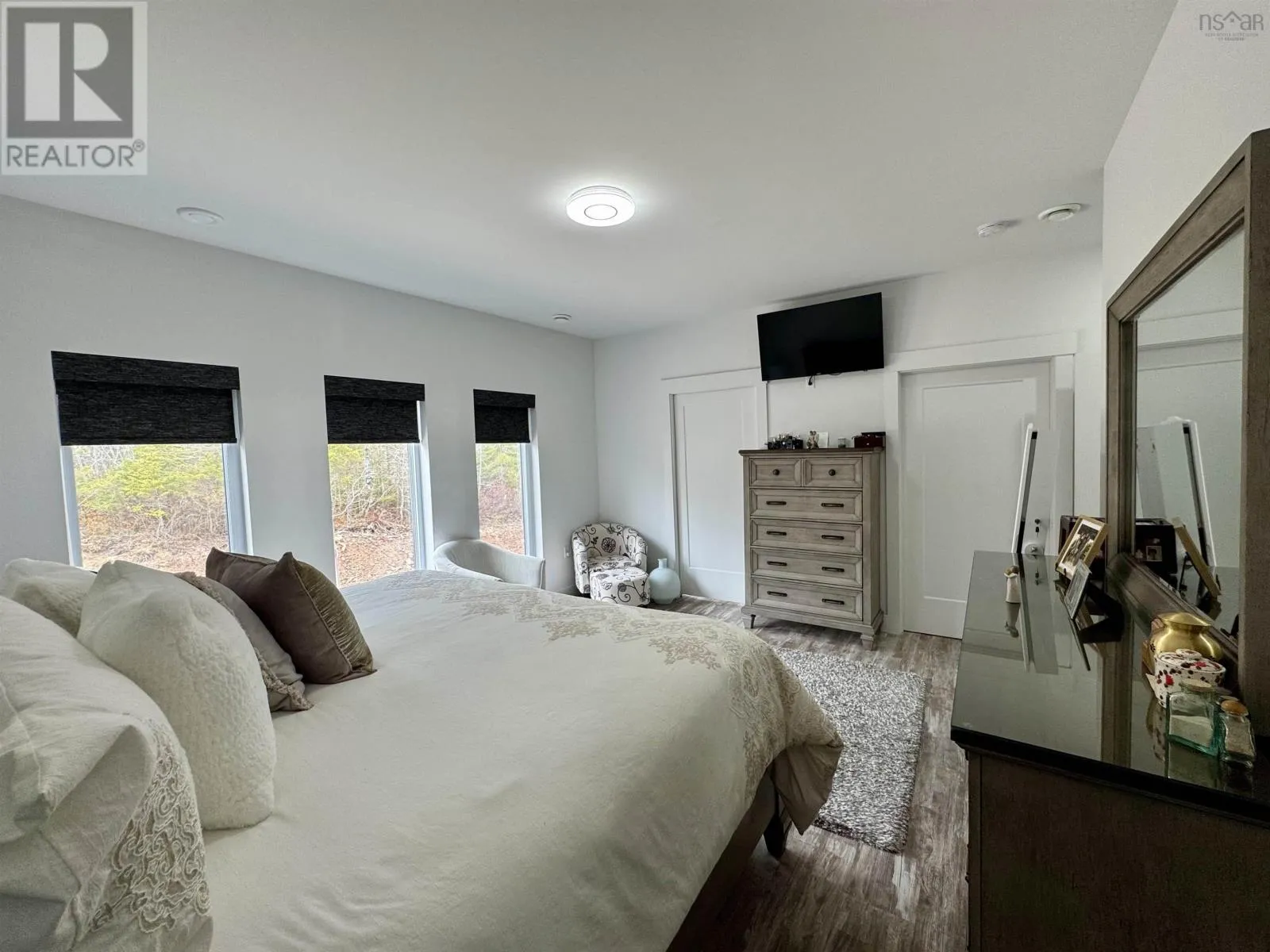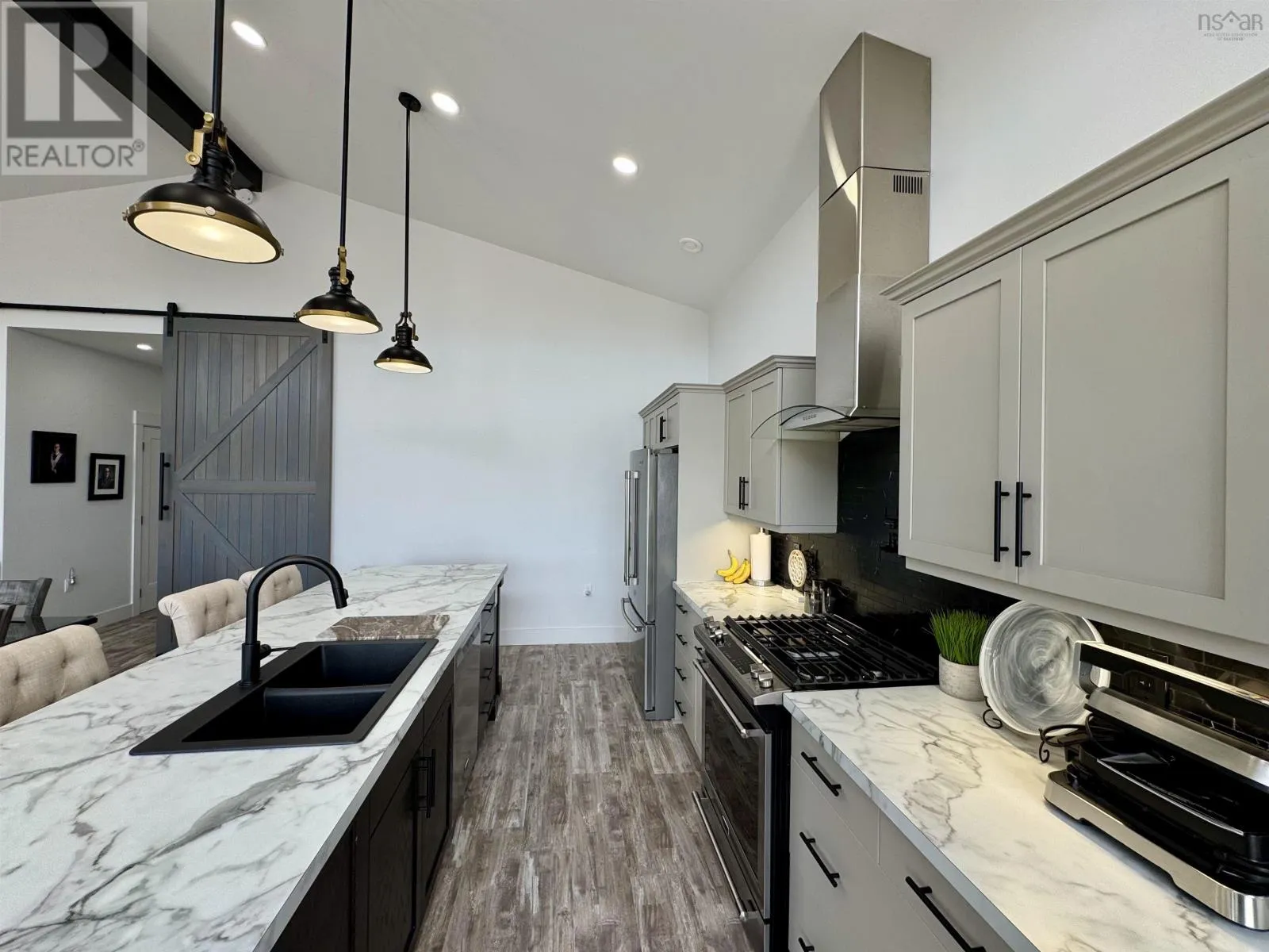From Highway 104 take exit 46. Turn left onto Highway 320, Louisdale and keep right onto Grandique Ferry Rd. Look for sign. Experience the pinnacle of modern waterfront living in this striking two year old barndominium over looking the lake. In the main living area, soaring ceilings and sleek lines draw your eye to the wall to wall picture windows, flooding the open-concept living, dining, and kitchen areas with natural light as you overlook the water. The gourmet kitchen is a chefs dream, featuring high end stainless steel appliances and a generous island perfect for casual gatherings. During warmer times, enjoy the concrete patio that invites you to entertain or unwind waterside, completely free from neighboring views. After a long day the spectacular primary suite is a sanctuary designed for both comfort and style while recharging your batteries. The spa inspired en suite bath pampers you with a deep soaking tub as well as a glass enclosed shower. Dual vanities provide ample space for morning routines, while separate his and her walk in closets keep wardrobes organized. Two additional bright bedrooms share a full-service bathroom appointed with modern fixtures. Every detail of this home has been crafted for year-round comfort and efficiency. An in-floor propane heating system delivers soothing warmth underfoot during chilly months, while central air and heat maintain the perfect temperature in summer. Even the oven and dryer run on propane, marrying eco-friendly performance with cost-effective operation. And in the expansive 40'Ã40' attached shop there are endless possibilities for hobbyists, entrepreneurs, or car enthusiasts. Above the shop is a versatile loft space that can be transformed into a home gym, game room, art studio, or extra storage; tailor it to your lifestyle needs. Despite its secluded, country like setting, this exceptional property is less than five minutes from groceries, dining, and services, delivering convenience without compromising privacy. With municipal water and sewer services there is even more convenience and peace of mind. Schedule your private tour (id:27476)