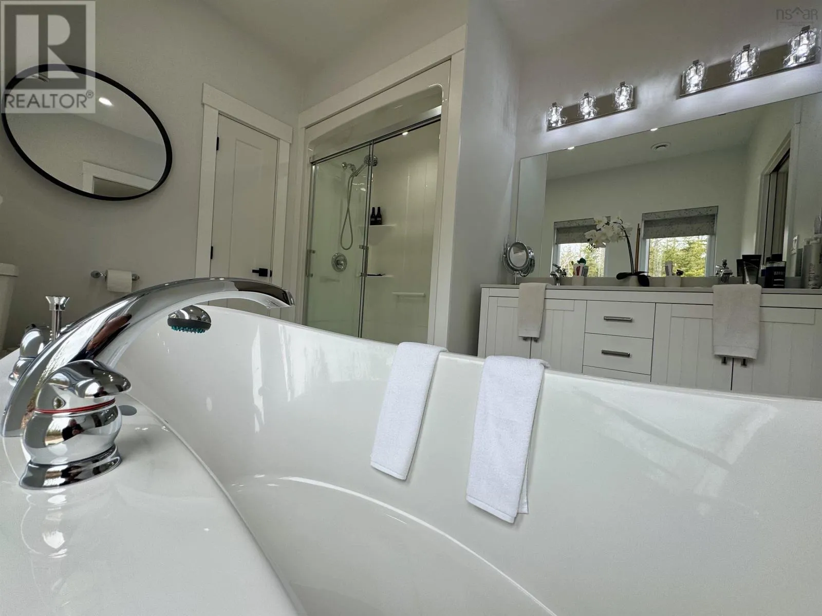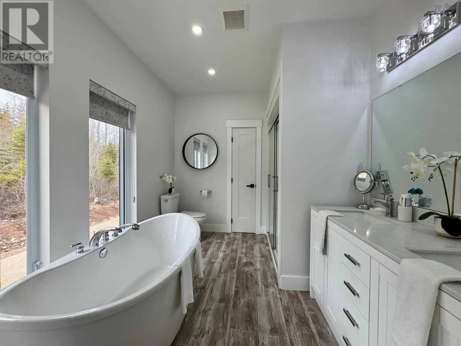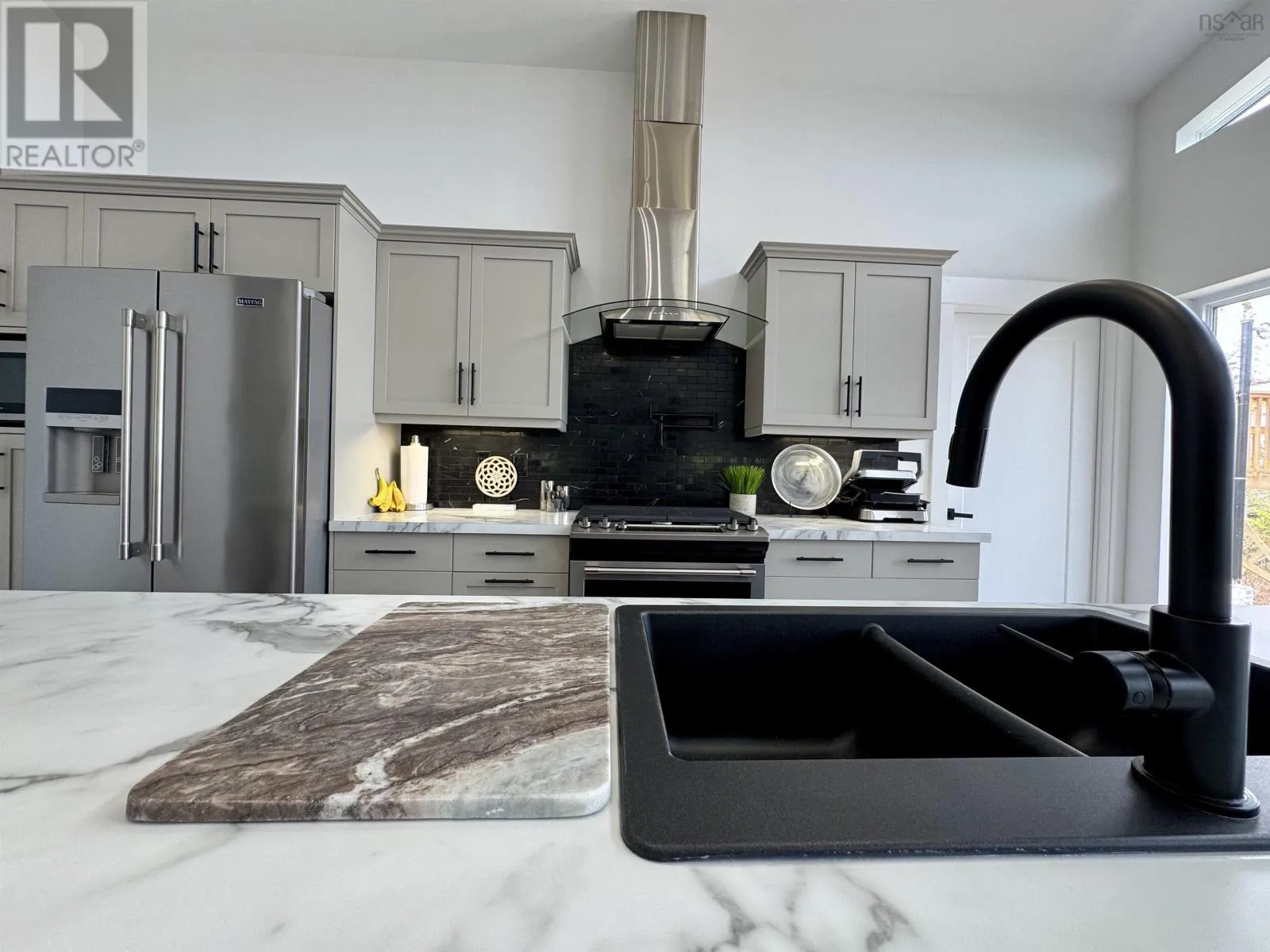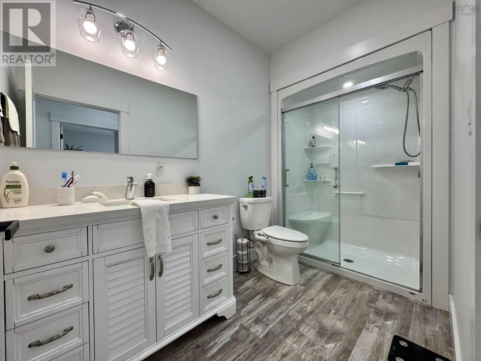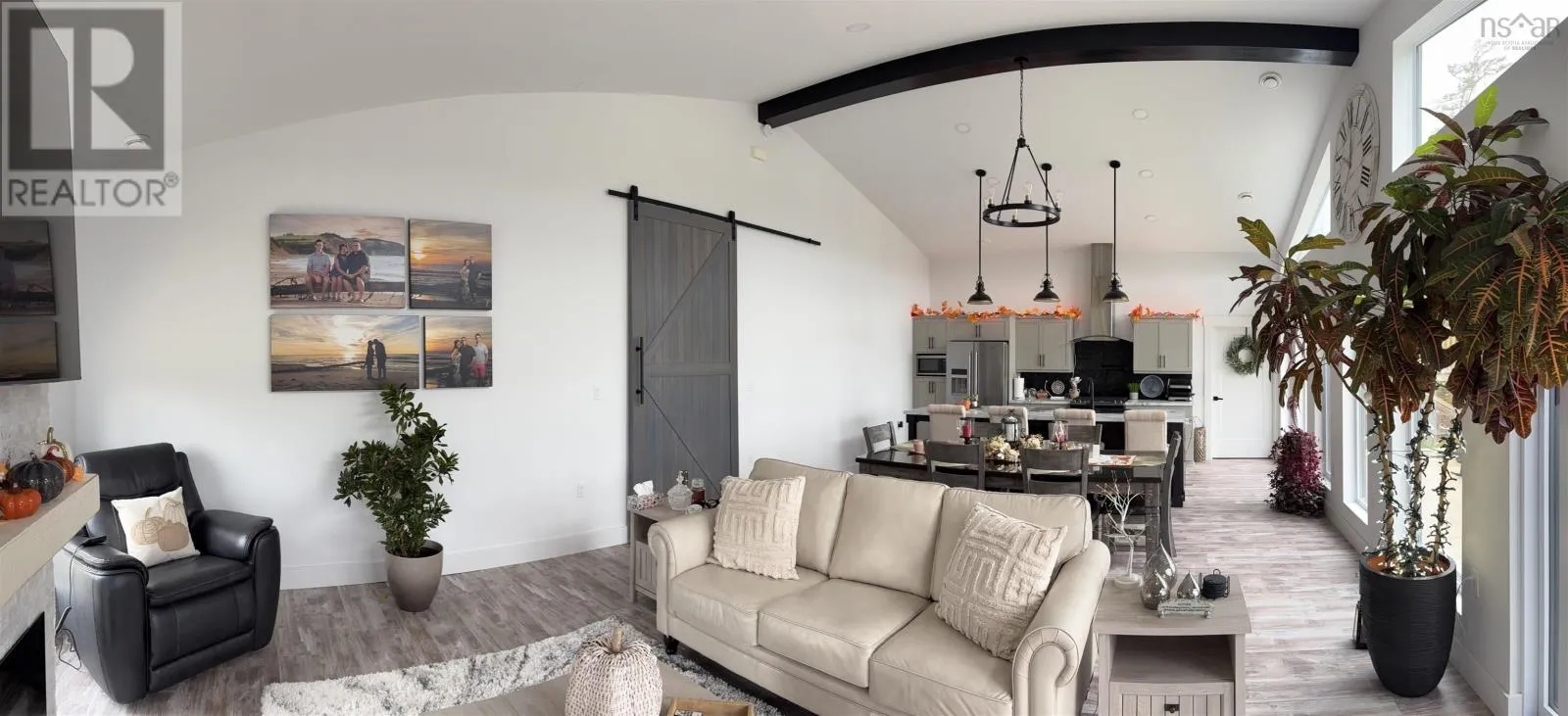 From Highway 104 take exit 46. Turn left onto Highway 320, Louisdale and keep right onto Grandique Ferry Rd. Look for sign. Experience the pinnacle of modern waterfront living in this striking two year old barndominium over looking the lake. In the main living area, soaring ceilings and sleek lines draw your eye to the wall to wall picture windows, flooding the open-concept living, dining, and kitchen areas with natural light as you overlook the water. The gourmet kitchen is a chefs dream, featuring high end stainless steel appliances and a generous island perfect for casual gatherings. During warmer times, enjoy the concrete patio that invites you to entertain or unwind waterside, completely free from neighboring views. After a long day the spectacular primary suite is a sanctuary designed for both comfort and style while recharging your batteries. The spa inspired en suite bath pampers you with a deep soaking tub as well as a glass enclosed shower. Dual vanities provide ample space for morning routines, while separate his and her walk in closets keep wardrobes organized. Two additional bright bedrooms share a full-service bathroom appointed with modern fixtures. Every detail of this home has been crafted for year-round comfort and efficiency. An in-floor propane heating system delivers soothing warmth underfoot during chilly months, while central air and heat maintain the perfect temperature in summer. Even the oven and dryer run on propane, marrying eco-friendly performance with cost-effective operation. And in the expansive 40'Ã40' attached shop there are endless possibilities for hobbyists, entrepreneurs, or car enthusiasts. Above the shop is a versatile loft space that can be transformed into a home gym, game room, art studio, or extra storage; tailor it to your lifestyle needs. Despite its secluded, country like setting, this exceptional property is less than five minutes from groceries, dining, and services, delivering convenience without compromising privacy. With municipal water and sewer services there is even more convenience and peace of mind. Schedule your private tour (id:27476)