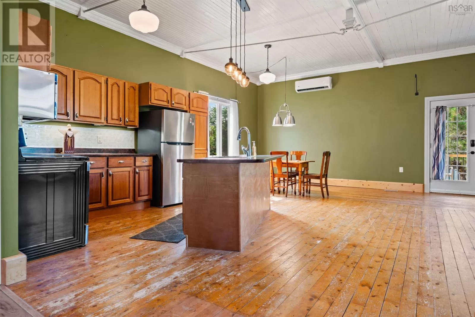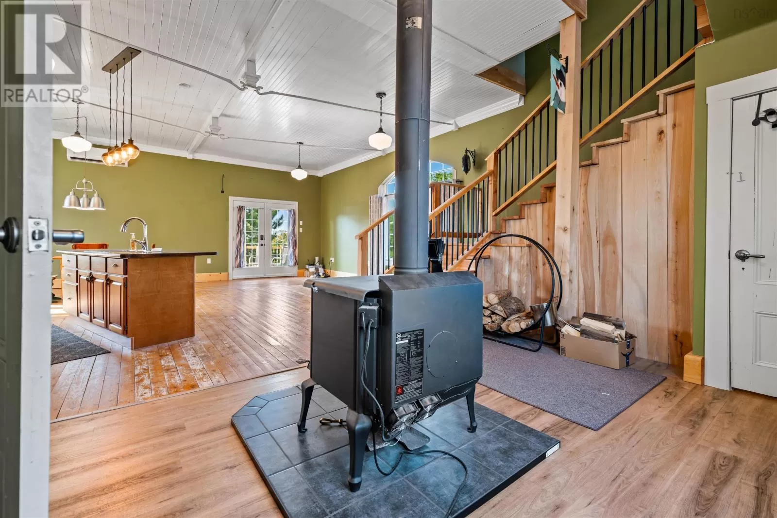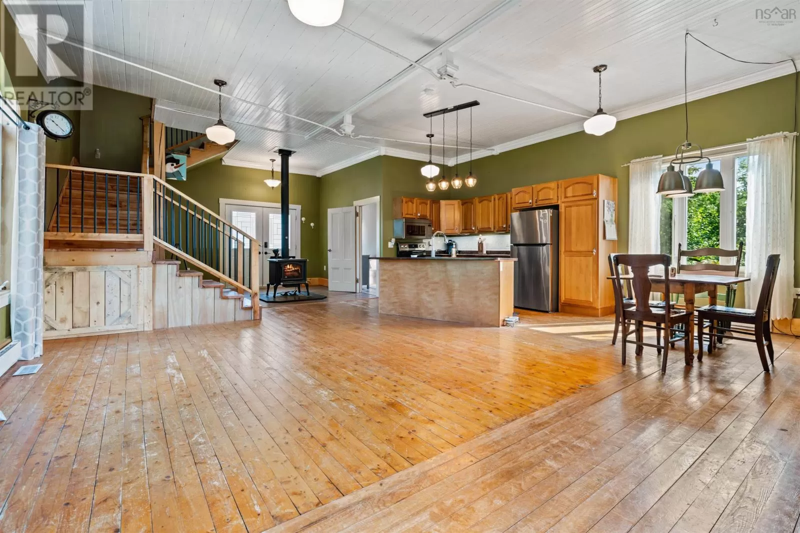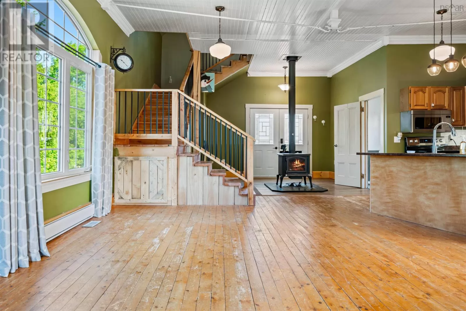 Will include link OPEN-CONCEPT PARADISE WITH PANORAMIC BAY VIEWS! Perched above the Minas Basin, home to the Bay of Fundys world-famous highest tides, this unique property offers breathtaking views from the moment you step insideespecially from the stunning second level! Once serving as the local Community Hall, its been thoughtfully transformed into a bright, modern retreat while preserving its charm. Step into a welcoming front foyer with a cozy woodstove, an open staircase, and a spacious layout perfect for entertaining. To the left, youll find a convenient two-piece bath with laundry. The custom kitchen features a large island, abundant cabinetry, and flows seamlessly into the dining and living areasideal for hosting family gatherings. Soaring windows fill the home with natural light, while a garden door leads to a covered deck for morning coffee or evening BBQs. Upstairs, the airy open layout includes a 3-piece bath and garden doors to a balcony with jaw-dropping views and walk in closetperfect for a good book and a glass of wine. The oversized primary bedroom (18.7 x 22.5) offers potential for an easy conversion into a second bedroom if desired. This home sits on a full walk-out concrete foundation, with a durable metal roof and numerous updates already in place. Whether you keep it as your private getaway or turn it into an investment property, youll fall in love with its character, comfort, and unbeatable location. (id:27476)