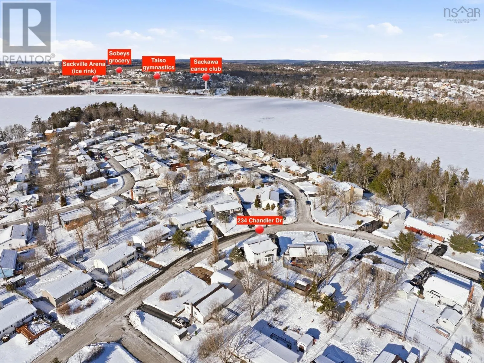 Glendale Dr onto Chandler Dr Welcome to 234 Chandler Drive in one of Lower Sackvilles most sought-after neighbourhoods. Located directly across from First Lake, youll enjoy year-round recreation right on your doorstep. This well-maintained two-storey home offers 4 bedrooms, 2 full bathrooms upstairs, and a half bath on the main level, a functional layout designed with family living in mind. The lower level is partially finished and offers two large spaces currently used for storage and utility, with rough-in plumbing already in place for a future bathroom, giving you room to expand and add value. Set on an irregular pie-shaped lot, the backyard is flat, fully fenced, and perfect for kids and pets. Theres also a shed for extra storage and a paved driveway. Walk to all levels of schools, the Sackville Sports Stadium and arena, trails, shops, and restaurants. A fantastic location, a solid home, and a great opportunity to put down roots in this popular community. (id:27476)