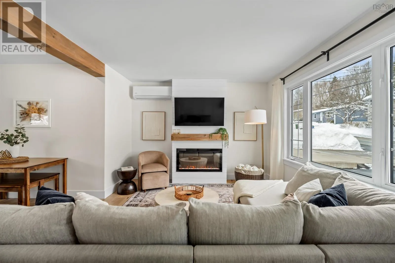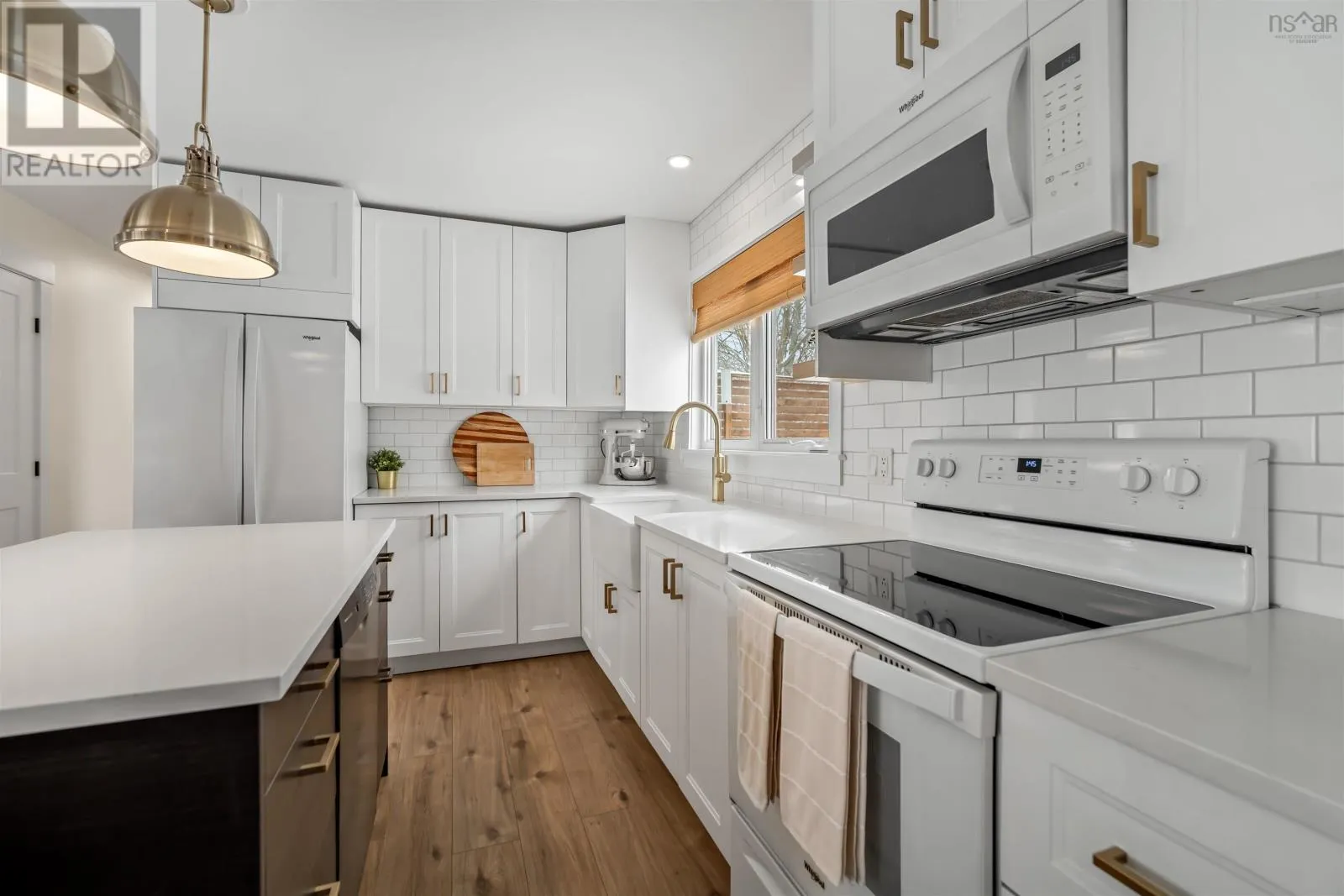 Beaver Bank Road or Cobequid Road to Glendale, turn onto Rankin Drive. Welcome to 187 Rankin Drive in the heart of Sackville a fully renovated bungalow offering comfort, efficiency, and true move-in readiness. Ideally located minutes to highways, schools, and all amenities, this home checks all the boxes. The bright main level welcomes you with an open-concept living space featuring laminate flooring throughout, an electric fireplace with shiplap surround, and large windows that flood the home with natural light. The eat-in dining area flows seamlessly into the beautifully updated kitchen complete with white shaker cabinetry, quartz countertops, island with seating, tile backsplash, stainless appliances, and a pantry closet for added storage. Down the hall youll find a stylish full bathroom with tile surround tub/shower combo, three generous bedrooms, and linen storage. The main level is finished with convenient access to the large rear deck with privacy and fenced backyard perfect for entertaining or family time. The fully developed lower level offers exceptional additional living space with a spacious rec room, stunning wet bar with quartz countertops and island, a versatile den or home office, laundry area, and ample storage. The detached double garage is fully insulated and finished with drywall, its own electrical panel, and a ductless heat pump. Extensive upgrades since 2020 include a fully renovated kitchen and bathrooms, new flooring, trim and doors, updated lighting, plumbing and electrical improvements, three ductless heat pumps, added insulation, optimized ductwork, paved driveway, front landscaping, new rear decking, garage roof, and more providing modern style, improved efficiency, and long-term peace of mind. Book your showing today! (id:27476)