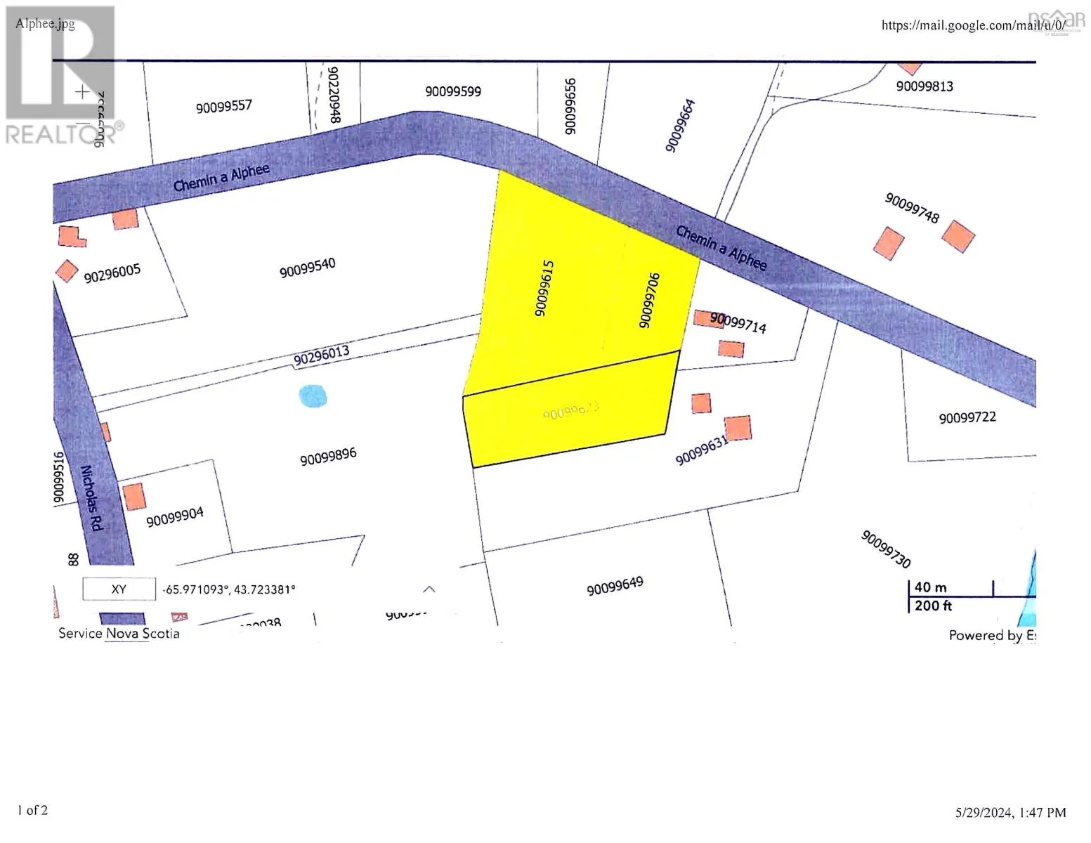 Highway 334 to Lower Wedgeport to Nicholas Road on left. Nicholas Road to Chemin a Alphee. Nestled in the quaint fishing village of Wedgeport, this property offers 2.75 acres of picturesque, fertile pasture land spread across three lots. Characterized by its level terrain and charming stonewalls, the serene setting is located on a quiet lane, providing an ideal location for building your dream home. Enjoy the beauty and tranquility of rural life while still having convenient access to nearby amenities. This is a unique opportunity to create a beautiful residence in a peaceful and idyllic environment. (id:27476)