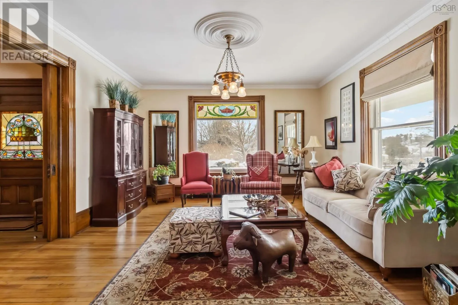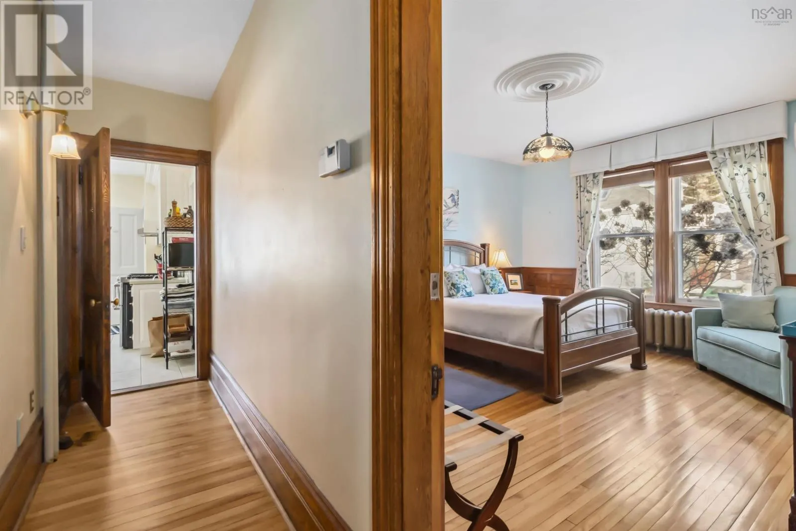 Take Green Street to McDonald. Property is on the corner. Alicion Bed and Breakfast is one of Nova Scotia finest tourism properties and a prestigious and historical house in Lunenburg. Offered as a fully furnished, well equipped turnkey business in a prime location, this stunning century- old home has been meticulously maintained to showcase its original woodwork, elegant stained glass, and a timeless charm. The house has four beautifully appointed guest rooms arranged over the ground and first floors, each with its own ensuite, and an owners suite on the 3rd floor. The property also includes a charming 2 bedroom 1 1/2-bathroom Carriage House offering potential for additional income. Modern conveniences blend seamlessly with historic charm with five heat pumps installed throughout and air conditioning in the owners suite. Recent upgrades include new appliances in both the main house and Carriage House, and aside from annual servicing and spot maintenance, the entire house has been painted, shingled, had new gutters, and substantial and ongoing landscaping maintenance over the last 6 years. Situated in a quiet and desirable location, guests can easily walk to the waterfront, restaurants and attractions of the UNESCO designated town of Lunenburg. The business generates over $115K cash flow with a 5-month season, offering significant growth potential. The current owners are retiring to the Old Town and will be happy to lend advice if needed. This exceptional offering includes the property and the intellectual property, providing a seamless transition for the next owner whether for a lifestyle change or a thriving hospitality investment. Alicion Bed and Breakfast is a rare and extraordinary opportunity to own a piece of Nova Scotia's hospitality heritage. (id:27476)