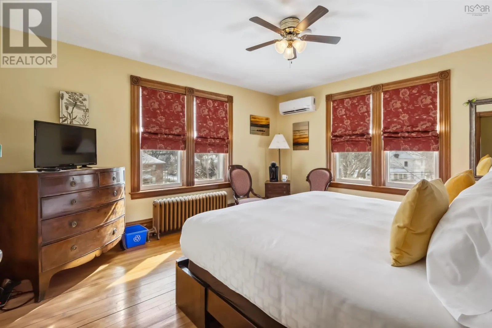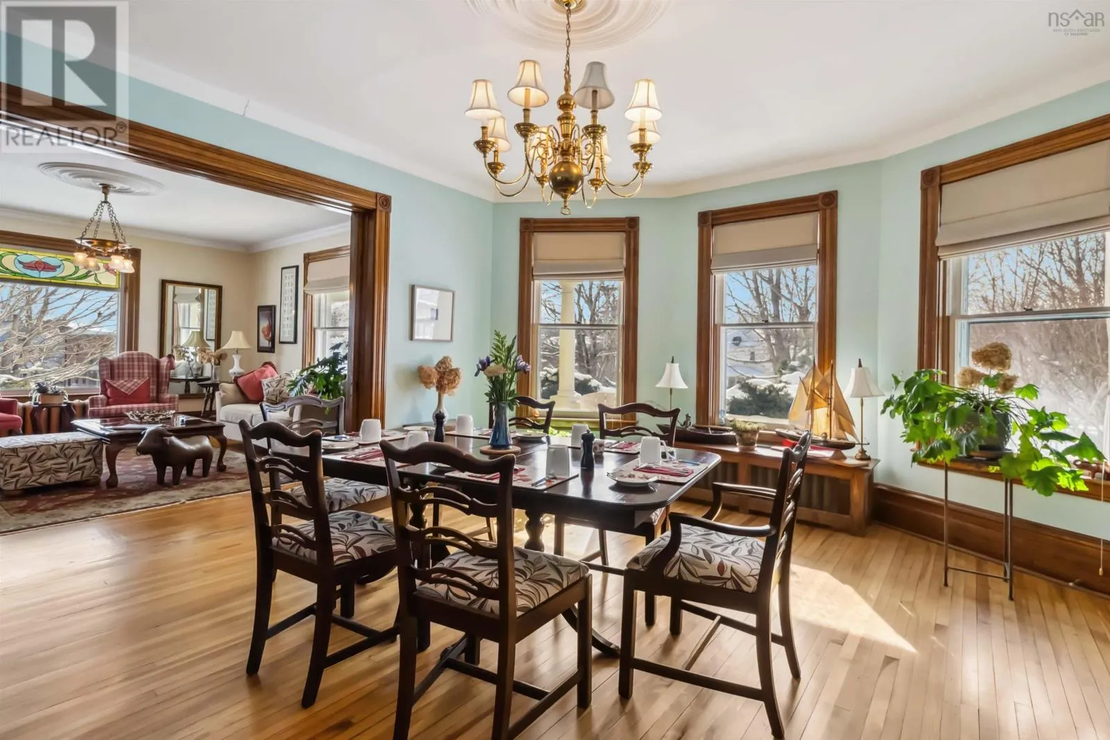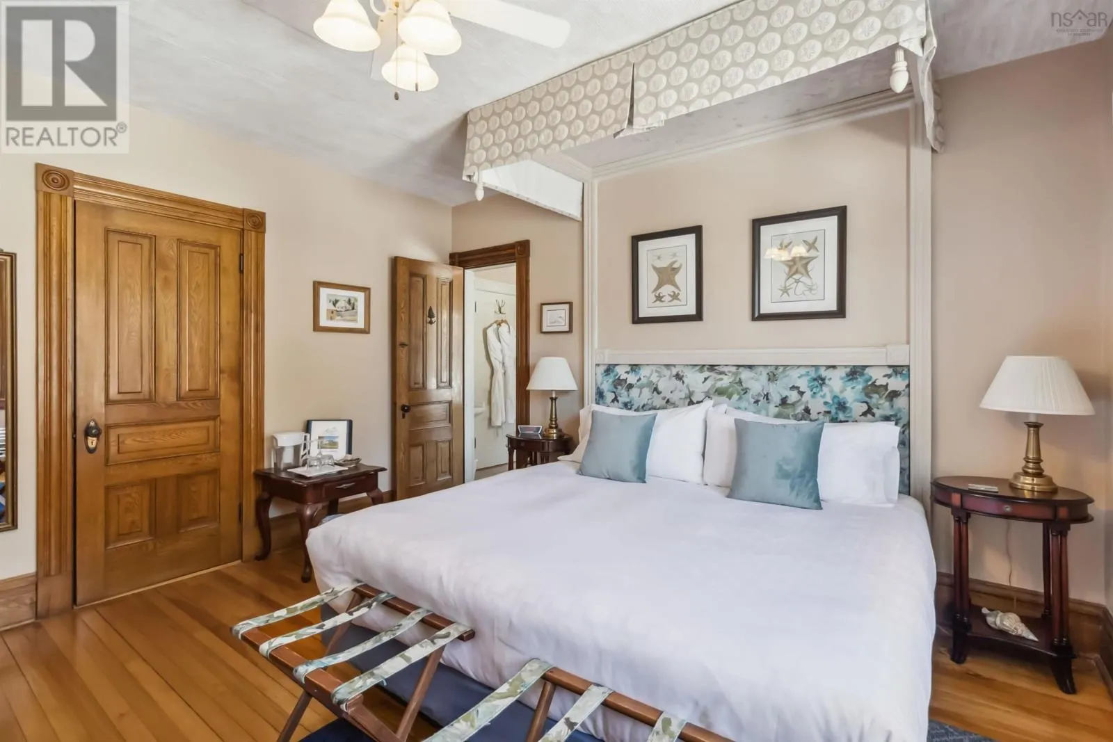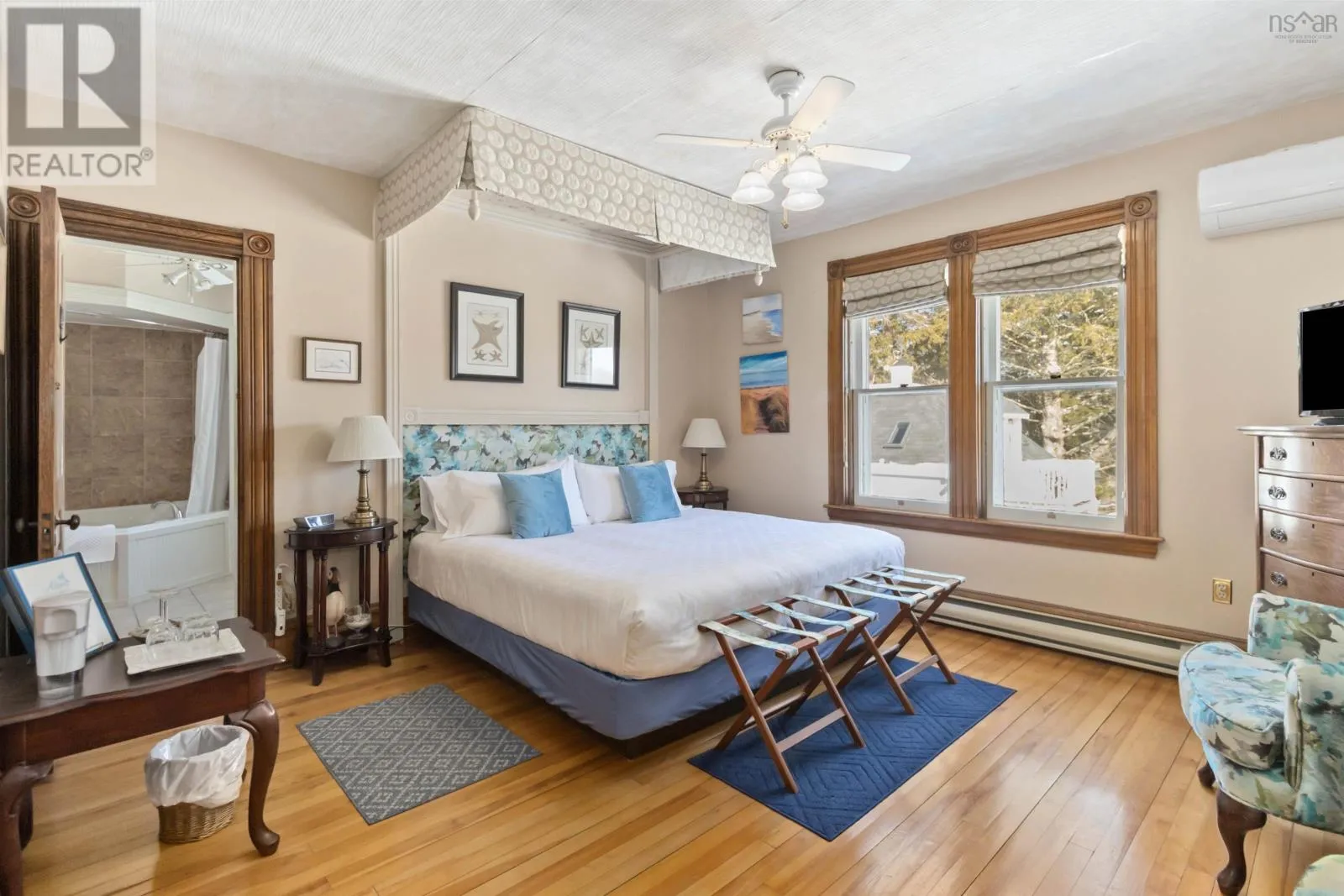 Take Green St to Mcdonald property is on corner. Discover Alicion Bed & Breakfast, one of Nova Scotias finest. It is a fully furnished and equipped turn-key business in a prime location. This stunning century home has been meticulously preserved, showcasing its original woodwork, elegant stained glass, and timeless charm. With four beautifully appointed guest rooms, each with its own ensuite, guests are treated to comfort and luxury. The private owners suite, located on the third floor, offers a serene retreat. The property also includes a charming two bedroom. 1 and a half bathroom carriage house cottage, perfect for additional income or extended stays. Modern conveniences blend seamlessly with historic charm, with five heat pumps installed throughout and air conditioning in the owners suite. Recent updates include new appliances in both the main house and the cottage. Situated in a quiet yet desirable location, guests can easily walk to the waterfront, local restaurants, and attractions of the UNESCO designated town of Lunenburg. This exceptional offering includes not only the property but also the intellectual propertyproviding a seamless transition for the next owner. Whether youre looking for a lifestyle change or a thriving hospitality investment, Alicion Bed & Breakfast is a rare and extraordinary opportunity. Dont miss your chance to own a piece of Nova Scotias hospitality heritage! (id:27476)
