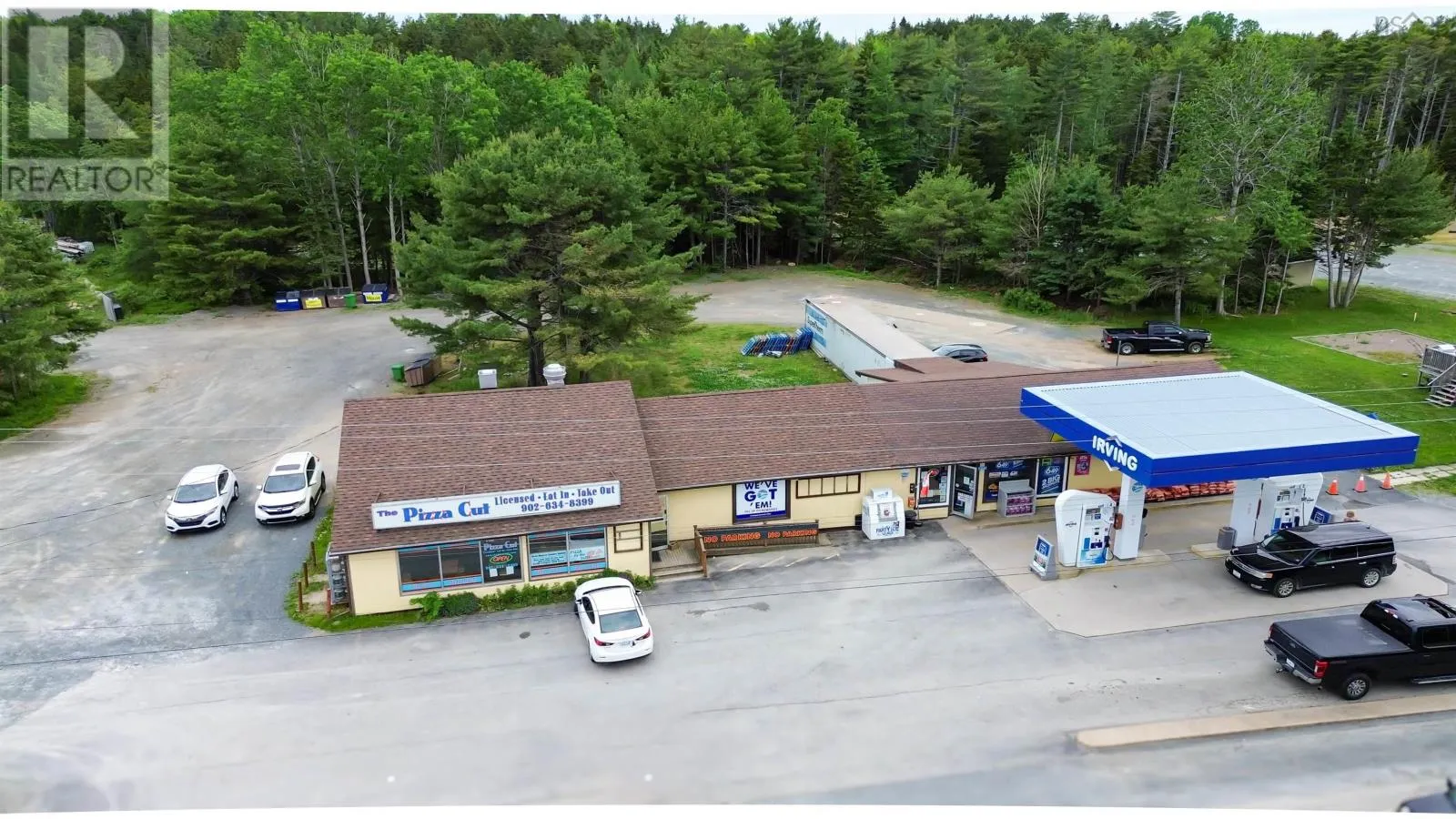 From Blockhouse take Northwest Rd towards Lunenburg, turn right on stop sign onto 332, then left on Old Trunk 3. Excellent opportunity to own a commercial property in a great location. Welcome to Mike's KwikWay, Gas station and Pizza, a beloved community landmark that has served Lunenburg and surroundings for over 40 years! The original store was built around 40 years ago, the pizza store was added in year 2000 with potential for second-story addition to increase square footage and revenue streams. Gas station was added few years ago to the variety store. Both businesses are leased out to excellent tenants. An attached 50 ft Trailer to the back of store makes a great space for storage. Ample parking for customers. -Nova Scotia is in the planning phase to pass a law permitting liquor sales in variety (corner/grocery) stores effective 2026. (id:27476)