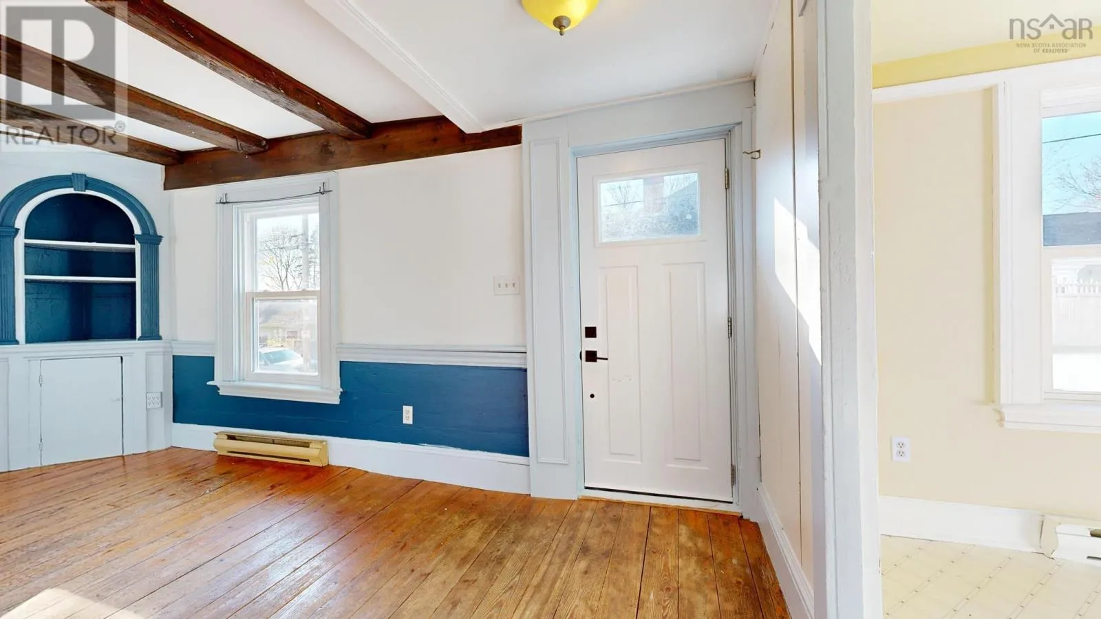 Take Lincoln Street into downtown Lunenburg and turn left on Duke Street. Turn left on Fox Street. This charming Lunenburg house was originally built before 1864 and is believed to have been the Lutheran manse. Windows still reflect the church connection. Imagine the stories this house could tell. Right in the middle of Lunenburg within walking distance to everything the waterfront, churches and all the fine restaurants Lunenburg has to offer. The house has lovely wood floors, exposed beams and wainscotings. The main floor is open concept and bright with an eat-in kitchen, large living room and a small bedroom or office. The finished basement has a rec room, plenty of storage, a laundry and 3-piece shower room. The upstairs has two bedrooms and a 4-piece bathroom. Lots of built in drawers adding even more charm throughout the house. There is a large wooden fenced in back yard which provides lots of privacy for sitting outside. A lovely and safe space for dog lovers. There is a small garage/workshop with power that is set back from the road with a short driveway. (id:27476)