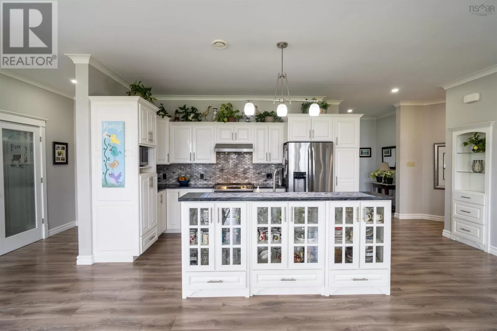 From Pictou Rotary take Hwy 376 exit, stay left at the fork and the property will be on the left Welcome to this exceptional 5-year-old custom-built home, nestled on a beautifully landscaped 1.6-acre lot with captivating harbour views in the highly sought-after community of Lyons Brook, West Pictou. Featuring high-quality craftsmanship and timeless elegance, this move-in-ready home offers style, comfort, and exceptional pride of ownership. Inside, a spacious open-concept layout seamlessly connects the living, dining, and kitchen areasideal for both everyday living and entertaining. The showstopping kitchen is a chefs dream, complete with crisp white cabinetry, stylish hardware, a large central island, ample cupboard space, and a custom walk-in pantry. This thoughtfully designed home offers 3 generously sized bedrooms and 2.5 bathrooms. The luxurious primary suite features a large walk-in closet and a spa-like ensuite with a soaker tub, expansive walk-in shower, and double sinks. Enjoy year-round comfort with in-floor heating (5 zones) and an energy-efficient ductless heat pump for heating and cooling. Step outside to a beautifully maintained yard featuring a concrete patio perfect for summer BBQs, a 12x18 semi-inground pool, and stunning views of the harbour. With deeded access to the water, you can enjoy kayaking, swimming, or simply enjoy the viewsright from your backyard. Additional highlights include an attached garage with bonus roomideal for hobbies or extra storage, a dettached 28x30 garage, a paved driveway, and an impressive 400 amp electrical! Perfectly located just 5 minutes from the historic town of Pictou, 15 minutes from New Glasgow, 10 minutes to the PEI ferry, and just over an hour from Halifax Stanfield International Airport. A short drive brings you to the beautiful Caribou Beach. This rare offering blends luxury, tranquility, and conveniencedont miss your chance to own a piece of paradise in one of Pictou Countys most desirable communities! (id:27476)