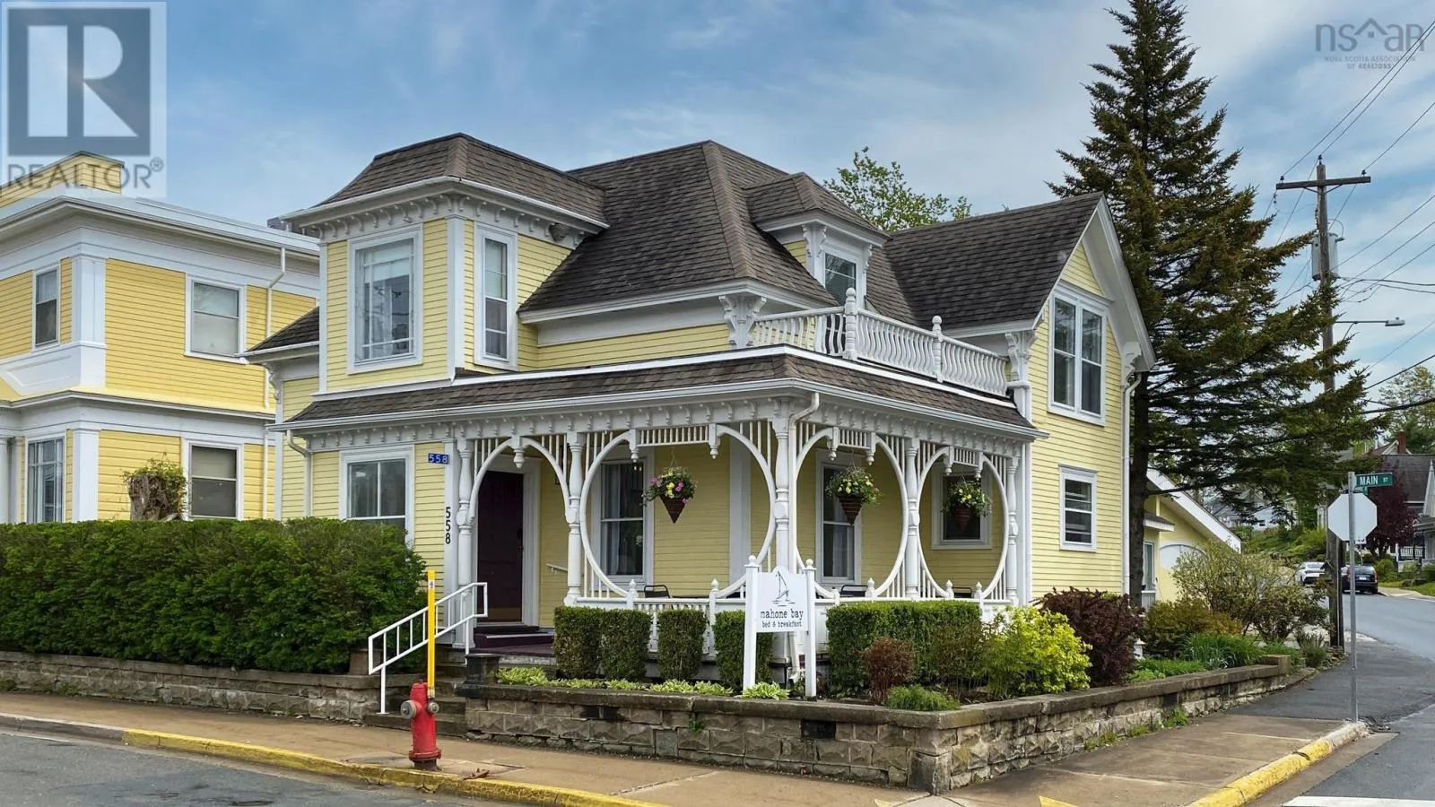 Exit 10 off hwy 103, take a right into town of Mahone Bay, continue along Edgewater St, left at the cenotaph to Main St. Historic Charm Meets Modern Luxury-Your Bed and Breakfast Opportunity Awaits! Welcome to the iconic Mahone Bay B&B, and a rare opportunity to own this well established business. This beautifully maintained Victorian home, thoughtfully renovated and updated with modern conveniences is centrally located in the heart of a vibrant coastal town known for its charm, culture, and seaside beauty. Perfectly positioned on a corner lot and just steps from the towns shops, restaurants, galleries, and waterfront, this property offers the best of small-town living all with a built-in business opportunity. Operating as the Mahone Bay Bed & Breakfast, this elegant home features 4 spacious guest rooms, each with its own private ensuite bathroom. Guests are treated to timeless character, high ceilings, warm hardwood floors, and intricate woodwork throughout. The main-level owner's apartment provides private living quarters separate from the guest space, ideal for both comfort and convenience. Outside, enjoy lush gardens, a wraparound veranda, and private outdoor areas perfect for relaxing or entertaining. Additional highlights include an attached garage with an EV charger, ample parking for guests, and updated modern comforts all while preserving the homes historic elegance. Whether you're looking to continue the B&B legacy or simply live in a stunning showpiece home in one of Nova Scotias most sought-after coastal communities, this property is an exceptional find. (id:27476)