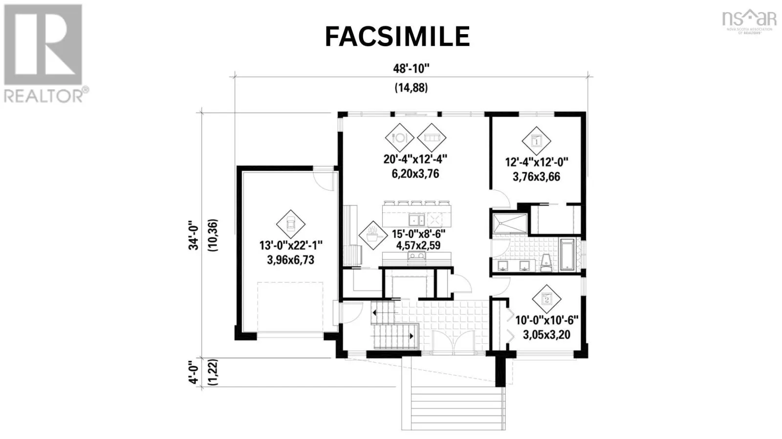 Main Street to Clearway This warm urban-style house will charm you with the originality of its facade. This model measures 48 feet wide by 34 feet deep, with a living area of 1,158 square feet. The house features an entrance hall with a closet, a bathroom equipped with a shower and bathtub, two bedrooms, and an open area that shares the living room, dining room, and kitchen, complete with a large island and pantry. The buyer can choose finishes and request alterations to the design. (id:27476)