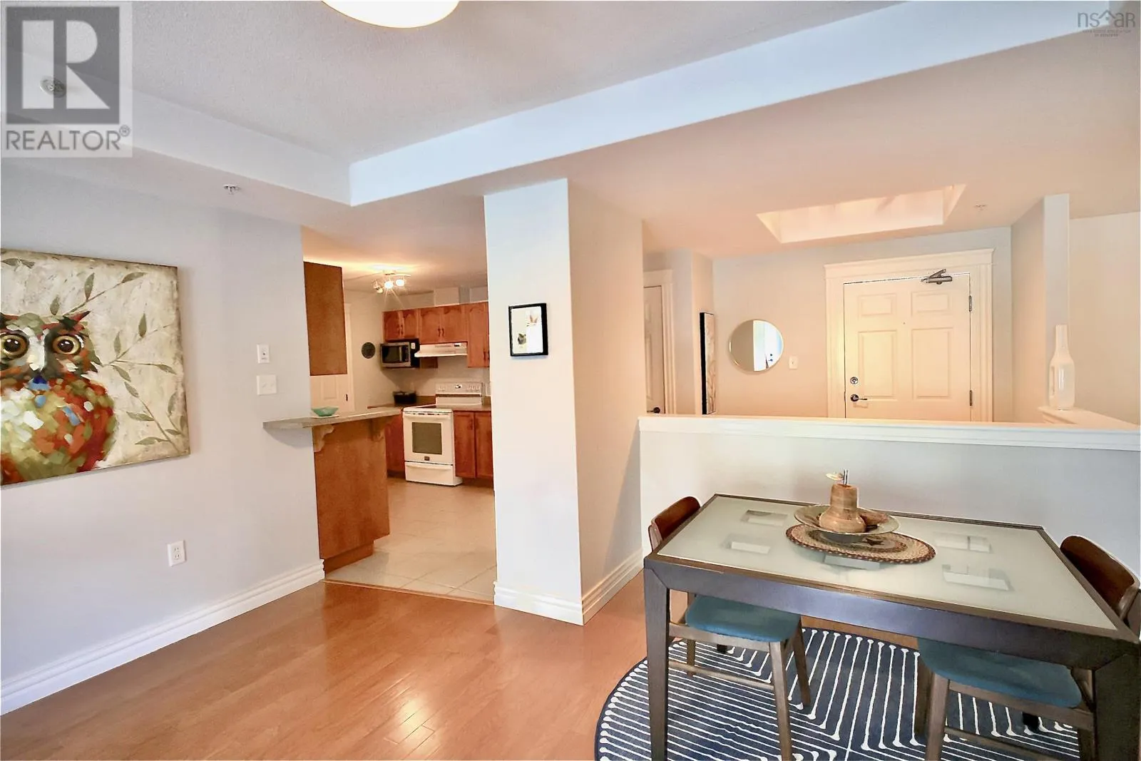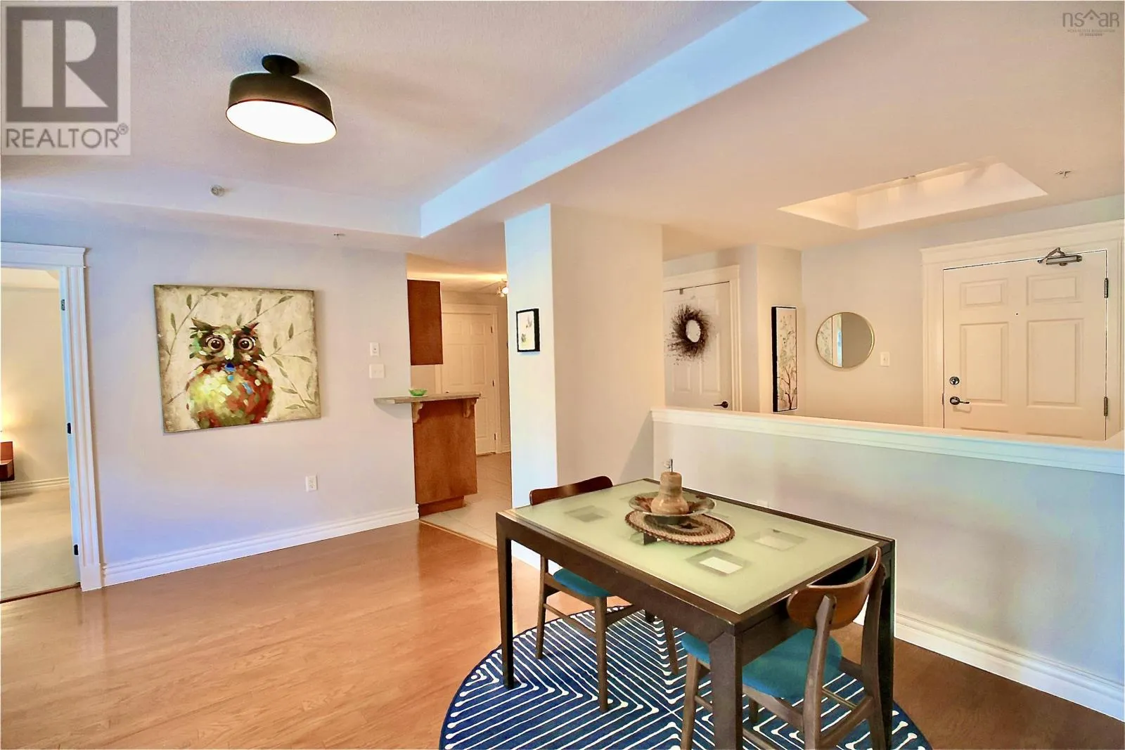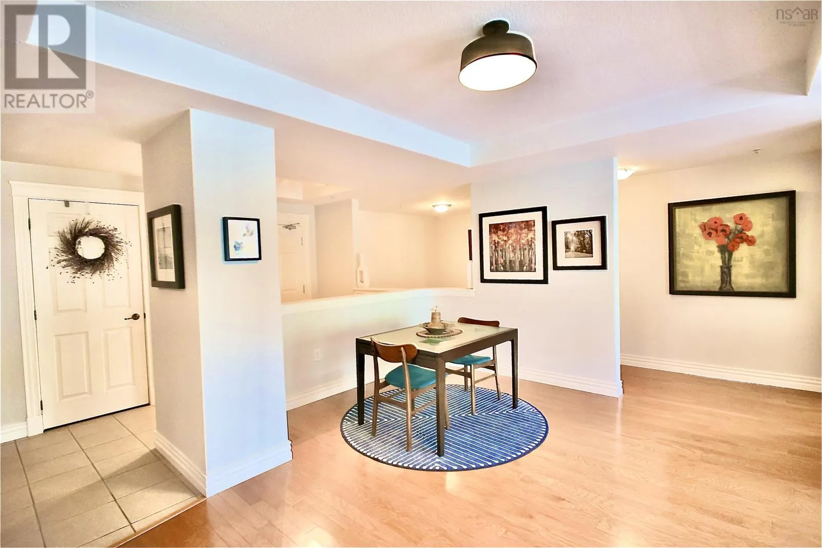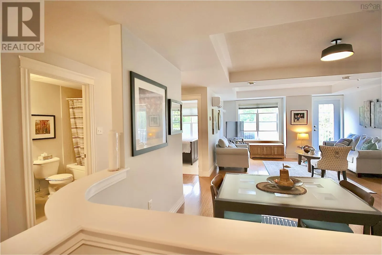 Follow Highway 103 to exit 10 or 11 and turn onto Main Street in Mahone Bay Amazing opportunity to get into this beautiful 2 bedroom, 2 bath condo in the heart of Mahone Bay. The Quinlan is an extremely well managed and well kept 34 unit building with underground parking, spacious common areas and beautifully landscaped grounds. Entering the unit, you will appreciate the open concept floor plan, hardwood floors and the natural light coming in through the wall of windows. The primary bedroom is large with access to a well laid out walk in closet and an ensuite with a corner shower. The second bedroom has big windows, a nice closet and quick access to the second bathroom just down the hall. The kitchen is well appointed and opens to the eating nook and spacious living area with access to your private balcony with views of the property. Other features of this home include a newer heat pump, secure indoor parking with additional storage space and a large common area for residents located on the first floor. Call today to book your own private showing. (id:27476)