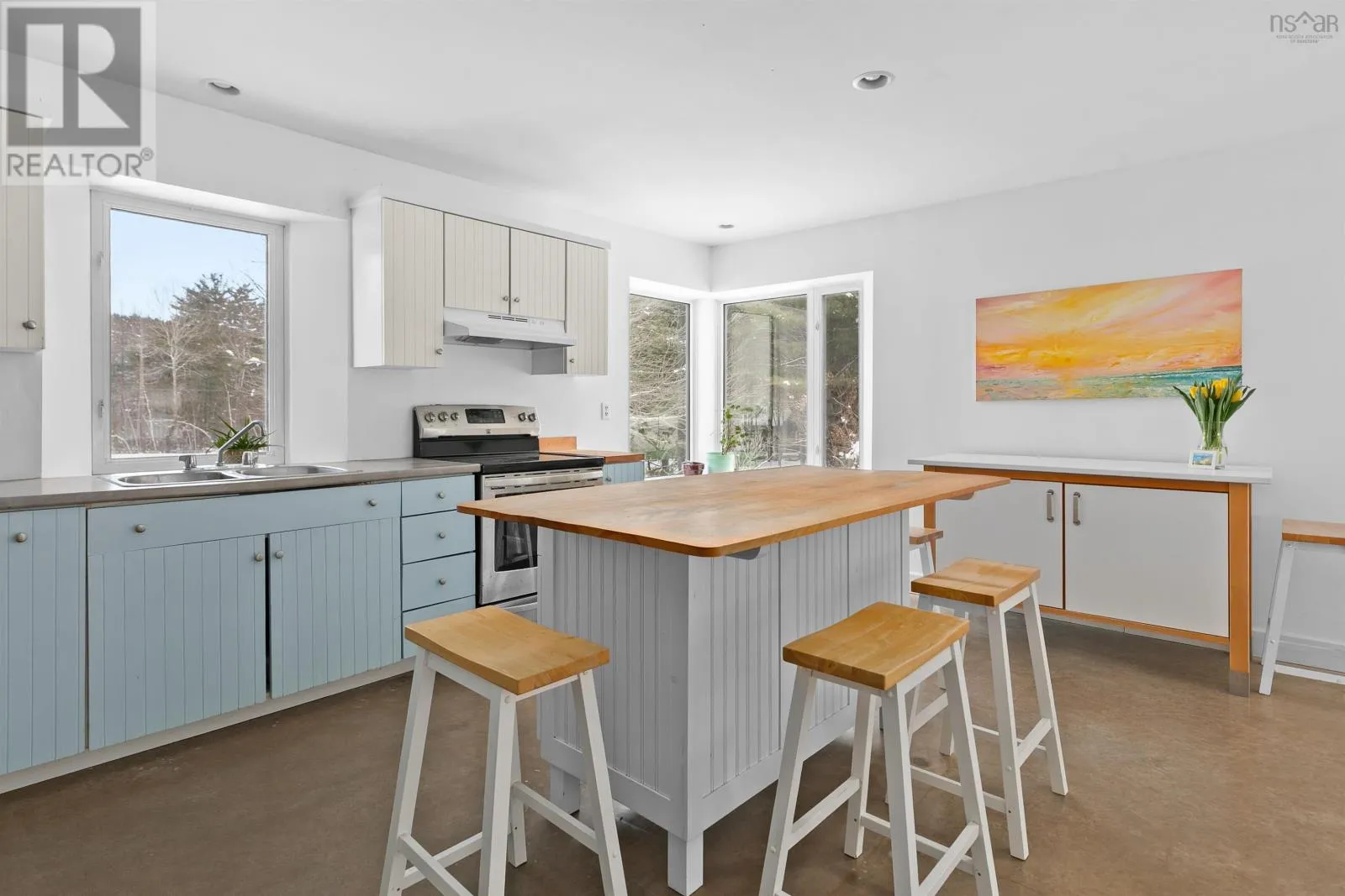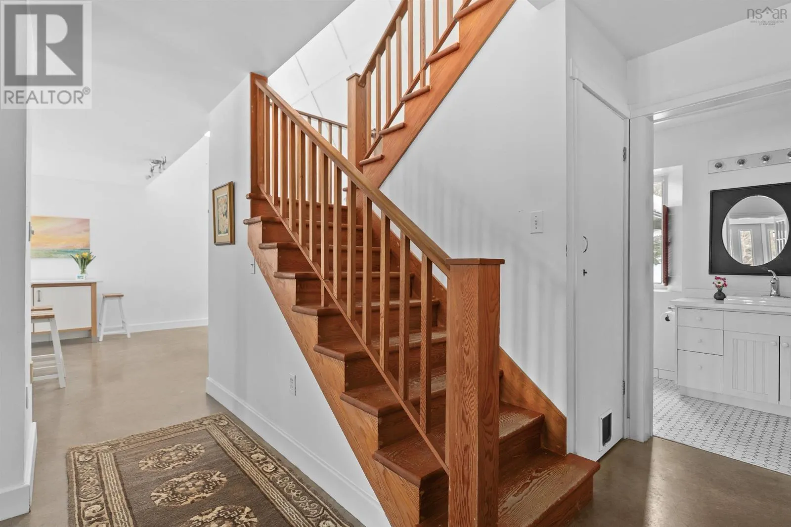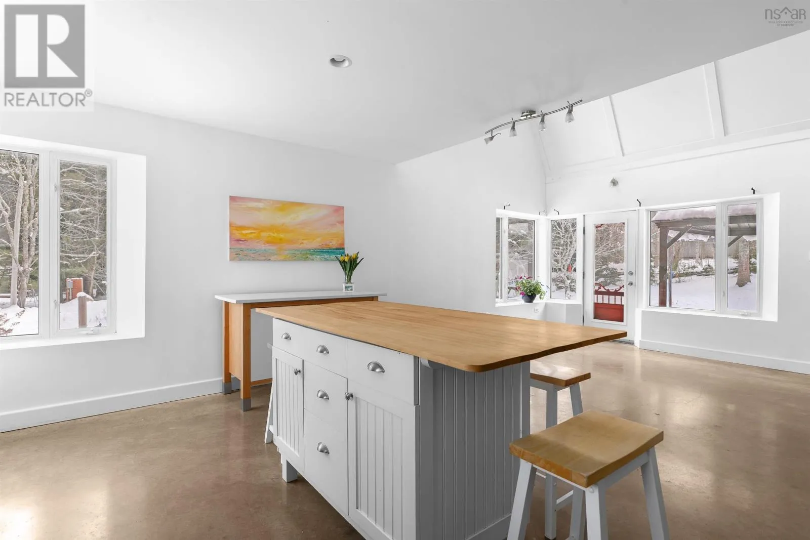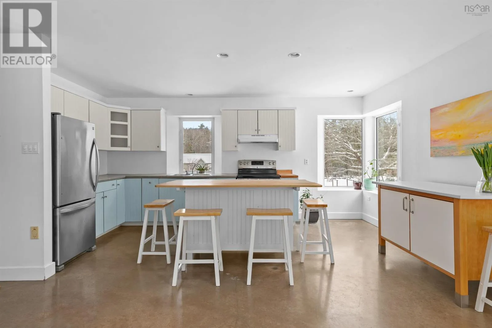 Mahone Bay. Main Street to Long Hill Road. Property on left. A NEW BEGINNING, MAHONE BAY. Get ready to celebrate with friends at your housewarming party in this light-filled, energy efficient, environmentally friendly home. There are in floor radiant heated floors on both levels, smooth polished concrete on the main level and natural softwood floors upstairs. The sunny great room has a vaulted ceiling with raised panel accents on the ceiling, is open to the kitchen, and has garden doors to a private back deck with covered pergola. There is a main floor bedroom or office, laundry room, and bathroom. The upper level features two more bedrooms, recently renovated bathroom, and a family room overlooking the main floor great room with skylights. A gardeners delight inside and out - lots of large windows for passive solar, wide window ledges for starting your spring seedlings, and raised veggie or flower beds outdoors, fruit trees and flowering shrubs and perennial gardens. There are solar panels to help with heating and hot water. The house is set back on a ¾ acre level lot, ideal for family activities. Located on a quiet road in Mahone Bay, next door to the Dynamite Trail for hiking, walking the dog, cycling... Enjoy all that Mahone Bay offers in a serene atmosphere. (id:27476)