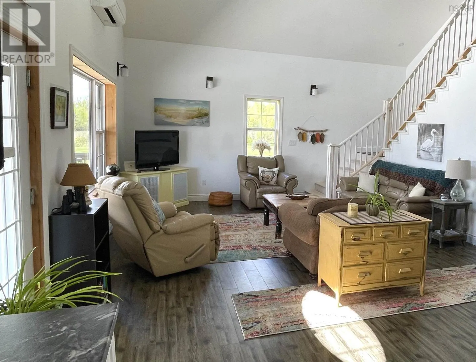 Malagash Road to Saltwater Drive Come live your ocean dreams in this pristine, like new, eight year old home on five acres of level landscaped land. Overlooking the whole of Tatamagouche Bay, there are enchanting ocean views, and beyond to the delightful Cobequid Hills with their amazing display of colour in the Fall. This three bedroom four season open concept home has ocean views from almost every window, and being south-facing is always light and bright year-round. The cathedral ceiling of the Great Room creates an amazing sense of space, is incredibly peaceful, opening onto a massive sixteen hundred square foot wrap-around deck with a screened area for those long summer evenings. Inside a wide stairway leads up to the impressive primary bedroom with storage. Two further bedrooms, bathroom, laundry and utility room are on the main level. In addition to the fabulous ocean views the home has Deeded access to a great beach where you can swim and kayak. Located just fifteen minutes from everything happening Tatamagouche and nearby to four golf courses, Ski Wentworth, Jost Vineyards, beaches, restaurants and cafes. Your perfect ocean retreat. (id:27476)