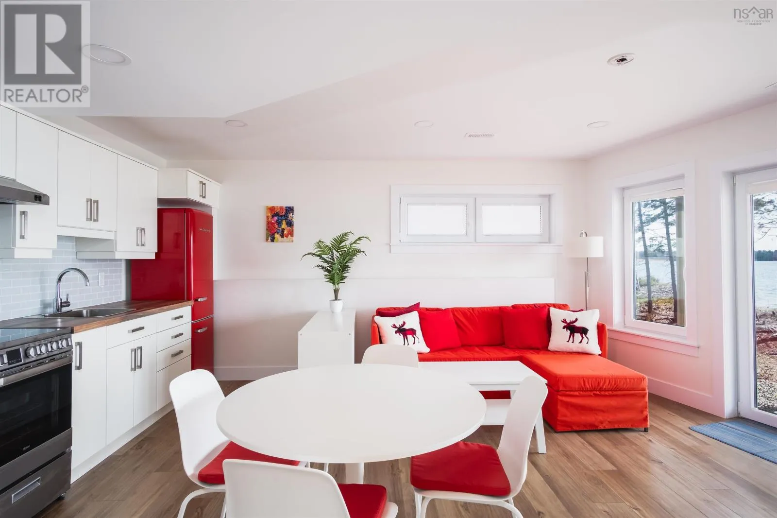 Follow Marble Mountain Rd. to just past Militia Point Rd. - Redbird Drive is signed and is shortly after, on your right. The property is on your right and is numbered and signed. Let the sound of the waves gently lapping at the shore relax you within this BRAND NEW sanctuary that makes the most of its unparalleled vistas. The distinctive and modern home sits on more than 3.5 acres of beautiful forested land that embraces a lovely pond and provides close to 400 feet of shoreline on Cape Breton's famed Bras D'Or Lake. The exceedingly spacious three-level house was constructed just 115 feet from the waterfront with the seascape as its focal point, and with no expense spared. Thanks to the many large windows and skylights of the utmost quality throughout, the house is flooded with light. The highly insulated ICF build boasts five above-grade bedrooms, including an exceptionally generous primary bedroom with stunning scenery. As part of a self-contained unit with the option of its own access downstairs, a sixth bedroom also offers wonderful lakefront views. Three bathrooms with ceramic tile, underfloor heating, and European wall-hung toilets with integrated cisterns provide ultimate comfort, as does the luxurious soaker tub on the second floor. Experience bliss as you enter the bright and spacious main-level living room which flows seamlessly into a gleaming eat-in kitchen containing an island with seating for four. This magnificent abode is also home to a cozy wood-burning fireplace, high-end stainless steel appliances, solid maple floors, and a screened porch which grants access to a massive deck that wraps the home from side to side. An additional living room and kitchen are integrated within the charming lower level walkout; it provides amazing water views as well as the opportunity to be used as an apartment or rental unit. A detached two-vehicle garage with remotely controlled doors offers more than 650 square feet of storage space within a wired, heated unit. This rare and remarkable property is being offered with high-end major appliances, furniture, custom blinds, and a new Generac included. It's ready for you to move into today! (id:27476)
