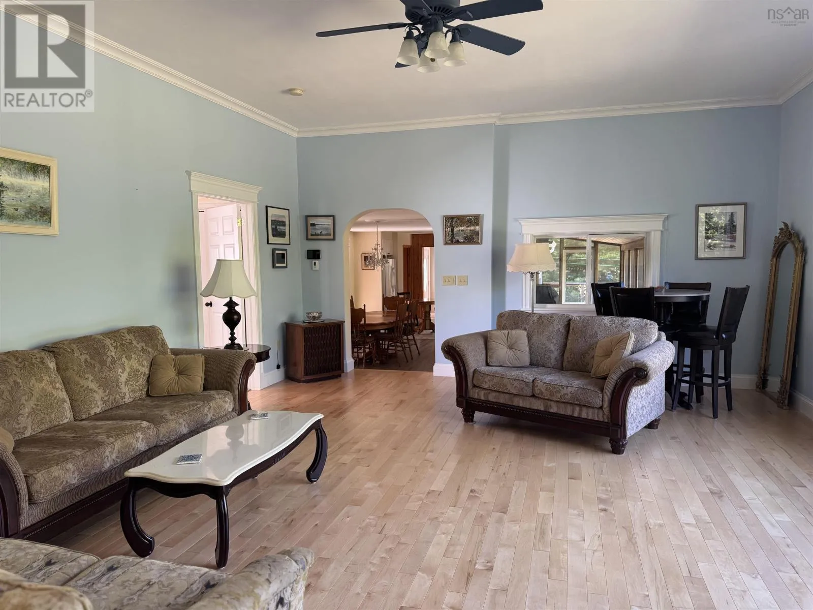 Take Exit 11 off the 103 and travel to Maplewood and then right on Gilberts Lane to civic 590 signed on right. Discover the perfect blend of luxury, comfort, and natural beauty at 590 Gilberts Lane in picturesque Maplewood. This expansive property sits on 2.21 acres and offers the highly sought-after combination of private riverfront access and deeded access to several areas on beautiful Sherbrooke Lake-ideal for swimming, boating, and all your recreational desires. The large, renovated home boasts an impressive 6 bedrooms and 2.5 baths, offering ample space for a large family or for welcoming guests. The heart of the home is the stunning living room, featuring a soaring 10-foot ceiling, oversized windows that flood the space with natural light, and a meticulously handcrafted fireplace mantle as its centrepiece. Enjoy seamless indoor-outdoor living with a very large deck, complete with pot lights and a glass railing, making it a perfect spot for family gatherings and entertaining. Off the kitchen and dining area, you'll find a delightful, screened sunroom, the ultimate retreat for enjoying your morning coffee while overlooking the serene river. This home has been thoughtfully renovated and expanded between 2020 and 2022 to provide year-round comfort with a ducted heat pump for remote-controlled heating and air conditioning. Sustainability and low utility bills are ensured by 33 solar panels. The property is wired for modern living with fast Ethernet jacks in the rec room, primary bedroom, and den, and surround sound wiring in the living room, dining room, and rec room. Outside, you'll find a large area with three outbuildings and a wired-in generator hookup for peace of mind. Whether you're looking for a full-time year-round residence or a fantastic cottage retreat, this property offers it all, situated among many other year-round residences on the lake. You'll enjoy the tranquility of a lakeside community while being just 20 minutes from the village of New Germany and all its amenities. (id:27476)