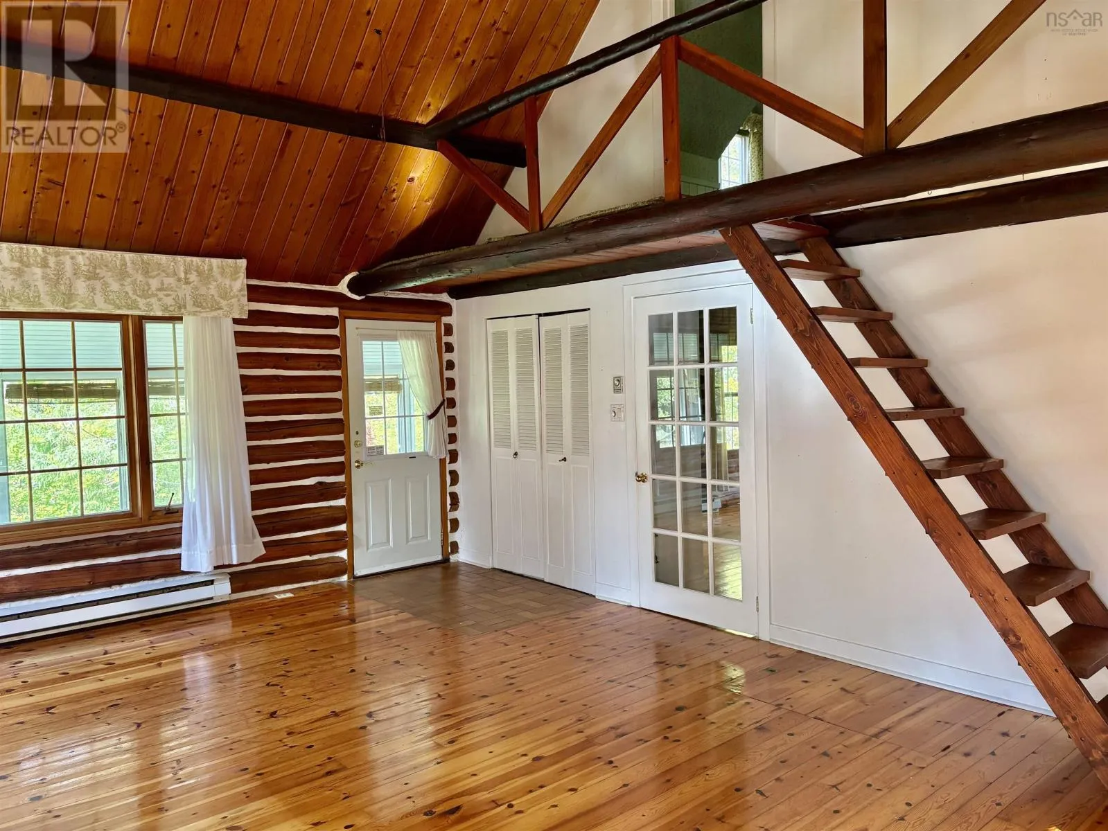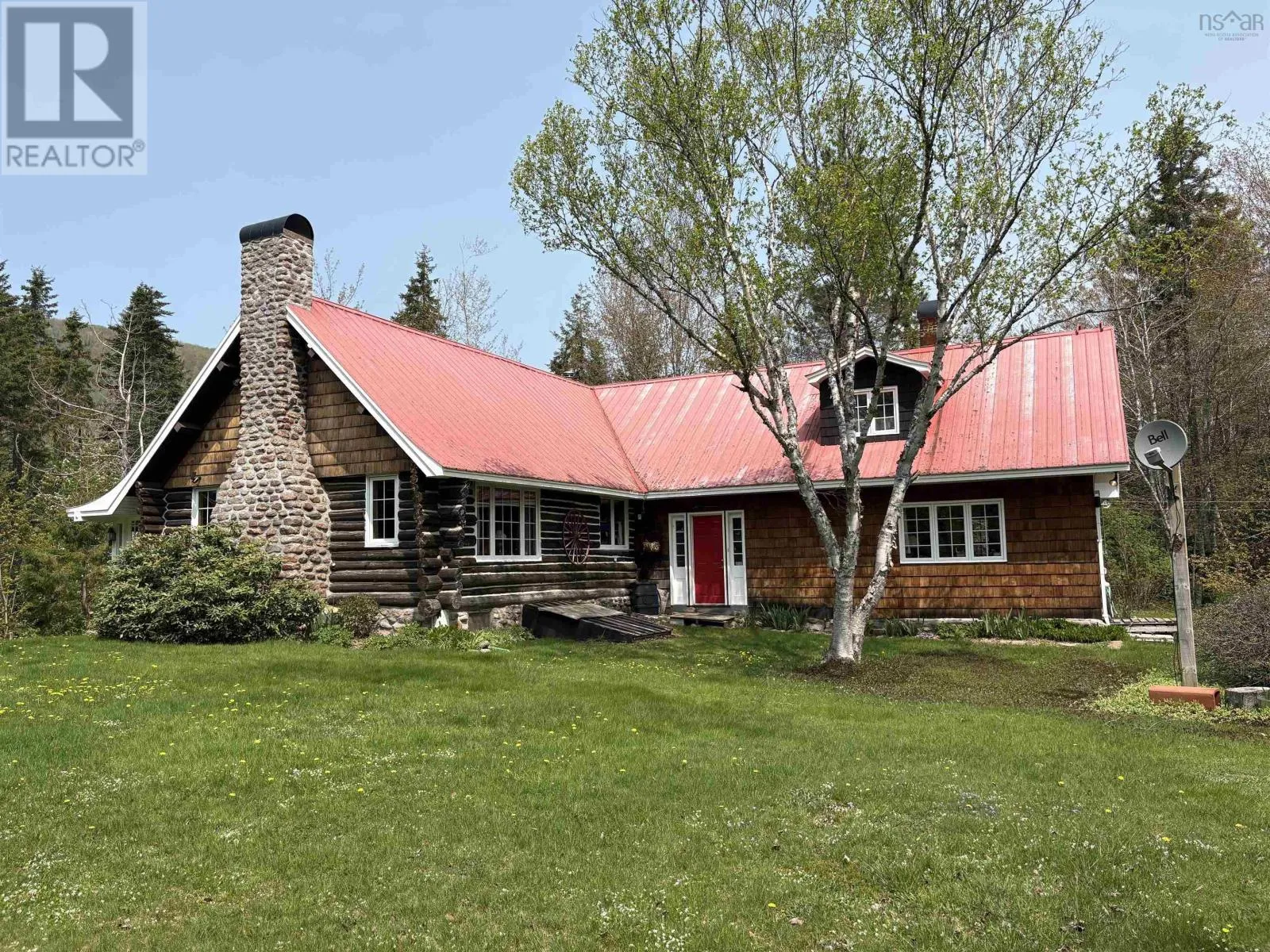 Take East Big Intervale Road, once the pavement ends expect to drive approximately nine km. Look for real estate sign. This well - maintained 3 - bedroom log home offers a serene lifestyle in one of Cape Breton's most picturesque settings. Surrounded by nature and set at the base of a mountain, the home offers sweeping mountain views in every direction! Just steps across the road lies the renowned Margaree River, an ideal location for fishing enthusiasts.The property features two spacious sheds for storage or hobby use, rock gardens and mature perennial beds that frame the home with seasonal color. The property is surrounded by pristine wilderness that is preserved in perpetuity by the NS Nature Trust. With access to an abundance of hiking trails, outdoor adventure is right outside your door. In the winter months the area transforms into a snow - covered paradise perfect for cross-country skiing through peaceful woods. landscapes. Whether you are seeking a full time residence or a seasonal escape, this property captures the essence of rural living with comfort and natural beauty. This is an estate sale and is being sold as is, where is. (id:27476)