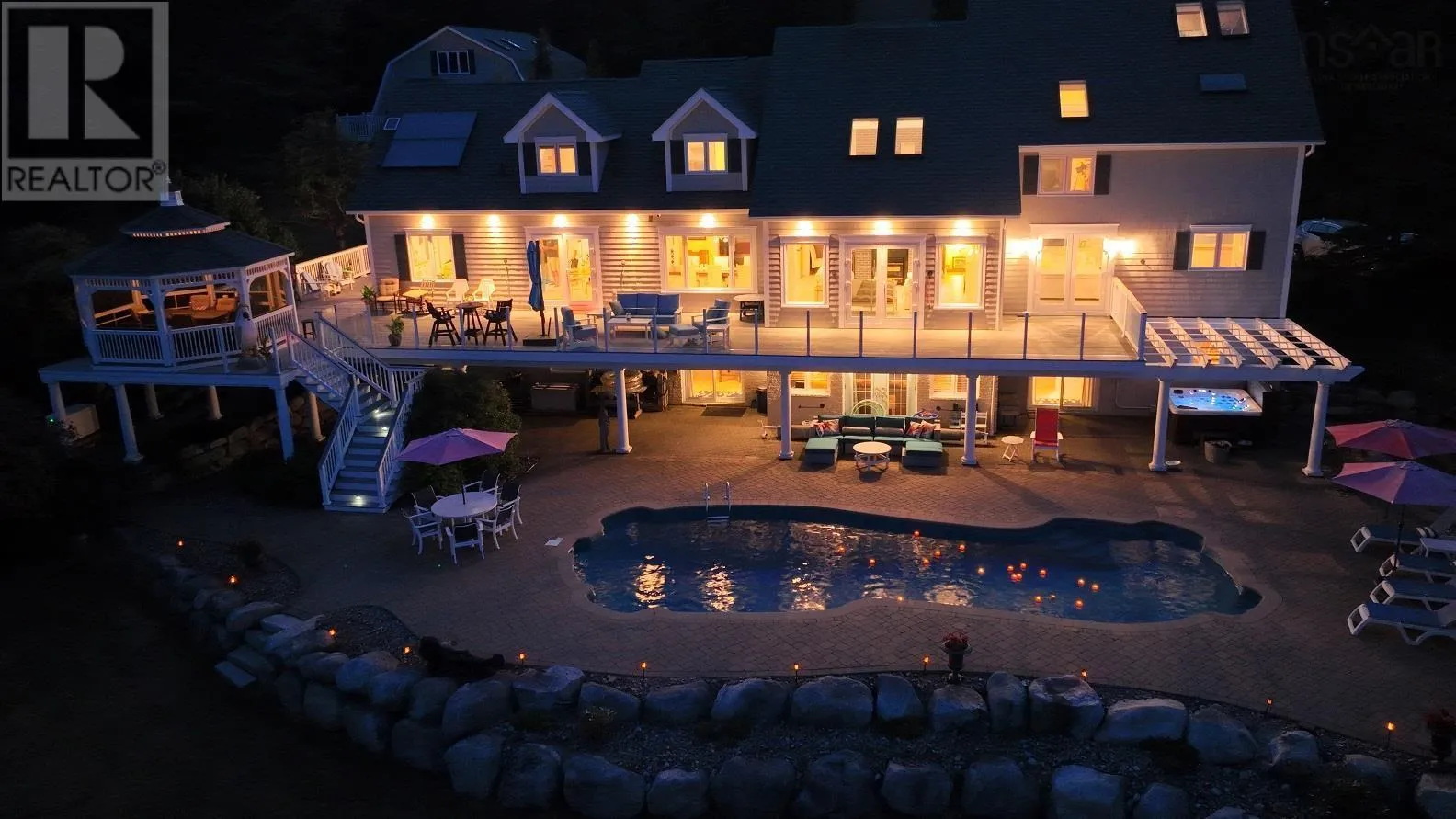 Highway 103 to Exit 9 to Highway 3. Right on Highway 3 to Martins Point. Left on Crandall Road. Right at civic #226 just before causeway to Oak Island. THE BEST SAILING WATERS ON THE EASTERN SEABOARD AND ENJOY COOL SUMMER BREEZES ON NOVA SCOTIAS SOUTH SHORE. Scallop Bay is a home for all seasons. Almost 6 acres of park-like peace and quiet, +1100 feet of direct oceanfront with outstanding ocean views, wharf with three floating docks and 2 moorings, and a welcoming 5 bedroom, 5 1/2 bath Coastal Post and Beam home. There is an in ground salt water generated pool, hot tub, extensive outdoor IPE decking for entertaining and large screened gazebo, detached triple garage, self contained fully serviced 2 bedroom guest quarters, 26 x 36 multi use building and so much more... Ideally located midway between Chester and Mahone Bay. Only an hour from Halifax and Stanfield International Airport and adjacent to the famous Oak Island of the Oak Island TV series. This home is featured in the upcoming A & E Oceanfront Property Hunt. Video and feature brochure available. (id:27476)