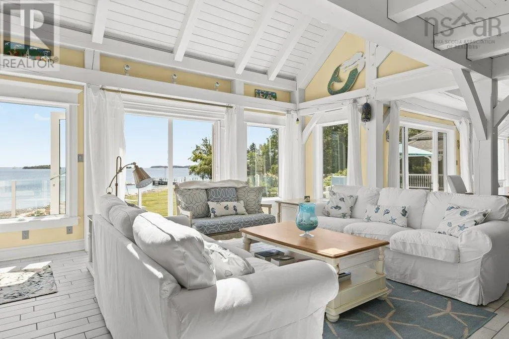Highway 103 to Exit 9 to Highway 3. Right on Highway 3 to Martins Point. Left on Crandall Road. Right at civic #226 just before causeway to Oak Island. THE BEST SAILING WATERS ON THE EASTERN SEABOARD AND ENJOY COOL SUMMER BREEZES ON NOVA SCOTIAS SOUTH SHORE. Scallop Bay is a home for all seasons. Almost 6 acres of park-like peace and quiet, +1100 feet of direct oceanfront with outstanding ocean views, wharf with three floating docks and 2 moorings, and a welcoming 5 bedroom, 5 1/2 bath Coastal Post and Beam home. There is an in ground salt water generated pool, hot tub, extensive outdoor IPE decking for entertaining and large screened gazebo, detached triple garage, self contained fully serviced 2 bedroom guest quarters, 26 x 36 multi use building and so much more... Ideally located midway between Chester and Mahone Bay. Only an hour from Halifax and Stanfield International Airport and adjacent to the famous Oak Island of the Oak Island TV series. This home is featured in the upcoming A & E Oceanfront Property Hunt. Video and feature brochure available. (id:27476)