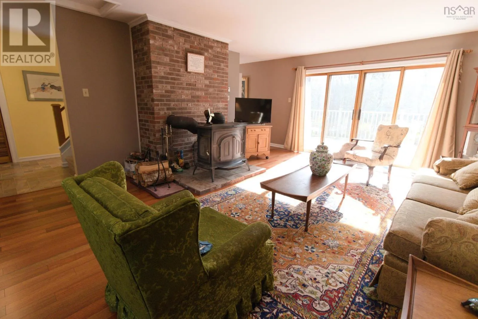 From Greenwood turn left onto Maple Ave, at end turn left onto Willow, look for sign. Located in the peaceful Jefferson Pines subdivision, just 10 minutes from Greenwood and CFB Greenwood, this beautiful property offers a perfect blend of privacy, natural beauty, and spacious living. Set at the back of a long private driveway, this home provides a true sense of seclusion with the Black River meandering along the property boundary and through the backyard. The main level is ideal for entertaining, featuring a large living room with walkout to the deck, a second bedroom, a dining room, and an eat-in kitchen with patio doors also leading to the deck. The upper level is dedicated entirely to the primary suite, complete with a Juliet balcony overlooking the yard and river, and a private ensuite bath. The lower level adds exceptional living space with two additional bedrooms, an office, a rec room, and laundry area, along with two more sets of patio doors that open to a covered patio. An attached two-car garage completes this impressive home. This home offers a rare opportunity to enjoy riverfront living in a serene and sought-after location close to all amenities. (id:27476)