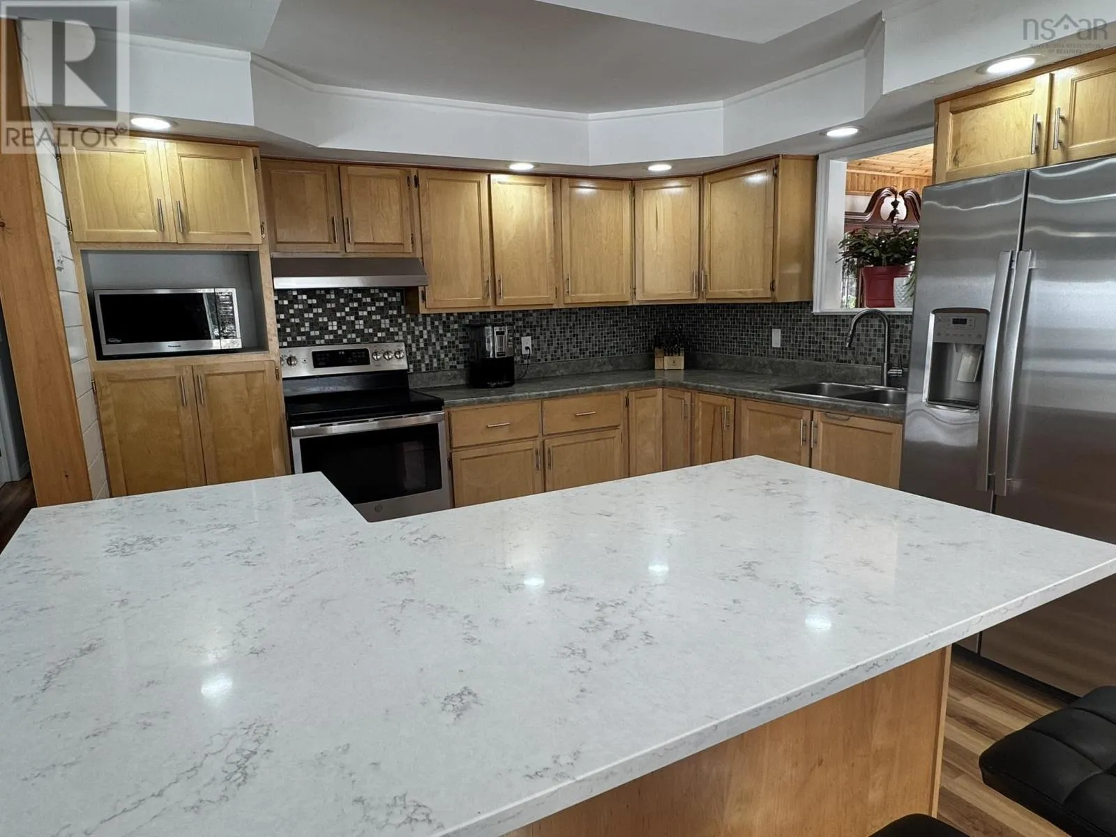 Travel West on Highway 201 leaving Greenwood. Turn left on Maple Avenue. Turn left onto Birch Drive to civic on right side. Welcome to this nicely updated split-entry home near the community of Greenwood, offering over 3,000 sq ft of comfortable living space for a growing family. Situated on almost an acre, the property provides plenty of space and privacy, giving you room to enjoy both indoor and outdoor living. The bright main level features an open concept kitchen, living room, and dining area that makes everyday living and family gatherings easy. Its a welcoming space where family meals, celebrations, and quiet evenings at home can all be enjoyed. Just off the dining space is a sun porch that leads to a patio and decking area, creating a natural extension of the living space and a great place to relax, entertain, or enjoy warm summer evenings. Upstairs youll find three bedrooms, including a spacious primary bedroom with its own private deck, walk-in closet, and a new window and door that bring in plenty of natural light. The primary also features an updated 6-piece ensuite with convenient laundry, and this level also includes an additional 4-piece bathroom for family or guests. The lower level offers plenty of additional space with a large rec room, perfect for movie nights, a play area, or a cozy place for the family to gather. This level also includes a fourth bedroom and a utility/storage area with walkout access to the built-in double garage. Recent updates and features include ductless heat pumps on both levels, new flooring in the living room and kitchen, and additional blown-in attic insulation. The property also includes a water filtration and UV light system for added peace of mind. Outside, the backyard has been improved with expanded space, landscaping, fencing, and a fire pit area, along with a pergola groud patio and fenced vegetable garden making this a great space to enjoy time outdoors. This home is conveniently located close to shopping, restaurants, hardware stores, and other everyday amenities. (id:27476)