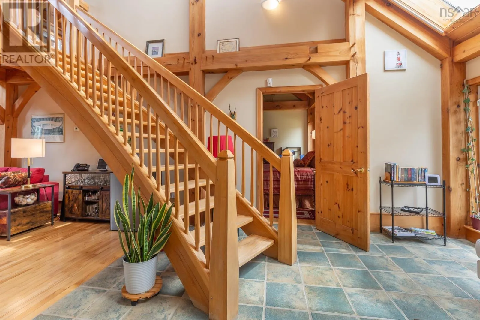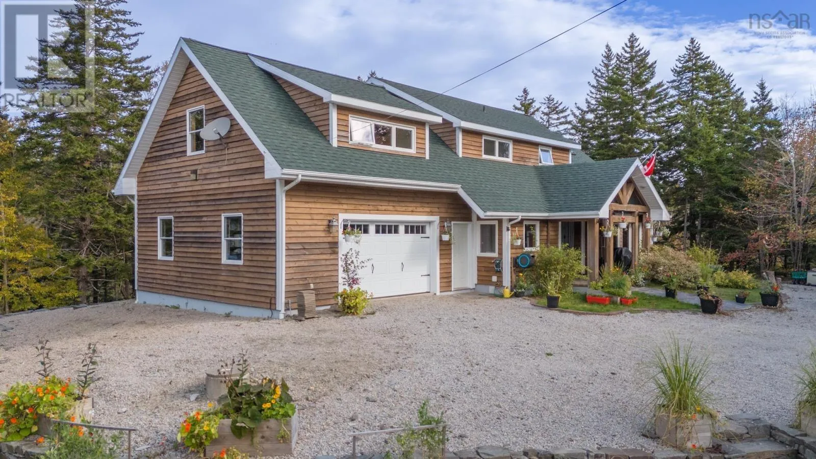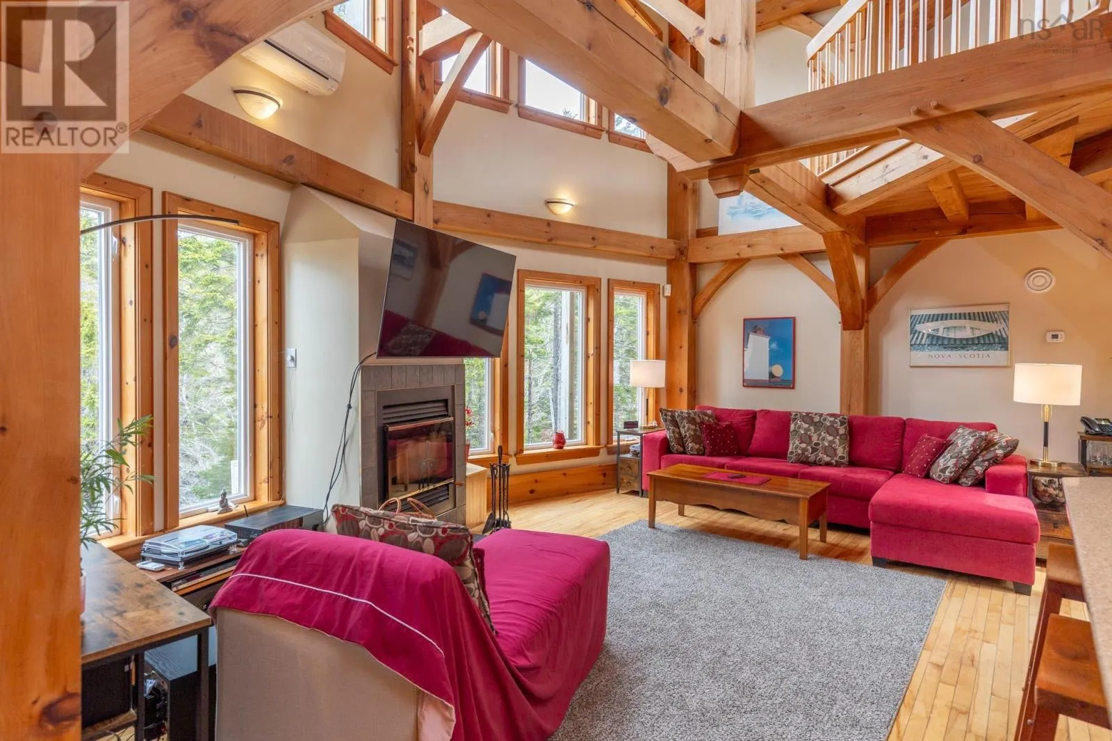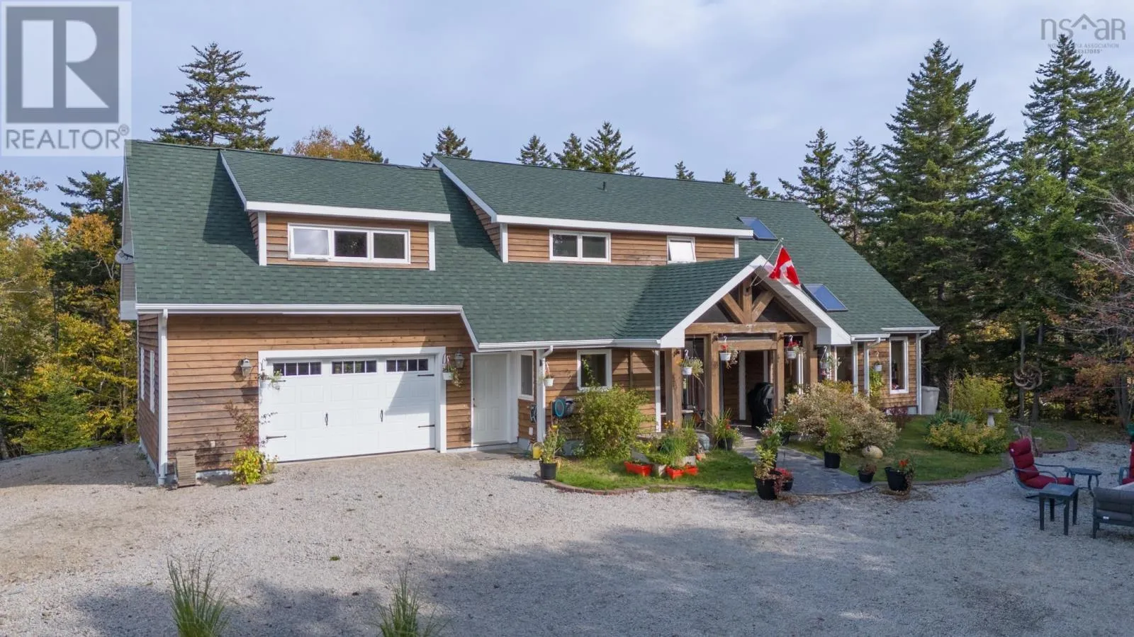 Route 1 to Meteghan River, turn on Placide Comeau Road. follow until just before 101 overpass. Turn Right on Marc Comeau Road-Civic # 471 Escape to tranquility in this meticulously crafted timber frame home, perfectly situated on a breathtaking 3.59-acre lot overlooking the serene Meteghan River. Surrounded by towering, mature trees and tastefully landscaped with beautifully crafted rock walls, this property offers a unique opportunity to immerse yourself in the sights and sounds of pure nature. Inside, discover oversized exposed beams and expansive windows that frame the stunning river views from every angle. The great room, bathed in natural light, is an entertainer's dream, boasting a cozy wood-burning fireplace and an updated, chef-inspired kitchen with a gas cooktop, upgraded wall oven, and refrigerator. The main floor also features a luxurious primary bedroom suite complete with an ensuite bath, walk-in closet, and a private garden door walkout. Ascend the curved hardwood staircase to the second floor, where three bedrooms await, along with a full bath. One bedroom offers a private balcony and sink, ideal for an art studio or a productive work-from-home space. Above the two-car garage, a spacious bonus/games room provides additional flexibility. Storage is abundant, with ample space in the garage, a cold storage room in the basement, and even more available throughout the home. Enjoy exceptional energy efficiency with a geothermal heat pump providing in-floor radiant heat, and two ductless heat pumps offering both heating and cooling, complemented by the warmth of a wood-burning fireplace. Green thumbs will appreciate the two established greenhouses, perfect for extending your growing season. This is more than a home; it's a lifestyle. Don't miss your chance to own this exceptional property, it truly checks all the boxes! (id:27476)