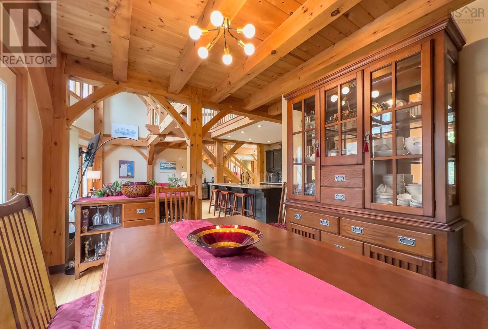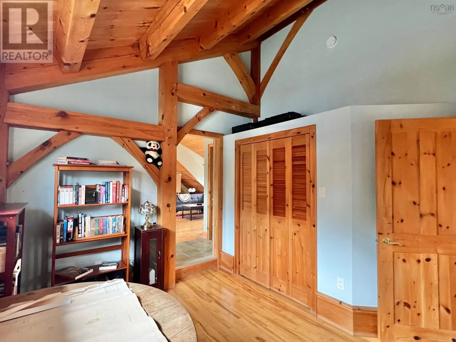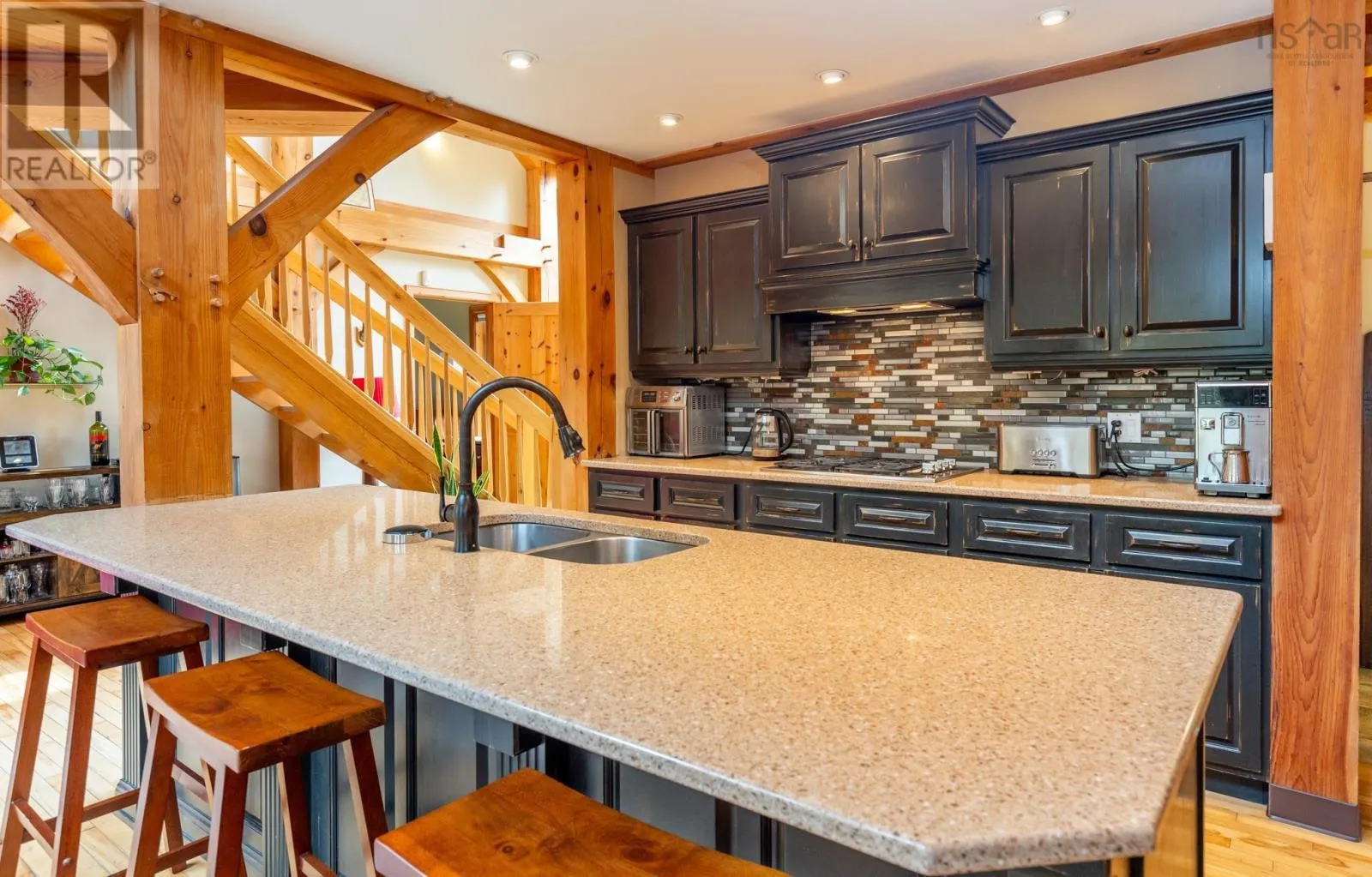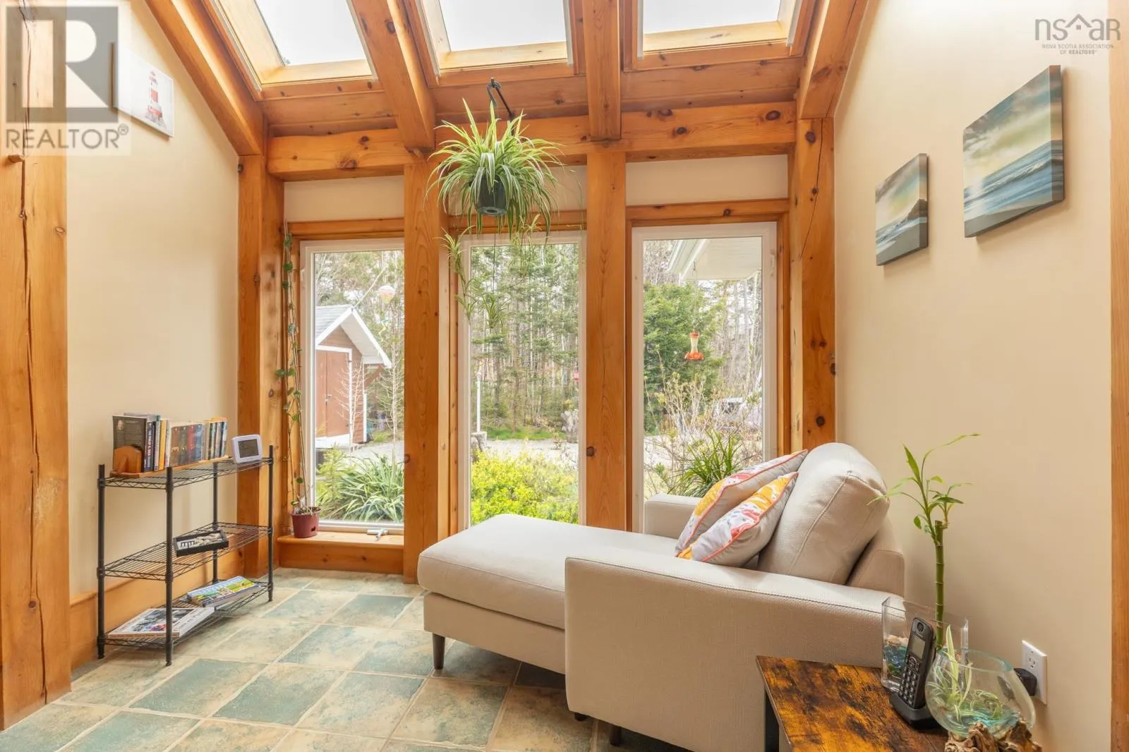 Route 1 to Meteghan River, turn on Placide Comeau Road. follow until just before 101 overpass. Turn Right on Marc Comeau Road-Civic # 471 Escape to tranquility in this meticulously crafted timber frame home, perfectly situated on a breathtaking 3.59-acre lot overlooking the serene Meteghan River. Surrounded by towering, mature trees and tastefully landscaped with beautifully crafted rock walls, this property offers a unique opportunity to immerse yourself in the sights and sounds of pure nature. Inside, discover oversized exposed beams and expansive windows that frame the stunning river views from every angle. The great room, bathed in natural light, is an entertainer's dream, boasting a cozy wood-burning fireplace and an updated, chef-inspired kitchen with a gas cooktop, upgraded wall oven, and refrigerator. The main floor also features a luxurious primary bedroom suite complete with an ensuite bath, walk-in closet, and a private garden door walkout. Ascend the curved hardwood staircase to the second floor, where three bedrooms await, along with a full bath. One bedroom offers a private balcony and sink, ideal for an art studio or a productive work-from-home space. Above the two-car garage, a spacious bonus/games room provides additional flexibility. Storage is abundant, with ample space in the garage, a cold storage room in the basement, and even more available throughout the home. Enjoy exceptional energy efficiency with a geothermal heat pump providing in-floor radiant heat, and two ductless heat pumps offering both heating and cooling, complemented by the warmth of a wood-burning fireplace. Green thumbs will appreciate the two established greenhouses, perfect for extending your growing season. This is more than a home; it's a lifestyle. Don't miss your chance to own this exceptional property, it truly checks all the boxes! (id:27476)