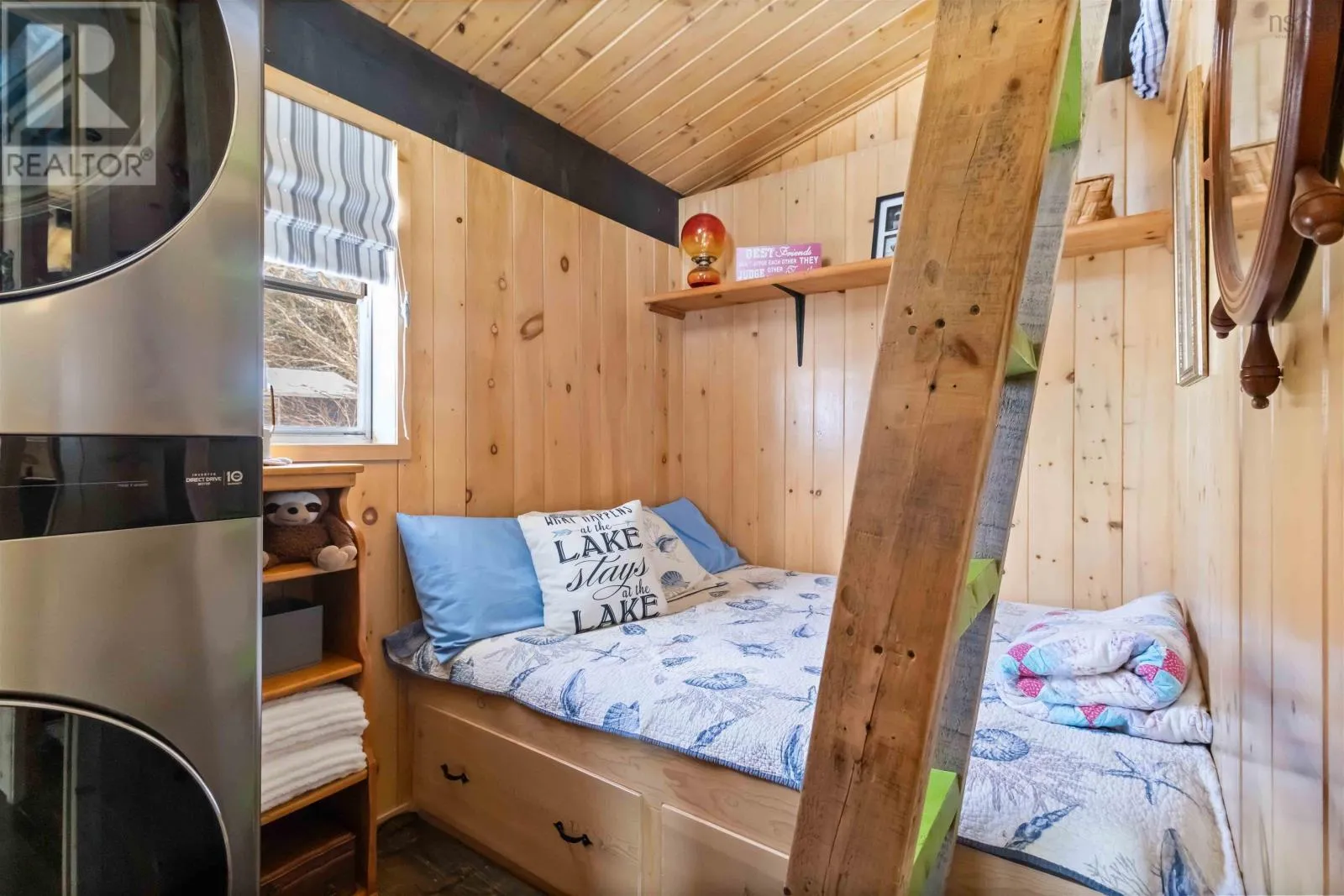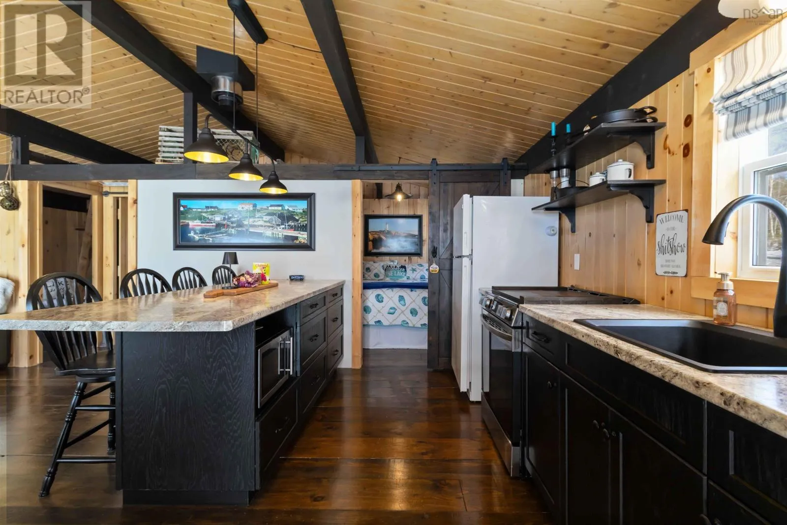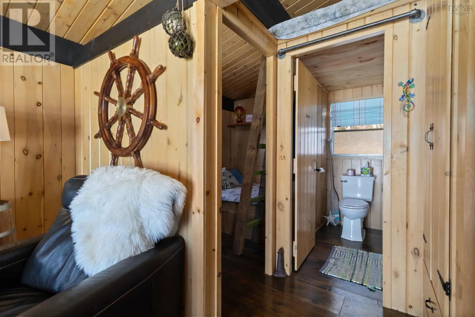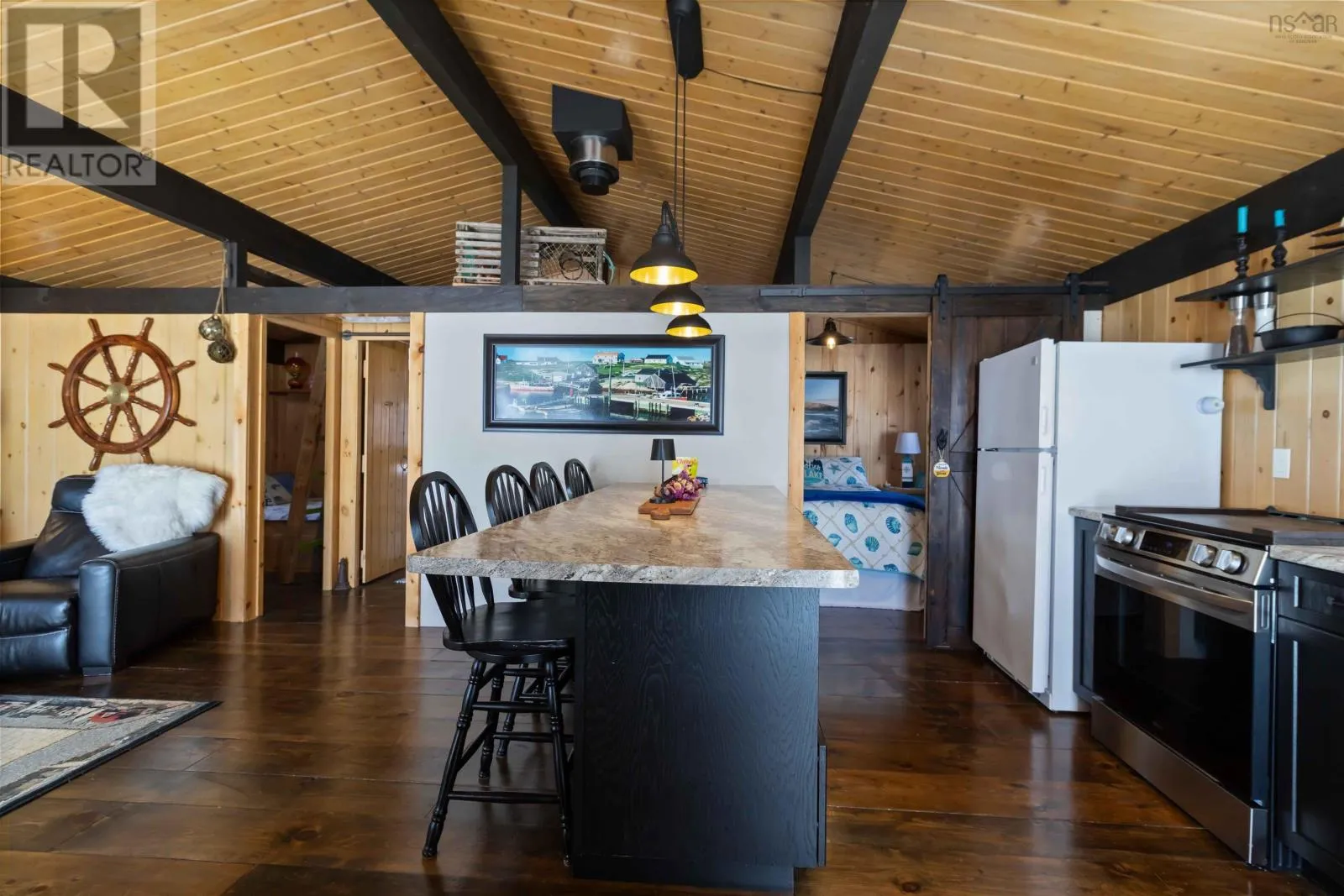 Exit 11 from Hwy 103 to Cornwall Road, to Canoe Island Rd to Dauphinee. This charming two bedroom cottage rests along the shores of one of Nova Scotias most sought after South Shore lakes; Big Mushamush, offering an exceptional blend of privacy, natural beauty, and future potential. Set on a beautifully landscaped 17,424 square foot property with over 118 feet of pristine waterfront, the property features a beach and crystal clear waters. perfect for swimming, boating, and soaking in unforgettable sunset views. Inside, 121 Dauphinee Rd. welcomes you with a bright, open-concept living space. Expansive windows frame stunning lake vistas, while the dining area flows seamlessly into a thoughtfully designed kitchen with ample cabinetry. Two inviting bedrooms, one with built-in bed providing comfort and efficiency, and the warm pine finishes paired with elevated ceilings create an airy yet rustic atmosphere. Step outside to a generous deck, perfect for entertaining, enjoying quiet mornings, or simply taking in the peaceful surroundings. A dock provides easy access to the lake, making it ideal for swimming, playing on lake toys, or fishing. This is lakeside living at its finest; peaceful, private, and full of possibility. (id:27476)