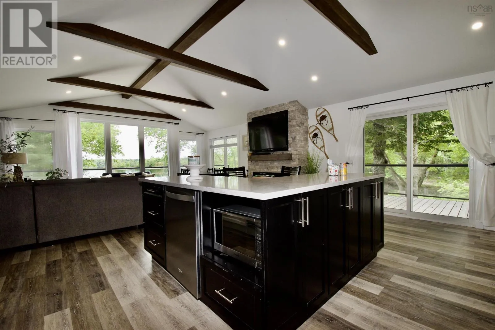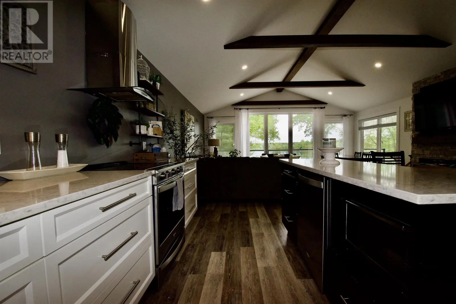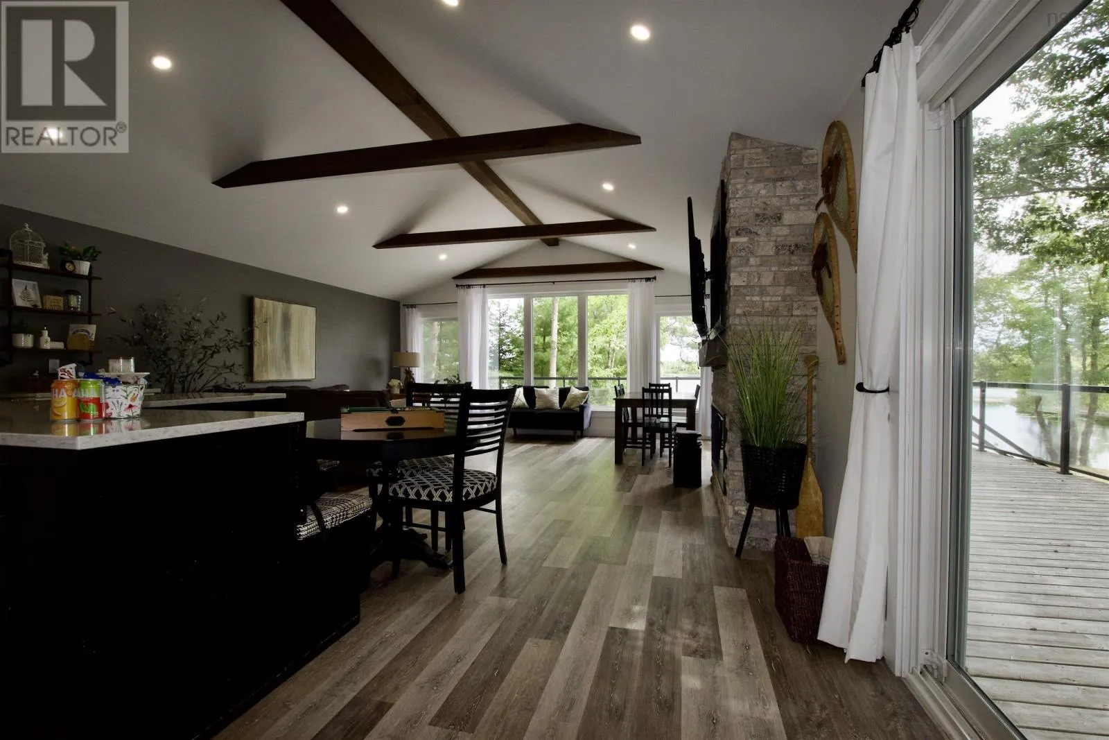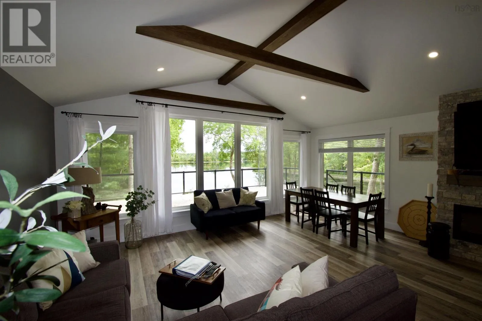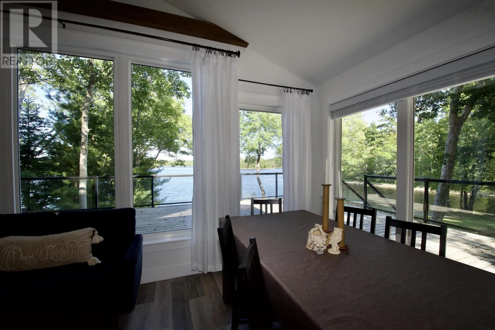 Head south on Hwy 103 -Right onto Ohio Rd -203 west, continue for 14 km turn right 2760 Highway 203 Lakefront Retreat + Proven Income Opportunity! Watch the walkthrough tour now available on YouTube ~ This lakefront gem offers the best of both worlds: a comfortable year-round retreat and a successful short-term rental with Superhost status. With a strong record of consistent bookings and glowing guest reviews, its a rare chance to own both lifestyle and income. Inside, soaring vaulted ceilings with wood beams frame the open-concept kitchen and living area, anchored with a floor-to-ceiling stone fireplace. The kitchen features quartz counters, stainless appliances, ample cabinetry, and a cozy breakfast nookperfect for hosting family or welcoming guests. Two spacious bedrooms and a spa-like bath with double sinks and a walk-in tiled shower complete the main level. The lower level offers flexibility with a bonus space, half bath, and room for storage or a workshop. A wired garage adds convenience for year-round living or secure storage for outdoor gear and water toys. Step outside to 225 feet of pristine shoreline, where a sheltered cove invites safe swimming, kayaking, and paddleboarding. Entertain with ease on the wraparound deck, or unwind on the lakeside sundeck with endless water views. Explore Lake Deception's 17 islands and peaceful landscape right from your own backyard. Whether you seek a private waterfront getaway or a turnkey investment property, this home delivers. Just 12 minutes from Shelburne, it combines convenience with a true escape. Homes like this rarely come availablebook your private showing today and experience the lakefront lifestyle firsthand. (id:27476)