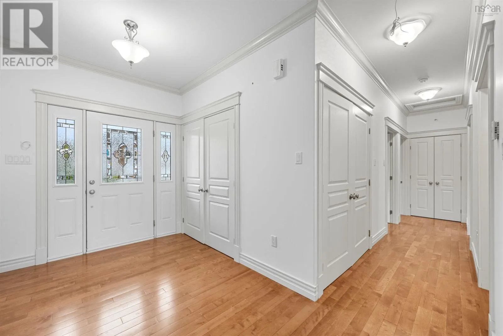 Old Sackville Road to Claudia Crescent Nestled in a quiet desirable family-friendly neighbourhood, this well-maintained three-bedroom bungalow offers the ease of one-level living with plenty of thoughtful features throughout. Step inside to find 9' ceilings on main level and an oversized front window that overflows the main living area with natural light. French doors that separate the great room and kitchen are perfect for entertaining family and friends, while the convenience of main floor laundry adds to the homes functionality. Kitchen with plenty of cabinetry, pantry cupboard, under cabinet lighting and pot drawers. The primary bedroom features its own door to rear deck and private ensuite with walk-in tub, and two additional bedrooms complete the main level. Hardwood floors flow throughout the main level, with durable ceramic tile in all bathrooms. The lower level offers even more living space, including a theatre room, an oversized rec room, utility room, ample storage, and a large full 3-piece acrylic shower insert ideal for overnight guests. You can also consider making this oversized space complete for your live in Nanny. Located just minutes from the Highway 101 access and all of Sackvilles amenities, this home is a perfect blend of convenience, comfort, and thoughtful design with a ramp and stairs to the covered front porch. The view from the 20 X 10 deck is also impressive. Additional highlights - wired for alarm, 9x7 Lifestyle shed, 12 cathedral ceiling in family room with pot lights, oversized front bedroom windows, wheelchair accessible, triple wide asphalt driveway to host many hopscotch games, and the kids bikes, low maintenance established landscaping, functional custom closets. With wonderful neighbours- you can begin home ownership today here in Middle Sackville! (id:27476)