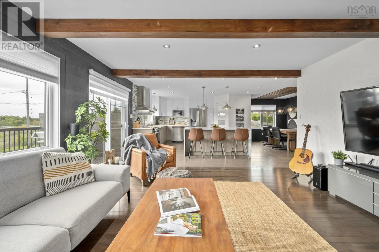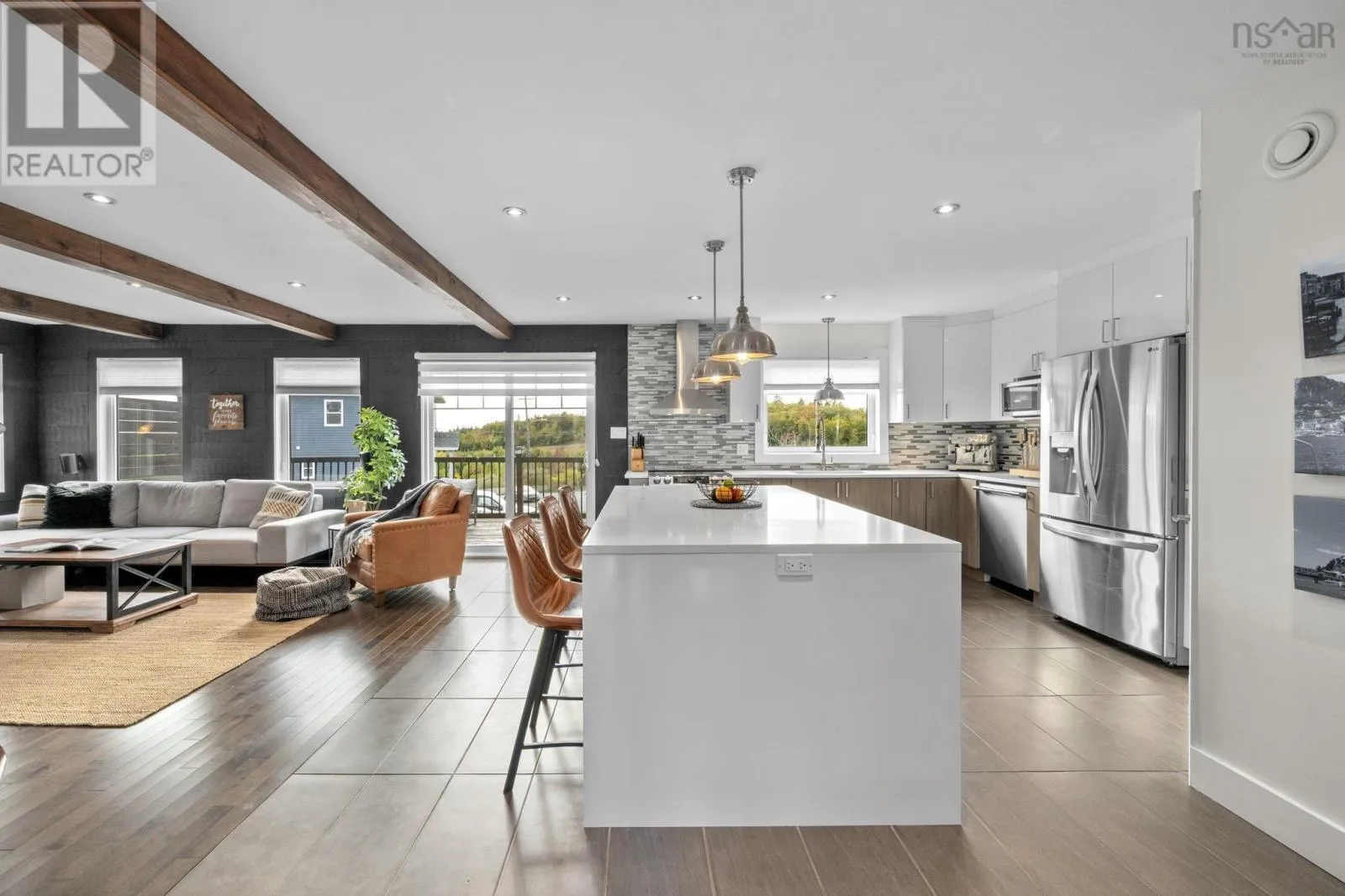 Sackville Drive, to Margeson Drive, to Swindon Drive, to Barnsley Drive Welcome to 5 Barnsley Court, a custom-built home with potential for in-law suite on a private corner lot in the sought-after Sunset Ridge subdivision. Built in 2016, this residence features 3,734 sq ft of living space. This home blends modern design with timeless character; Curb appeal shines with a stamped concrete driveway, stone-accented façade, and a wraparound covered porch perfect for slowing down and enjoying the outdoors. Inside, thoughtful details abound: a welcoming mudroom, main-floor office, and open-concept living anchored by a striking "brick" feature wall and rustic beams. The chefs kitchen is a true centrepiece, showcasing quartz countertops, two-toned ceiling-height cabinetry, built-in lighting, and a walk-in pantry. An oversized island encourages gatherings, while the seamless flow to the deck makes entertaining effortless. Upstairs, four spacious bedrooms keep the family together. The primary suite offers a double-door entry, barnwood feature wall, and a five-piece ensuite with soaker tub, walk-in shower, and makeup vanity. Two oversized linen closets provide practical storage, complemented by hardwood floors and modern finishes. The lower level expands the homes versatility with a full secondary kitchen, large bath with a concrete shower, walk-out access, and flexible spaces ready for an in-law suite, income potential, or recreation. A loft within the attached 1.5 car garage adds even more possibilities. Balancing sophistication with comfort, this home features municipal services, ducted heat pump, and abundant storage. The fenced, level backyard provides a safe haven for children and pets, while the neighborhood itself is known for its close-knit community spirit. Ideally located just 15 minutes from Bayers Lake and 20 minutes to downtown Halifax, 5 Barnsley Court is more than a home, its a lifestyle defined by space, connection, and thoughtful design. (id:27476)