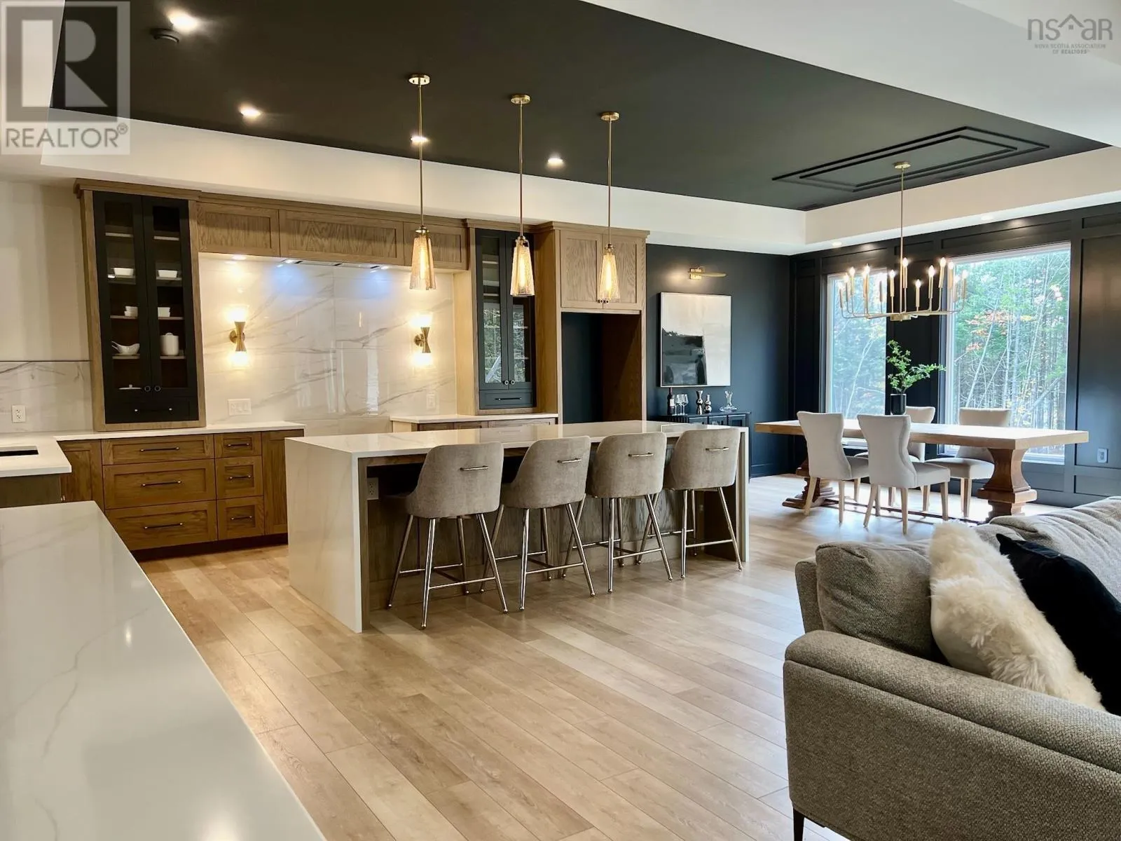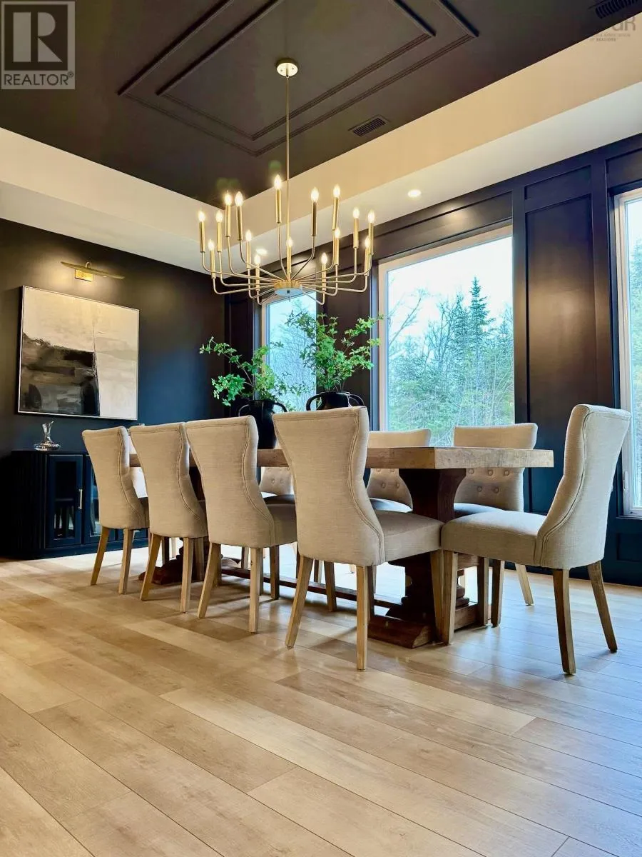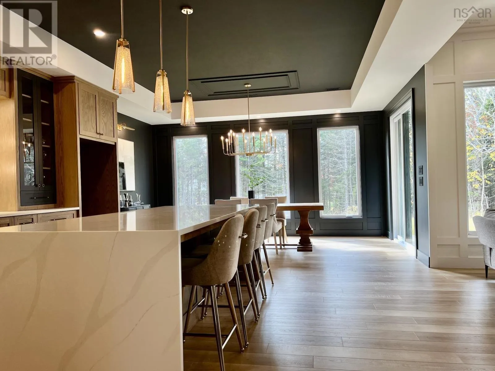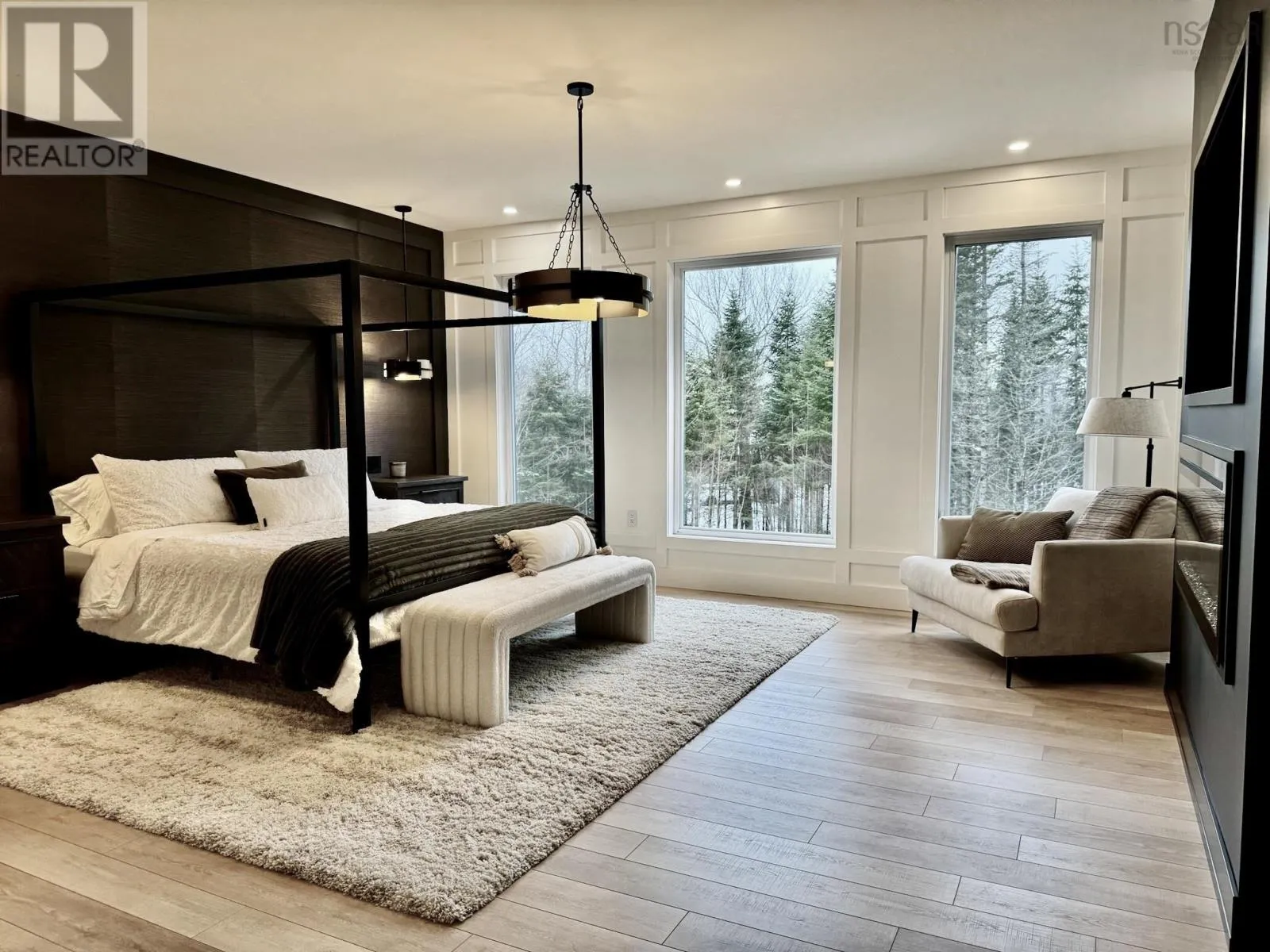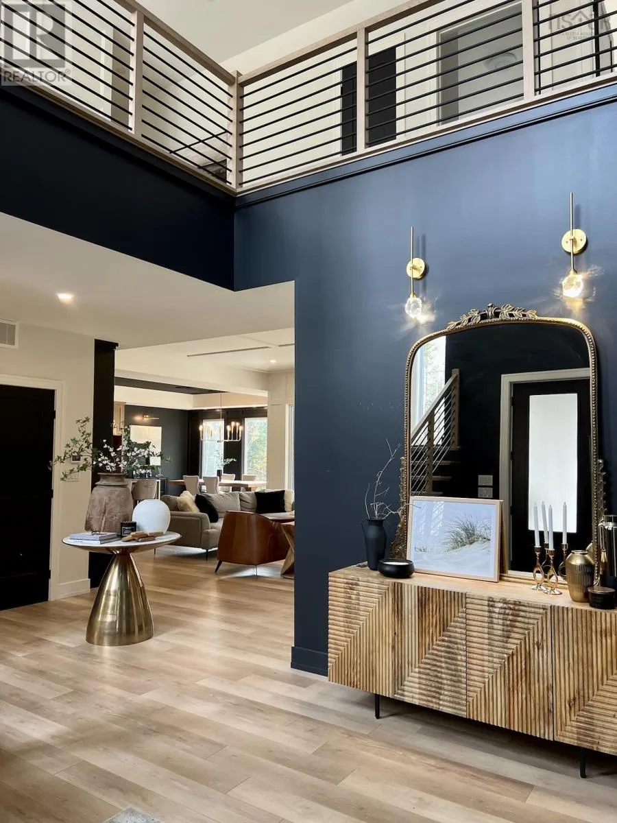 Margeson Dr to Magenta Dr, left on Nightshade Lane Spectacular Custom Home in Indigo Shores! This stunning custom build by ReDesigns Construction showcases exceptional craftsmanship and attention to detail throughout. The grand entry foyer with soaring ceiling, striking wall of windows, and custom staircase with exquisite millwork creates an unforgettable first impression. Enjoy open-concept living at its finest in the chefs dream kitchen featuring solid wood cabinetry, a waterfall-edge stone island, sleek range wall, generous storage, and a custom bar area. The adjoining dining area opens to a covered patio, while the bright living room features a custom wood accent wall and a wall of windows. The spacious Great Room offers a propane fireplace, wet bar, and flexible space for a games and media area. A private office/den, large mudroom with built-ins, walk-in pantry, powder room, and additional storage complete the main level. Upstairs, the luxurious primary suite boasts a custom fireplace, feature wall, walk-in closet, and spa-like ensuite. A secondary suite with full bath plus two additional bedrooms with a shared Jack & Jill bath offer ideal family comfort. The laundry room includes a sink, folding area, and ample storage. An oversized two-bay garage with glass doors, epoxy floor, and plenty of storage space adds function and style. Additional highlights include dual ducted heat pumps, 10 ceilings on the main level, 9 ceilings upstairs, high-efficiency SolarSeal windows, impressive 8 double entry doors, premium exterior finishes, and a 10-Year Atlantic New Home Warranty. Set on a private, tree-lined lot in the sought-after Indigo Shores community, this home offers a perfect blend of luxury, comfort, and convenience just minutes to downtown, the airport, schools, and shopping. Move-in ready and waiting to impress! (id:27476)