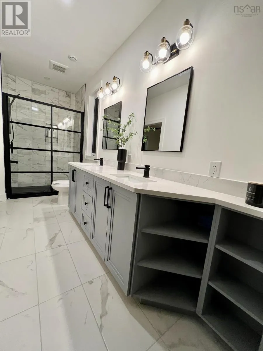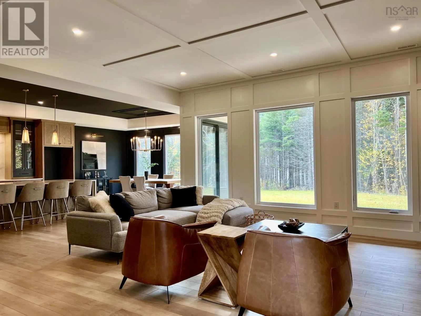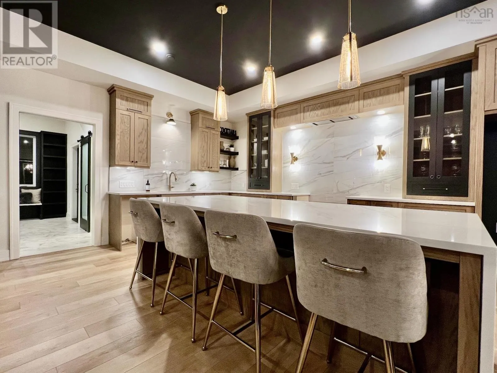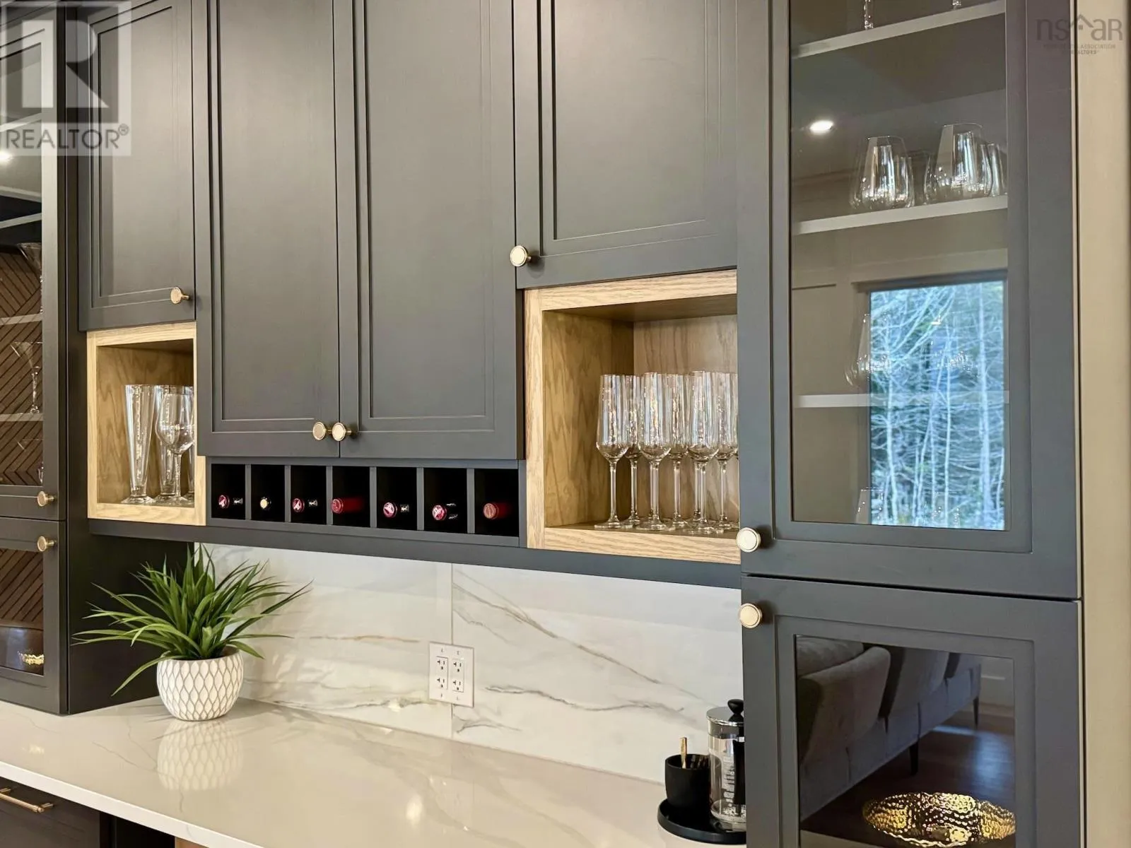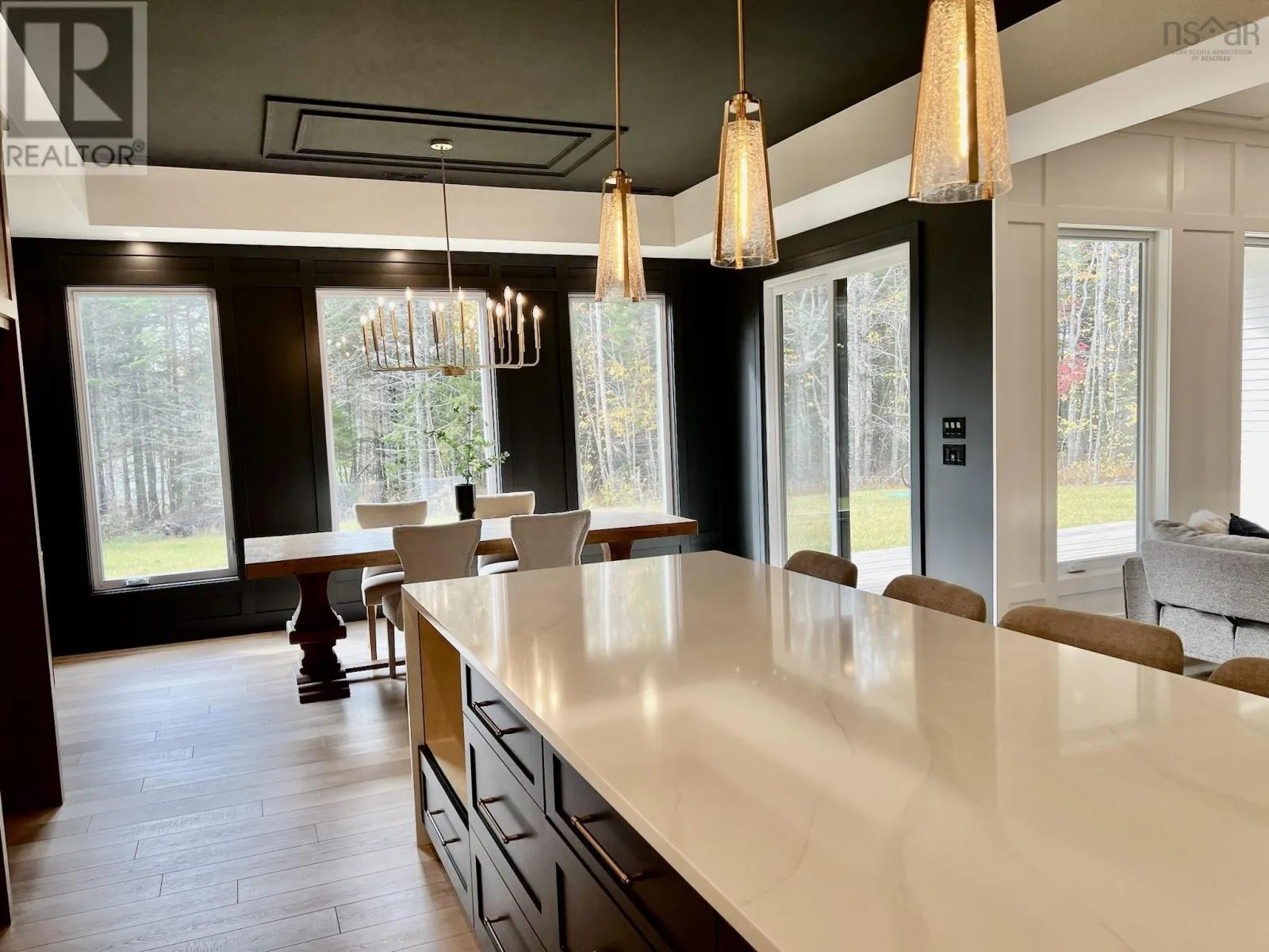 Margeson Dr to Magenta Dr, left on Nightshade Lane Spectacular Custom Home in Indigo Shores! This stunning custom build by ReDesigns Construction showcases exceptional craftsmanship and attention to detail throughout. The grand entry foyer with soaring ceiling, striking wall of windows, and custom staircase with exquisite millwork creates an unforgettable first impression. Enjoy open-concept living at its finest in the chefs dream kitchen featuring solid wood cabinetry, a waterfall-edge stone island, sleek range wall, generous storage, and a custom bar area. The adjoining dining area opens to a covered patio, while the bright living room features a custom wood accent wall and a wall of windows. The spacious Great Room offers a propane fireplace, wet bar, and flexible space for a games and media area. A private office/den, large mudroom with built-ins, walk-in pantry, powder room, and additional storage complete the main level. Upstairs, the luxurious primary suite boasts a custom fireplace, feature wall, walk-in closet, and spa-like ensuite. A secondary suite with full bath plus two additional bedrooms with a shared Jack & Jill bath offer ideal family comfort. The laundry room includes a sink, folding area, and ample storage. An oversized two-bay garage with glass doors, epoxy floor, and plenty of storage space adds function and style. Additional highlights include dual ducted heat pumps, 10 ceilings on the main level, 9 ceilings upstairs, high-efficiency SolarSeal windows, impressive 8 double entry doors, premium exterior finishes, and a 10-Year Atlantic New Home Warranty. Set on a private, tree-lined lot in the sought-after Indigo Shores community, this home offers a perfect blend of luxury, comfort, and convenience just minutes to downtown, the airport, schools, and shopping. Move-in ready and waiting to impress! (id:27476)