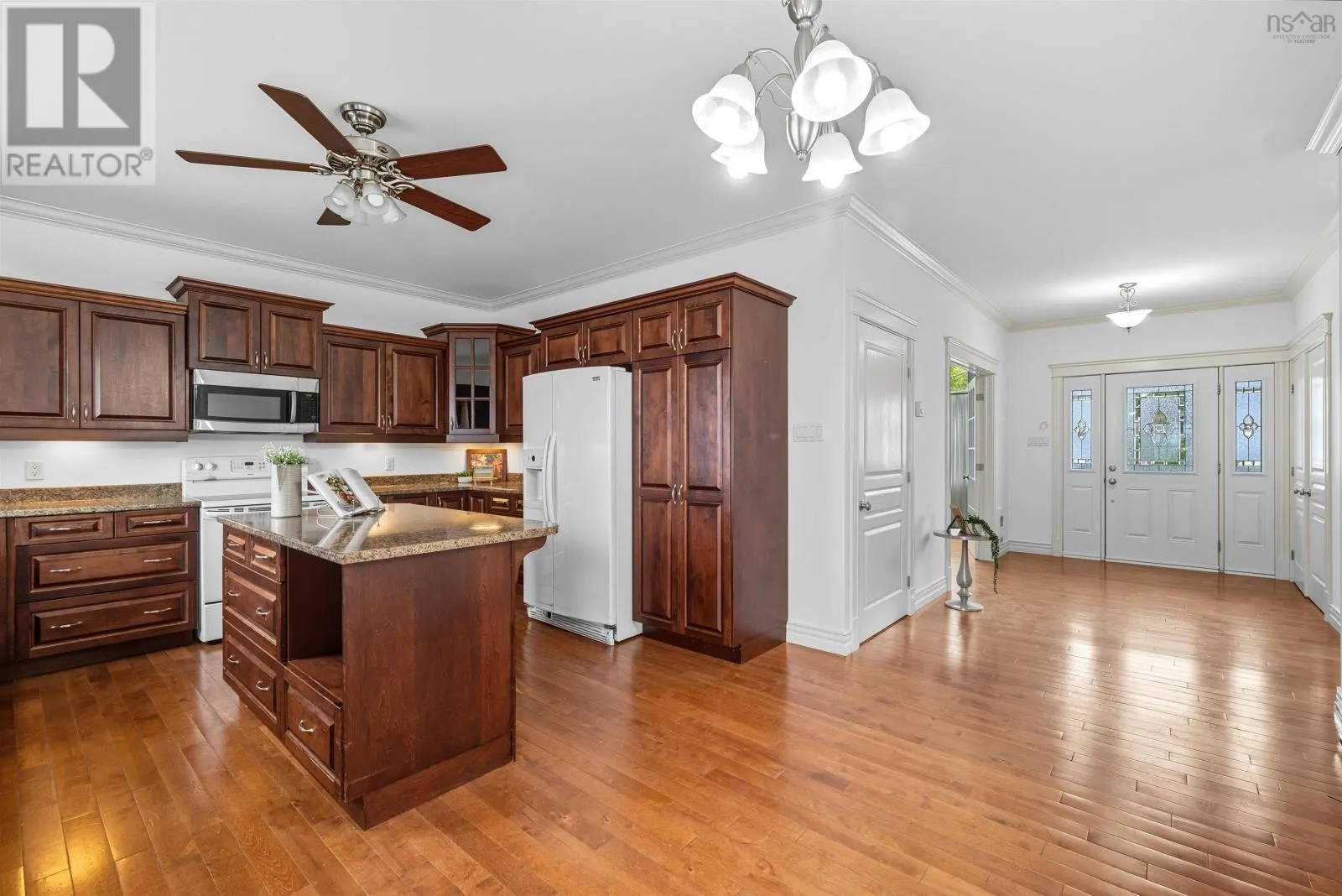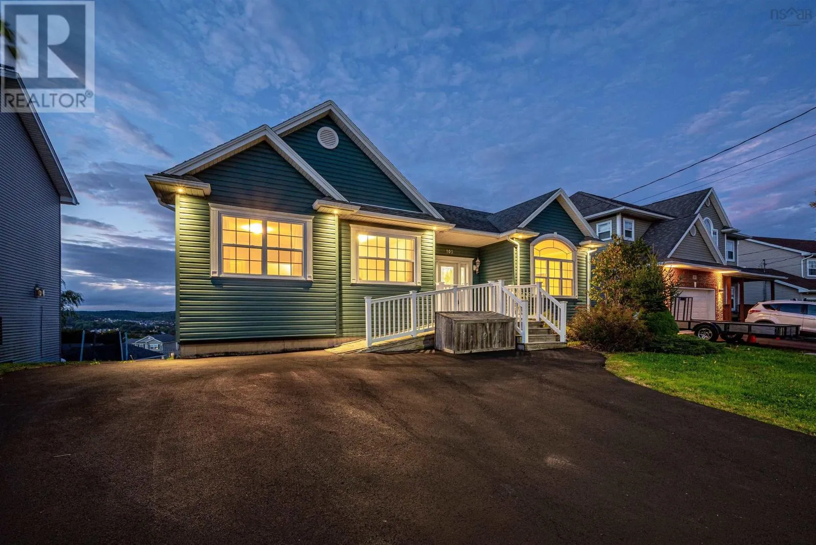 Old Sackville Road to Claudia Crescent Nestled in a quiet desirable family-friendly neighbourhood, this well-maintained three-bedroom bungalow offers the ease of one-level living with plenty of thoughtful features throughout. Step inside to find 9' ceilings on main level and an oversized front window that overflows the main living area with natural light. French doors that separate the great room and kitchen are perfect for entertaining family and friends, while the convenience of main floor laundry adds to the homes functionality. Kitchen with plenty of cabinetry, pantry cupboard, under cabinet lighting and pot drawers. The primary bedroom features its own door to rear deck and private ensuite with walk-in tub, and two additional bedrooms complete the main level. Hardwood floors flow throughout the main level, with durable ceramic tile in all bathrooms. The lower level offers even more living space, including a theatre room, an oversized rec room, utility room, ample storage, and a large full 3-piece acrylic shower insert ideal for overnight guests. You can also consider making this oversized space complete for your live in Nanny. Located just minutes from the Highway 101 access and all of Sackvilles amenities, this home is a perfect blend of convenience, comfort, and thoughtful design with a ramp and stairs to the covered front porch. The view from the 20 X 10 deck is also impressive. Additional highlights - wired for alarm, 9x7 Lifestyle shed, 12 cathedral ceiling in family room with pot lights, oversized front bedroom windows, wheelchair accessible, triple wide asphalt driveway to host many hopscotch games, and the kids bikes, low maintenance established landscaping, functional custom closets. With wonderful neighbours- you can begin home ownership today here in Middle Sackville! (id:27476)