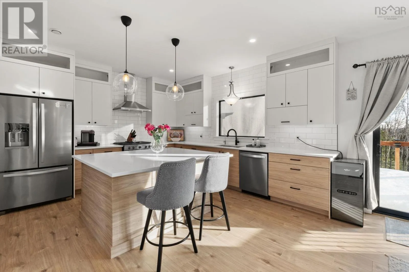 Exit 2A to Margeson Drive, right on Magenta Drive. Property on left. Mesmerized by Magenta" Imagine waking up in a place where your morning walk takes you along sparkling lakes, where weekends are for kayaking at McCabe Lake, and evenings end with sunsets over your own private, tree-lined yard. Welcome to Indigo Shores a community where nature is your playground, and your home is a retreat youll never want to leave. This seven-year-young stunner offers over 3,500 sq. ft. of thoughtfully designed living space on a 1.45-acre landscaped lot. From the moment you step inside, youll feel the blend of comfort and sophistication: soaring 9 ceilings with warm wood beams, a cozy propane fireplace, striking custom accent walls, and massive black-framed windows that frame the beauty outside. At the heart of it all is the chefs kitchen a true showpiece with a quartz 5x5 island, gas range, walk-in pantry, and a butlers pantry ready for your coffee bar or evening wine service. The main level also brings you a stylish home office, a spacious mudroom, and even a built-in dog wash station in the double garage because luxury should be practical, too. Upstairs, three generous bedrooms await, including a dreamy primary suite with a walk-in closet and spa-like ensuite. The laundry room is elevated with custom storage, making everyday tasks feel effortless. The lower level offers a complete walkout in-law suite with two bedrooms, a full kitchen, its own laundry, and a separate entrance ideal for extended family or an income opportunity. Outside, an oversized back deck overlooks your lush backyard, perfect for summer BBQs, morning coffee, or simply soaking in the peace and privacy. Add in a paved driveway, ducted heat pump, and quick access to McCabe Lake, Hwy 101, and Bedford Commons, and youve found the best of both worlds a quiet escape thats still minutes from everything you need. This is more than a home. Its a lifestyle. And its waiting for you in Indigo Shores. (id:27476)
