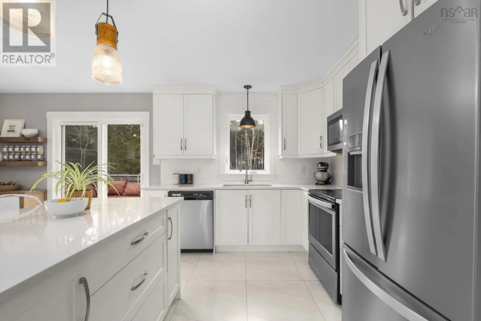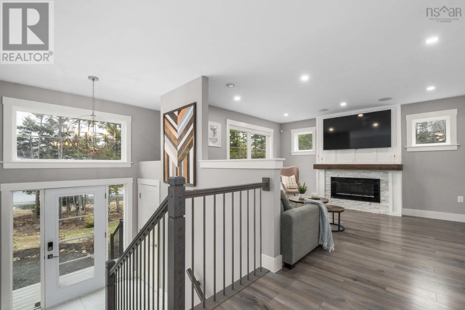 NS-101 to Middle Sackville, take Exit 2A for Margeson Drive, turn right onto Midnight Run. Welcome to 721 Midnight Run in the sought-after community of Indigo Shores where privacy, space, and elevated living come together on a beautifully landscaped 1.7-acre lot. Surrounded by mature trees and set on a rare, flat property with a massive landscaped yard, this home offers the perfect blend of tranquility and functionality ideal for families, entertaining, or simply enjoying the outdoors. Step inside to a bright and welcoming split-entry design featuring a spacious foyer, complete with a custom-built locker and bench area, thoughtfully designed for everyday living and organization. Upstairs, the open-concept main level is anchored by a stunning floor-to-ceiling fireplace in the living room, creating a warm and inviting focal point. The kitchen is equally impressive, showcasing quartz countertops, ceiling-height cabinetry, and a large island perfect for hosting or gathering with family and friends. A built-in sound system adds an extra layer of comfort and entertainment to the space. The primary suite is a true retreat, featuring a walk-in closet and a beautifully appointed ensuite with double sinks, a glass tile shower, and a second fireplace bringing both luxury and relaxation into your private space. The lower level continues to impress with a spacious second living area, complete with custom-built-in cabinetry and shelving. Youll also find a fourth bedroom, a stylish custom laundry room, and a third full bathroom offering flexibility for guests or growing families. A second custom locker and bench area off the garage entrance adds even more practical convenience. Completing the home is a double-car garage and a property that truly stands out offering space, privacy, and a lifestyle thats hard to find. This is Indigo Shores living at its best. (id:27476)