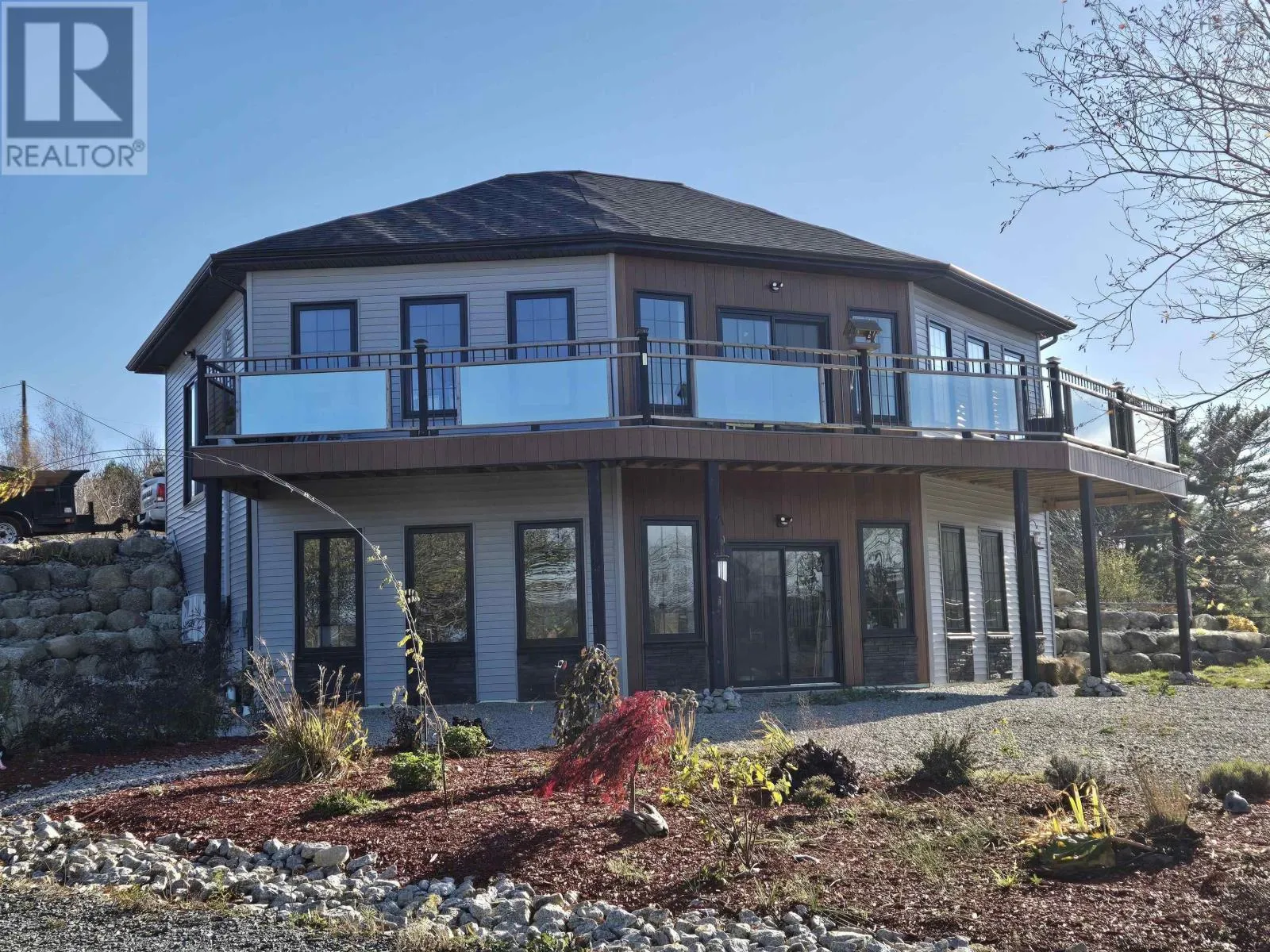 Hwy 103 to Exit 12A to St. Phillips Street to Midville Branch to civic 1718 on right. Magical hilltop views with this 2600 sq ft home located minutes from the town of Bridgewater. This stunning two-bedroom 2 level open concept home has a chef ready kitchen with a gas range & plenty of cupboards with a walk in pantry, it has the perfect blend of comfort, style, and breathtaking views. The spacious primary bedroom features a walk-in closet and an elegant coffered ceiling, creating a true retreat. The main bathroom is spa-inspired with a luxurious walk-in shower and an oversized jetted tubperfect for unwinding after a long day. The lower level is thoughtfully designed with a full bathroom just off the second bedroom, leading through to a generous games room which has coffered ceiling as well, rec room, and bar areaideal for entertaining or family fun. Adding even more value is a quaint two-bedroom guest house situated above a very spacious workspace or garage, offering incredible versatility for guests, extended family, rental potential to help pay the mortgage or a private home office or studio below. Perched on a hilltop, this unique property boasts simply amazing panoramic views, with abundant windows throughout to delight every plant lover and provide front-row seating to the most incredible sunsets. A truly exceptional home that captures both beauty and lifestyle. Just a quick 10 minute drive to Bridgewater or Highway 103. A definite must see. (id:27476)